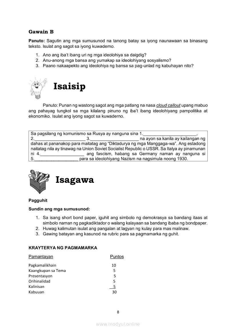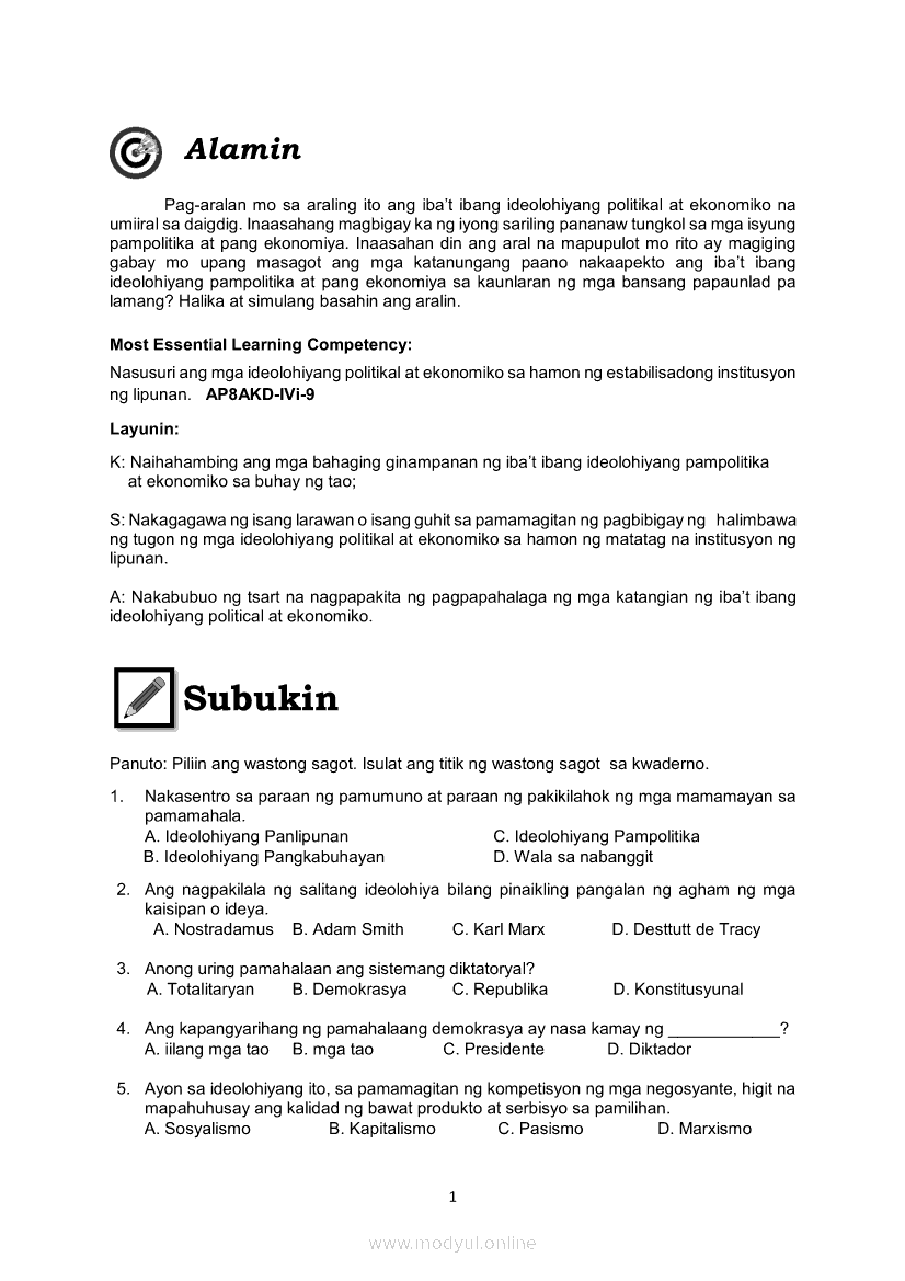 Araling Panlipunan Ikaapat na Markahan – Modyul 6: Iba’t Ibang Ideolohiyang Politikal at EkonomikoMay 27, 2021 Grade 8Xiaomi Redmi Watch 5 Active 2inch LCD Display Clear Calling 5ATM Waterproof Smart Watch for only ₱3,999 ₱1,200!. Araling Panlipunan 8 4th QuarterRelatedAraling Panlipunan Ikaapat na Markahan – Modyul 8: Mga Pandaigdigang OrganisasyonAraling Panlipunan Ikaapat na Markahan – Modyul 1: Mga Dahilan, Mahahalagang Pangyayaring Naganap sa Unang Digmaang PandaigdigAraling Panlipunan Ikaapat na Markahan - Modyul 5: Ang Mga Bansang Nagkakaisa ( United Nations)Araling Panlipunan Ikaapat na Markahan – Modyul 4: Ang Bunga ng Ikalawang Digmaang PandaigdigAraling Panlipunan Ikaapat na Markahan – Modyul 2: Ang Unang Digmaang Pandaigdig (Mga Naging Bunga)