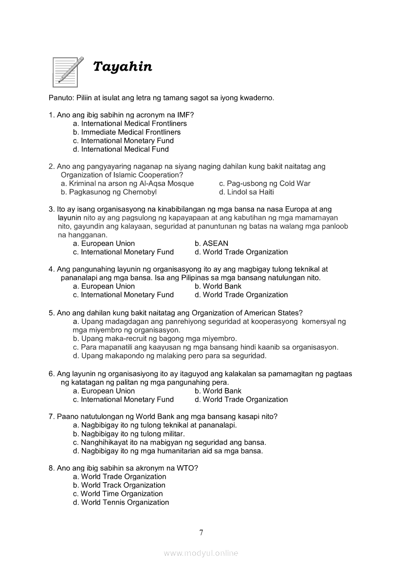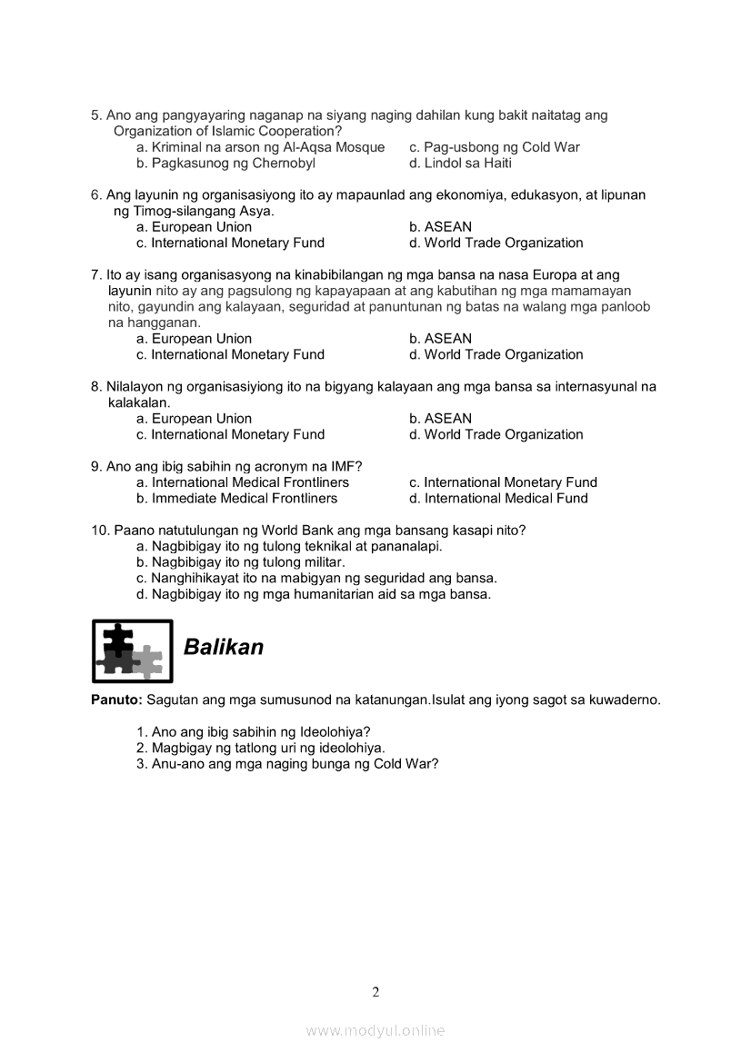 Araling Panlipunan Ikaapat na Markahan – Modyul 8: Mga Pandaigdigang OrganisasyonMay 27, 2021 Grade 8Xiaomi Redmi Watch 5 Active 2inch LCD Display Clear Calling 5ATM Waterproof Smart Watch for only ₱3,999 ₱1,200!. Araling Panlipunan 8 4th QuarterRelatedAraling Panlipunan Ikaapat na Markahan – Modyul 2: Ang Unang Digmaang Pandaigdig (Mga Naging Bunga)Araling Panlipunan Ikaapat na Markahan – Modyul 3: Ikalawang Digmaang Pandaigdig (Dahilan at Mahahalagang Pangyayari na Naganap)Araling Panlipunan Ikaapat na Markahan – Modyul 1: Mga Dahilan, Mahahalagang Pangyayaring Naganap sa Unang Digmaang PandaigdigAraling Panlipunan Ikaapat na Markahan – Modyul 6: Iba’t Ibang Ideolohiyang Politikal at EkonomikoAraling Panlipunan Ikaapat na Markahan – Modyul 7 EPEKTO NG MGA IDEOLOHIYA, NG COLD WAR AT NEOKOLONYALISMO SA IBA’T IBANG BAHAGI NG DAIGDIG