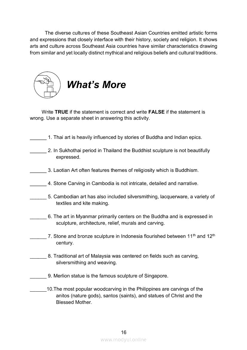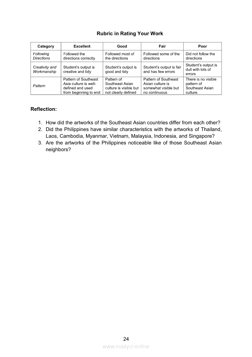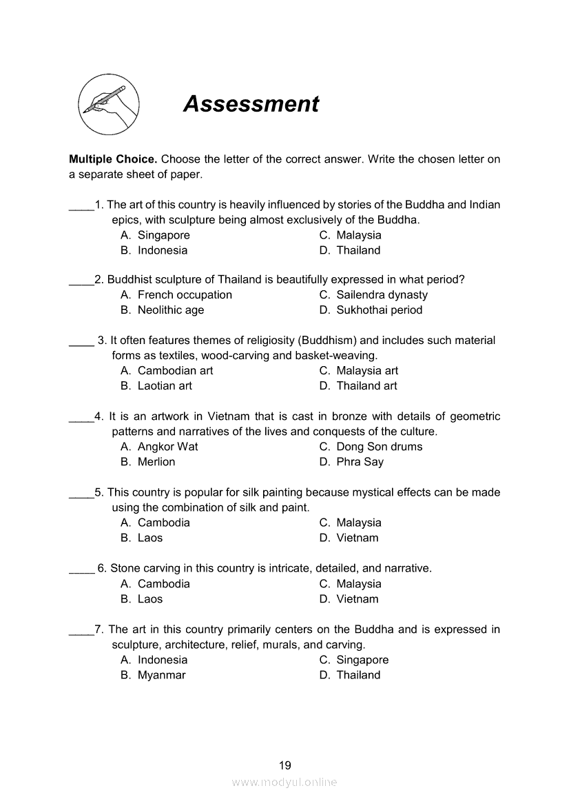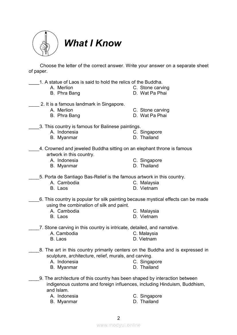 Arts 8 Module 10 Commonalities and Differences of Southeast Asian ArtsApr 22, 2021 Grade 8Xiaomi Redmi Watch 5 Active 2inch LCD Display Clear Calling 5ATM Waterproof Smart Watch for only ₱3,999 ₱1,200!. Arts 8RelatedARTS Quarter 4 – Module 4a Festival and Theater Arts: China and JapanARTS Quarter 4 – Module 4b: Festivals and Theatre Arts: Indonesia and ThailandArts 8 Module 8 Traditions/History of Southeast Asian ArtsArts 8 Module 6 Factors Reflecting in Designing and Making of ArtworksArts 8 Second Quarter Module (PIVOT)