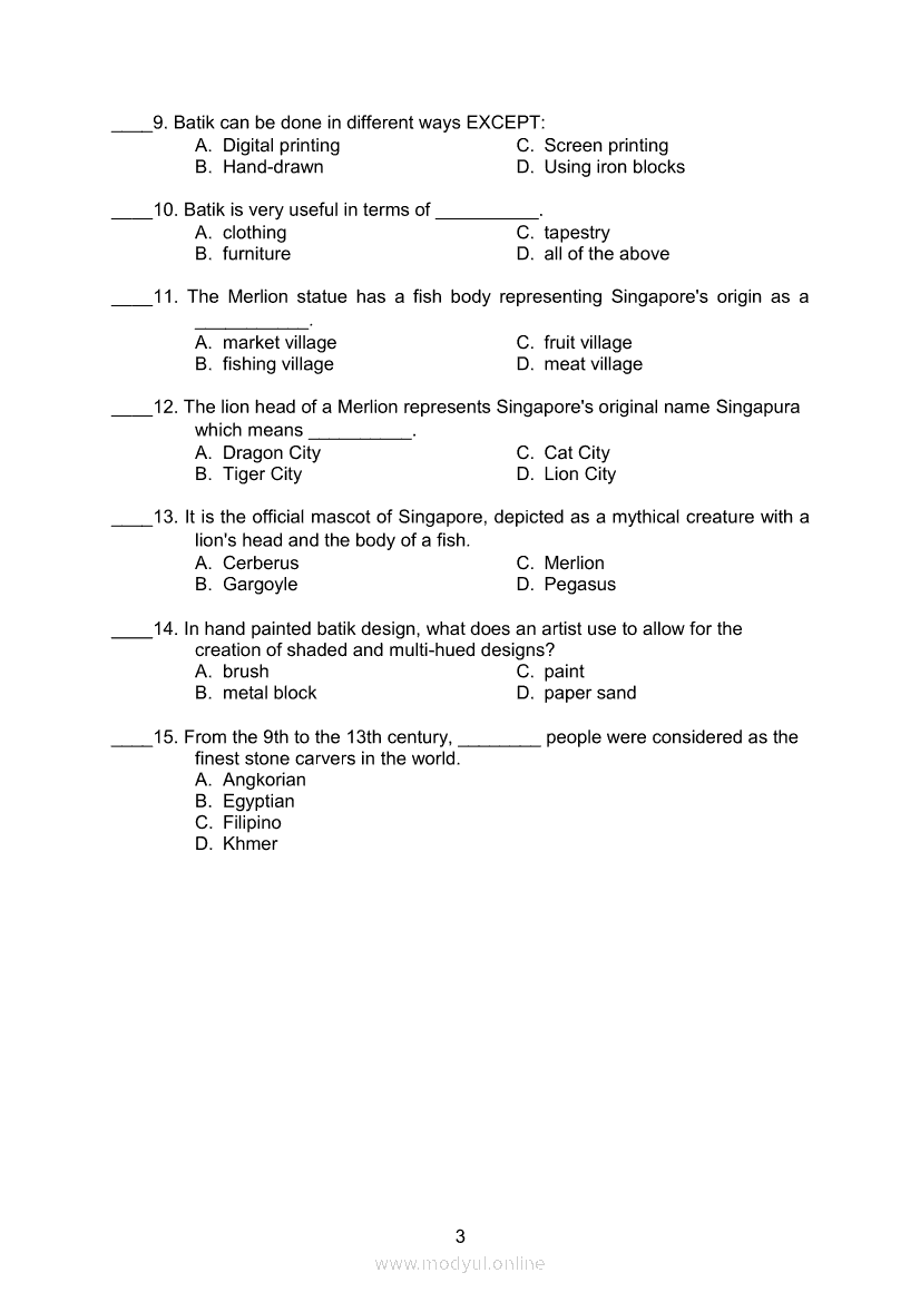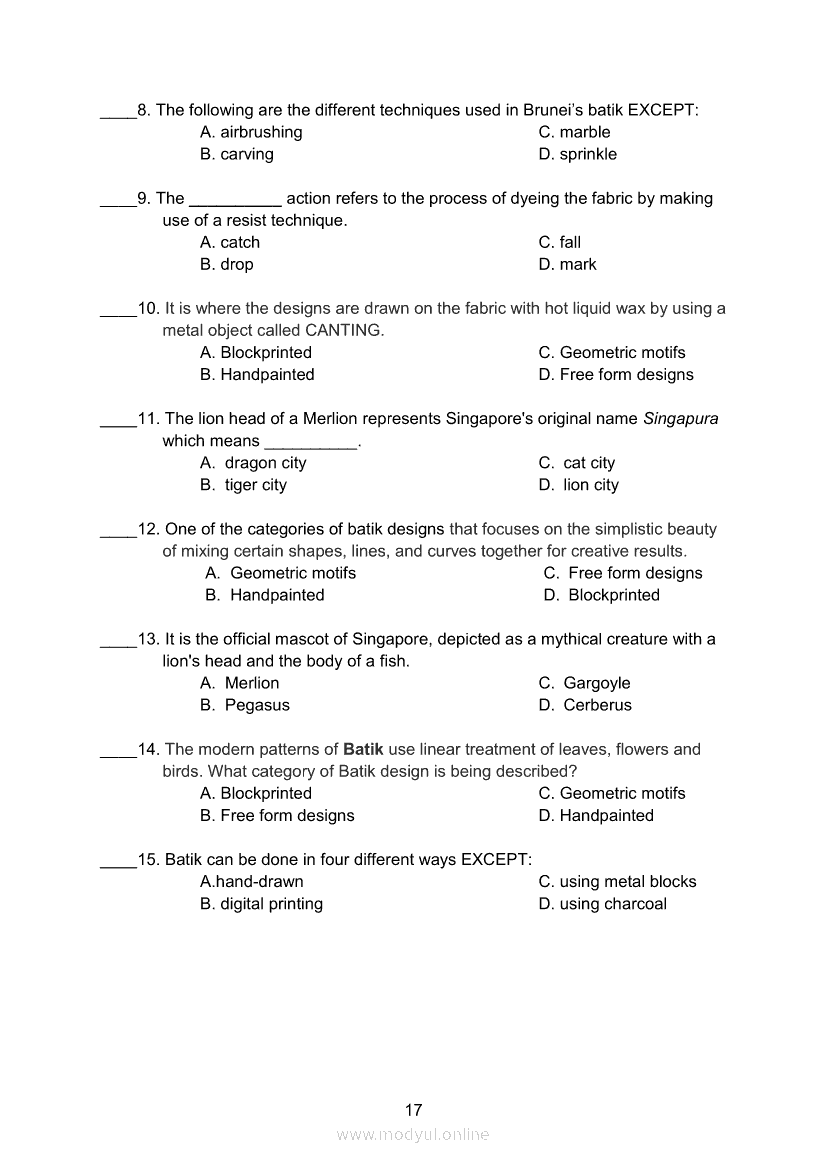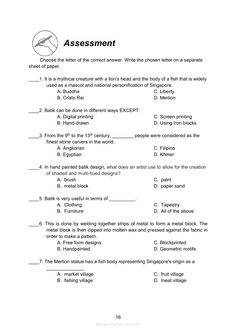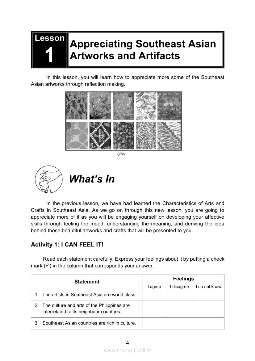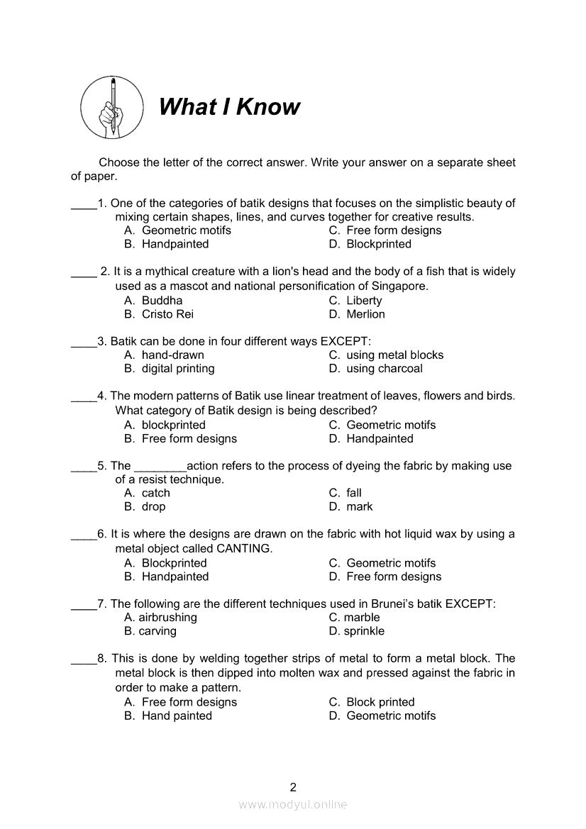 Arts 8 Module 3 Appreciating Southeast Asian Artworks and ArtifactsApr 22, 2021 Grade 8Xiaomi Redmi Watch 5 Active 2inch LCD Display Clear Calling 5ATM Waterproof Smart Watch for only ₱3,999 ₱1,200!. Arts 8RelatedARTS Quarter 4 – Module 4a Festival and Theater Arts: China and JapanARTS Quarter 4 – Module 4b: Festivals and Theatre Arts: Indonesia and ThailandArts 8 Module 4 The Wonders of ArtifactsArts 8 Module 8 Traditions/History of Southeast Asian ArtsArts 8 Module 10 Commonalities and Differences of Southeast Asian Arts