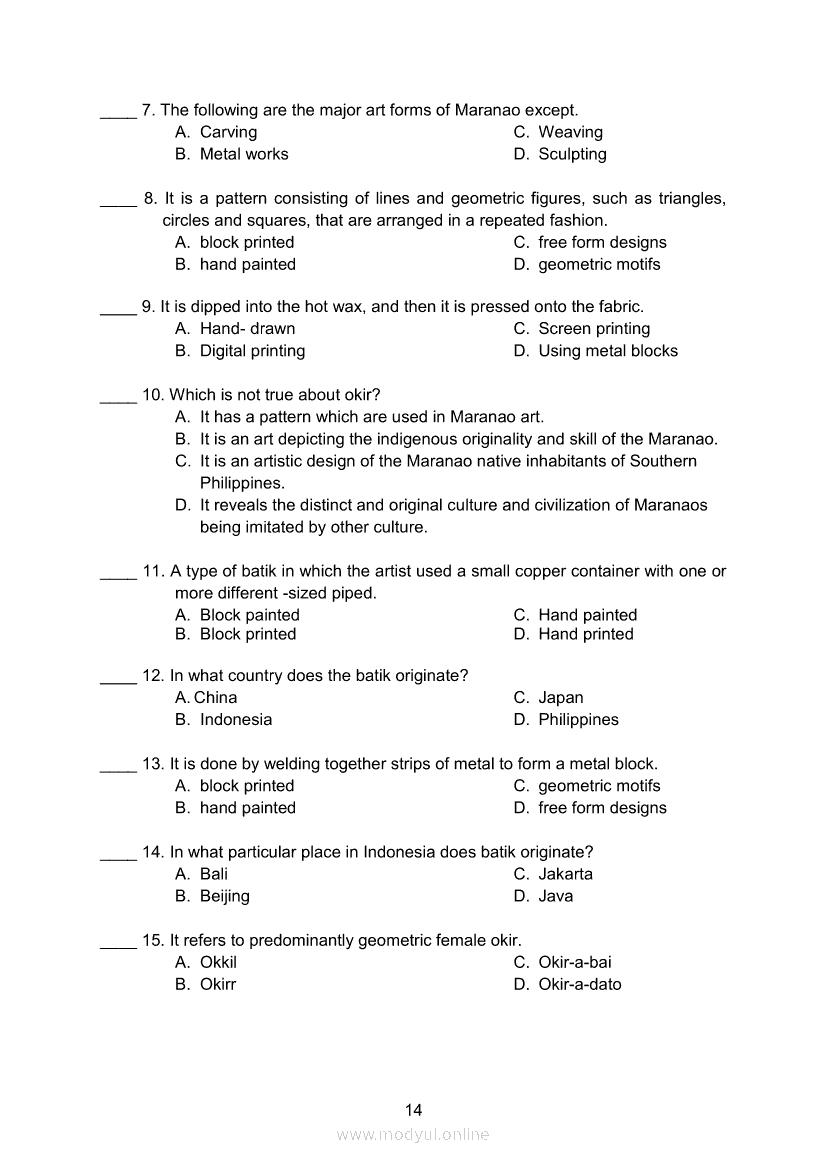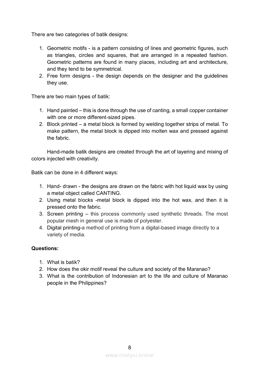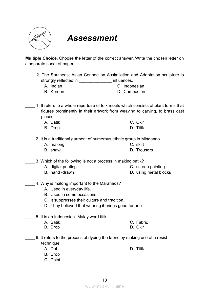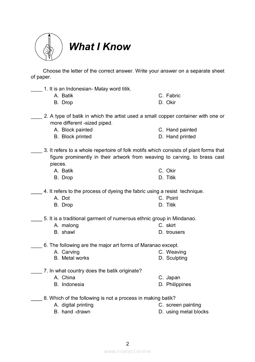 Arts 8 Module 7 Batik: A Traditional Art of Southeast AsiaApr 22, 2021 Grade 8Xiaomi Redmi Watch 5 Active 2inch LCD Display Clear Calling 5ATM Waterproof Smart Watch for only ₱3,999 ₱1,200!. Arts 8RelatedARTS Quarter 4 – Module 4b: Festivals and Theatre Arts: Indonesia and ThailandARTS Quarter 4 – Module 4a Festival and Theater Arts: China and JapanArts 8 Module 8 Traditions/History of Southeast Asian ArtsArts 8 Module 3 Appreciating Southeast Asian Artworks and ArtifactsArts 8 Module 9 Amazing Crafts of Southeast Asia