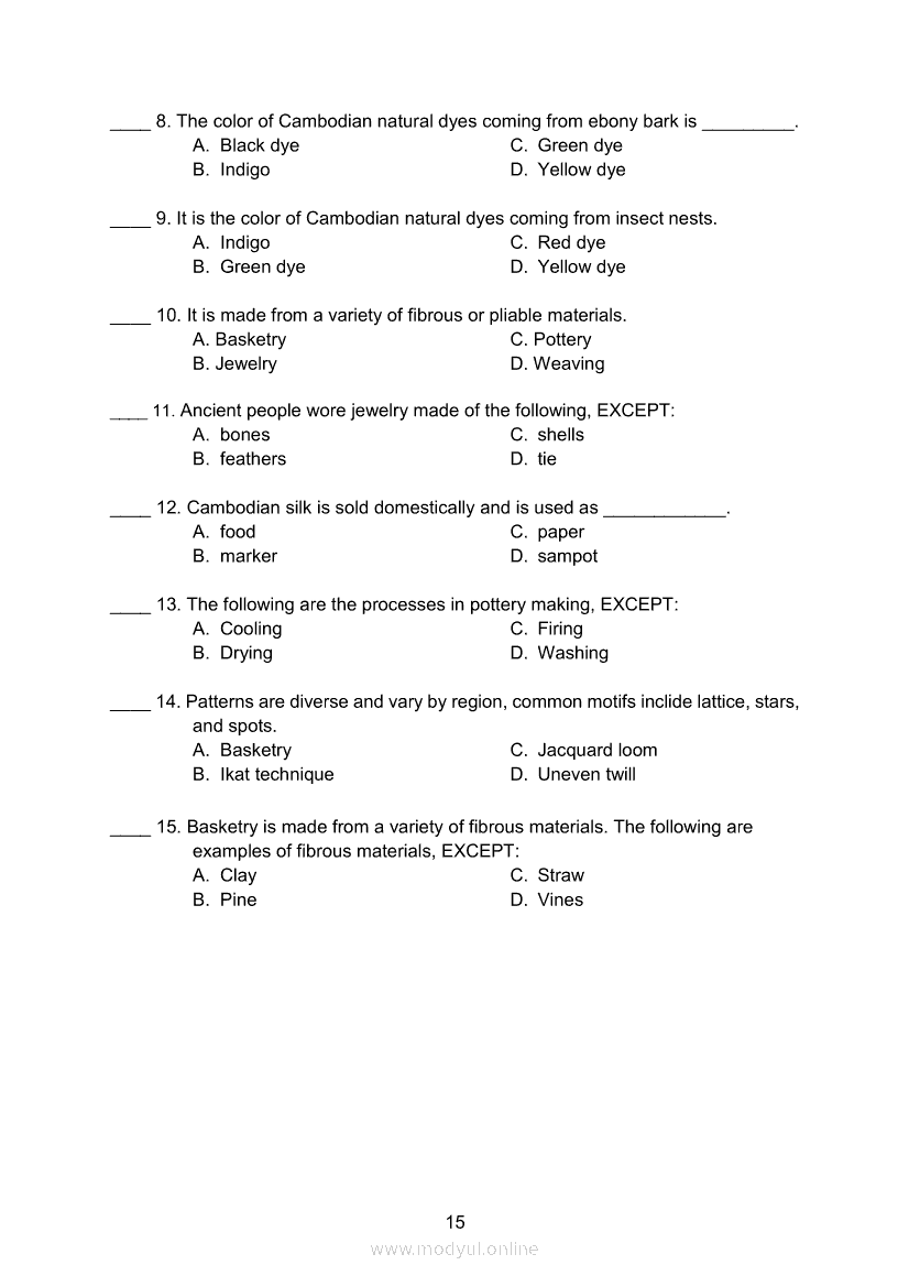 Arts 8 Module 9 Amazing Crafts of Southeast AsiaApr 22, 2021 Grade 8Xiaomi Redmi Watch 5 Active 2inch LCD Display Clear Calling 5ATM Waterproof Smart Watch for only ₱3,999 ₱1,200!. Arts 8RelatedARTS Quarter 4 – Module 4a Festival and Theater Arts: China and JapanARTS Quarter 4 – Module 4b: Festivals and Theatre Arts: Indonesia and ThailandArts 8 Module 2 The Characteristics of Arts and Crafts in Southeast AsiaArts 8 Module 10 Commonalities and Differences of Southeast Asian ArtsArts 8 Module 3 Appreciating Southeast Asian Artworks and Artifacts