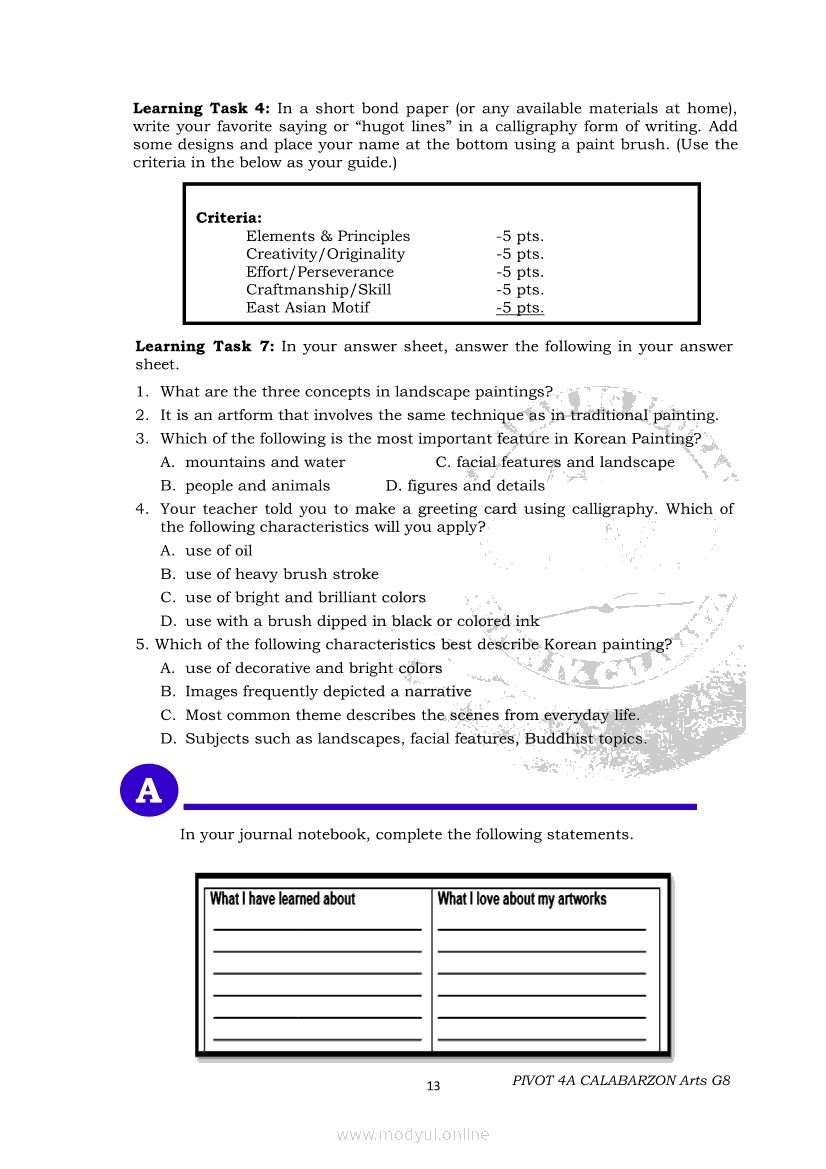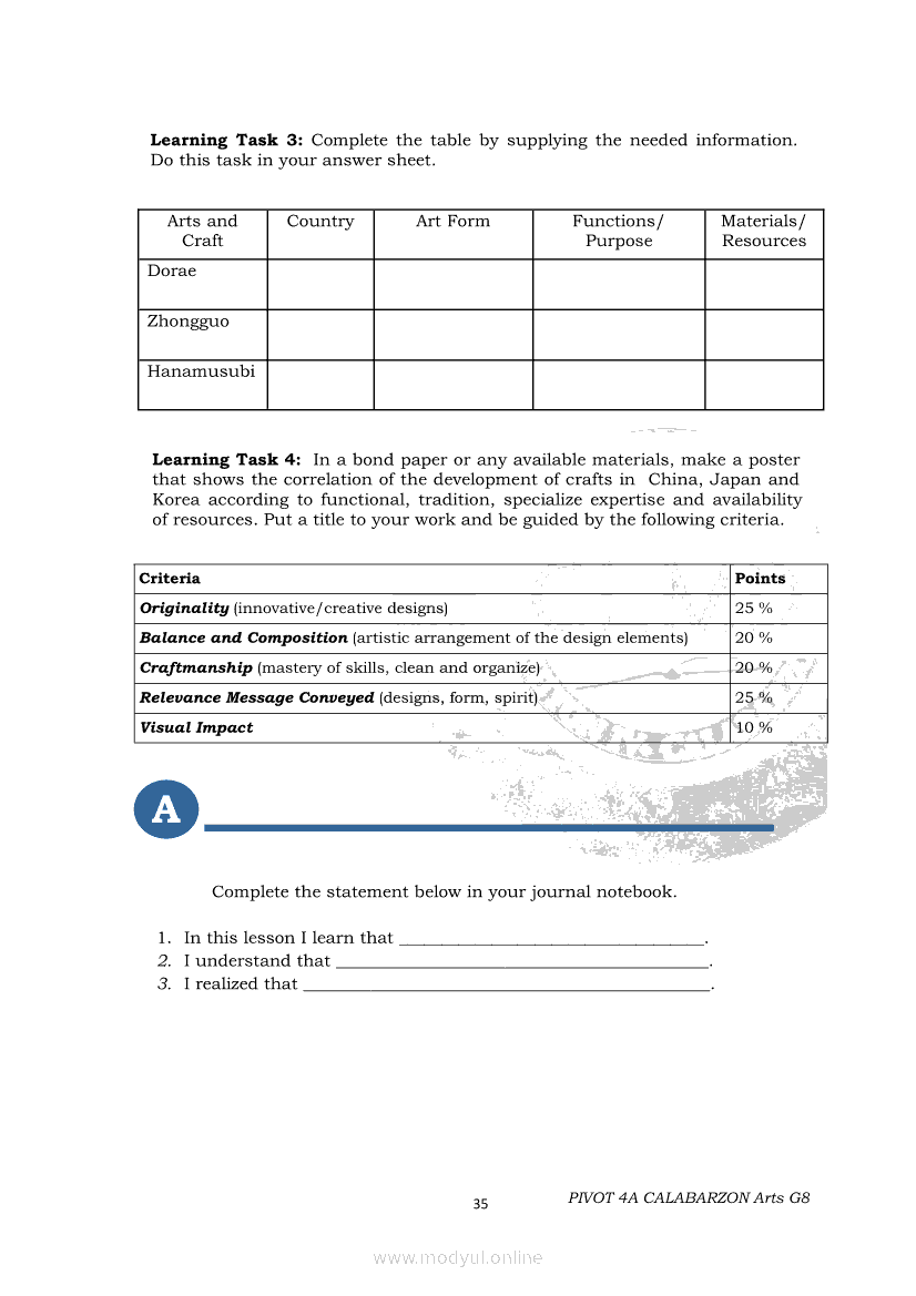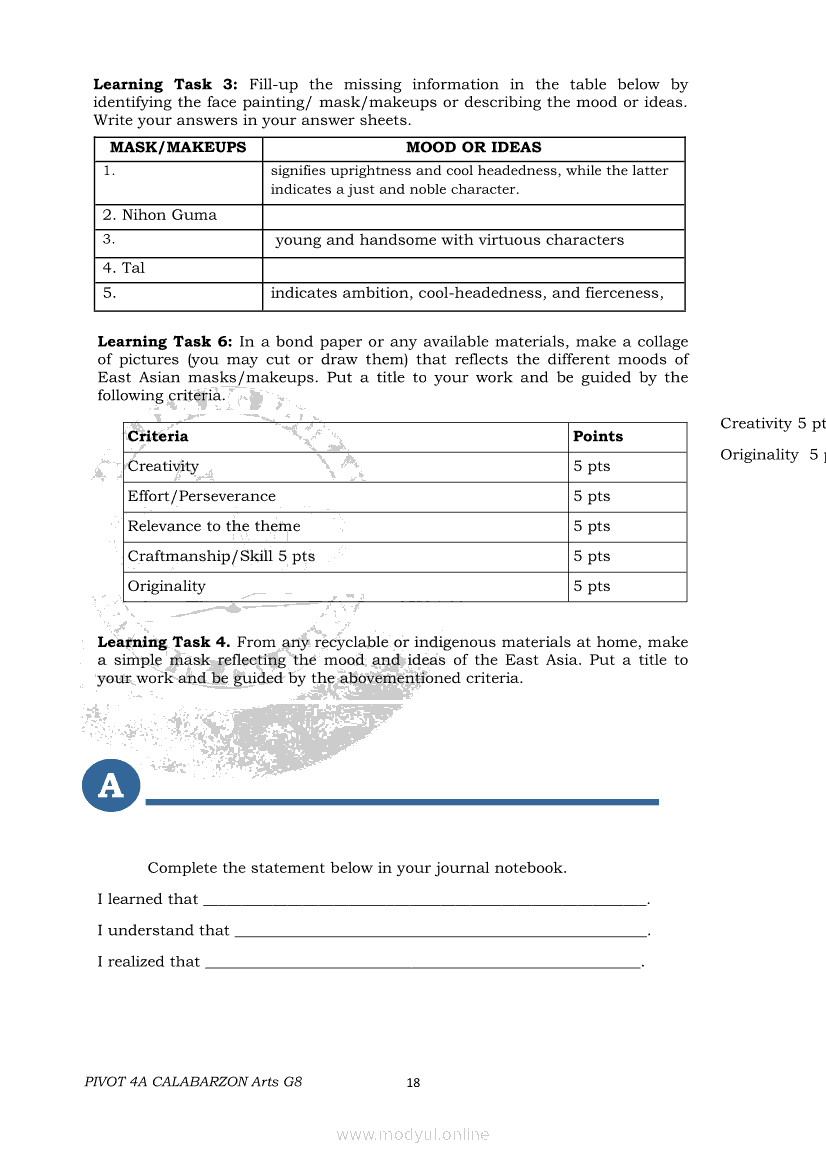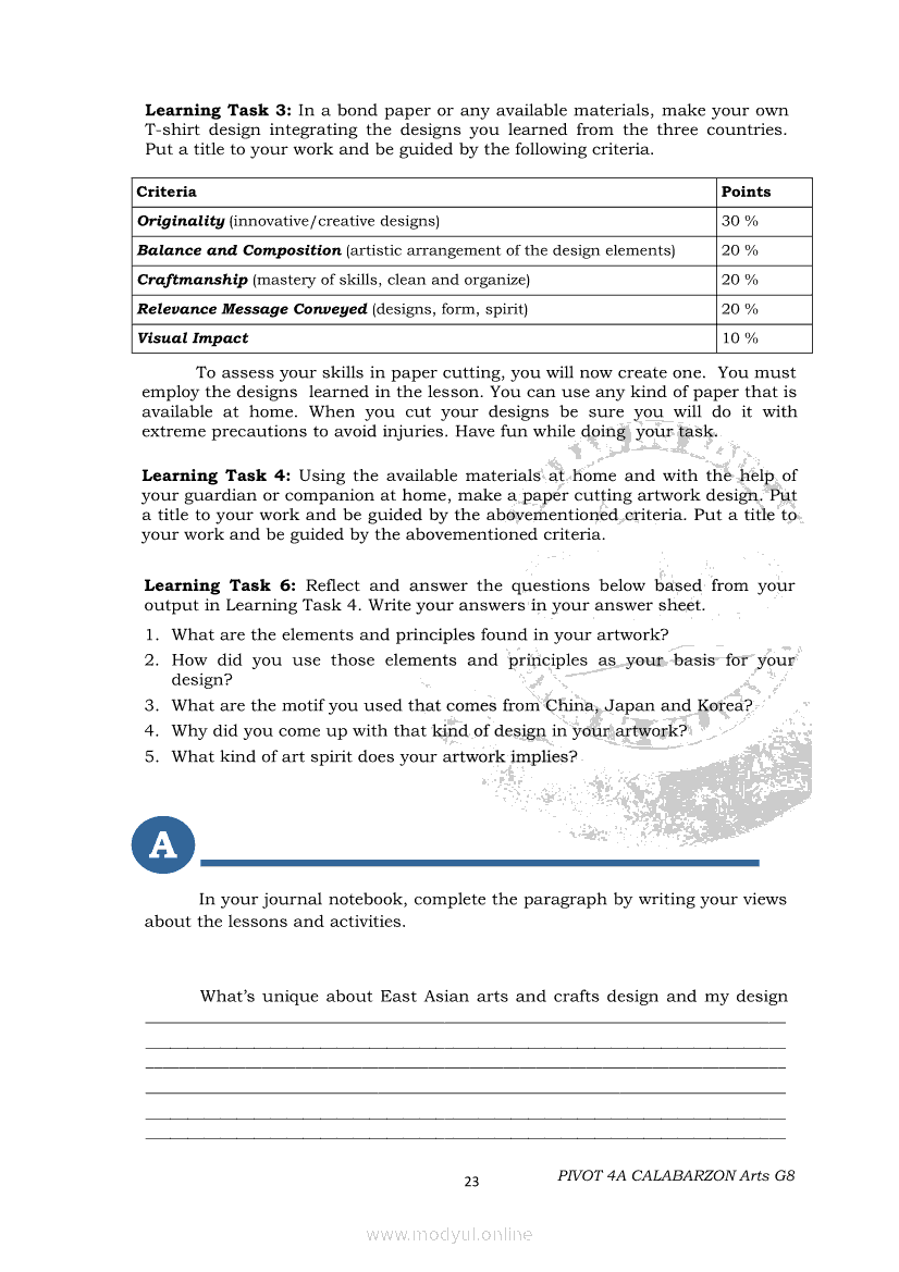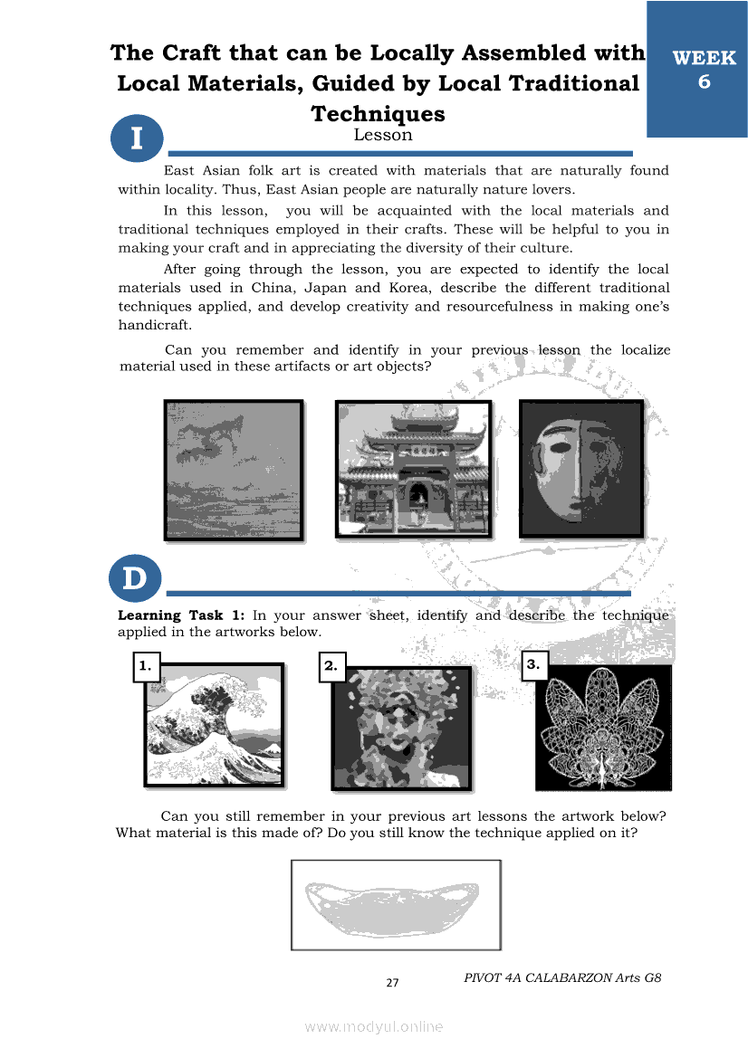 Arts 8 Second Quarter Module (PIVOT)Apr 22, 2021 Grade 8Xiaomi Redmi Watch 5 Active 2inch LCD Display Clear Calling 5ATM Waterproof Smart Watch for only ₱3,999 ₱1,200!. Arts 8RelatedARTS Quarter 4 – Module 4b: Festivals and Theatre Arts: Indonesia and ThailandARTS Quarter 4 – Module 4a Festival and Theater Arts: China and JapanArts 8 Module in ArtsArts 8 Module 8 Traditions/History of Southeast Asian ArtsArts 8 Module 2 The Characteristics of Arts and Crafts in Southeast Asia