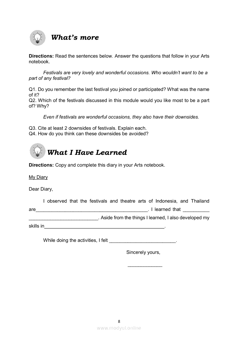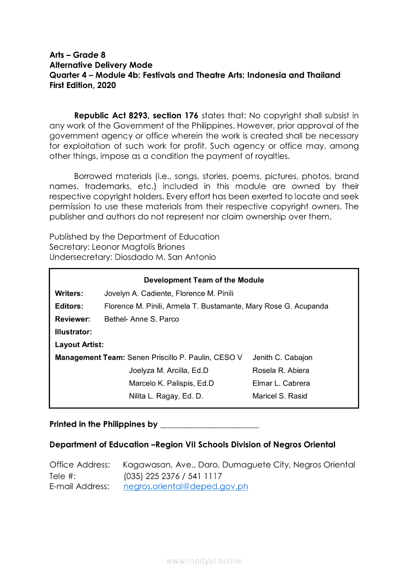 ARTS Quarter 4 – Module 4b: Festivals and Theatre Arts: Indonesia and ThailandMay 27, 2021 Grade 8Xiaomi Redmi Watch 5 Active 2inch LCD Display Clear Calling 5ATM Waterproof Smart Watch for only ₱3,999 ₱1,200!. Arts 8 4th QuarterRelatedARTS Quarter 4 – Module 4a Festival and Theater Arts: China and JapanDIGESTIVE SYSTEM Its Parts and Functions For SCIENCE Grade 8 Quarter 4 / Week 1Araling Panlipunan Ikaapat na Markahan – Modyul 7 EPEKTO NG MGA IDEOLOHIYA, NG COLD WAR AT NEOKOLONYALISMO SA IBA’T IBANG BAHAGI NG DAIGDIGEdukasyon sa Pagpapakatao Ikaapat na Markahan – Modyul 14.B Karahasan sa Paaralan ( Linggo: Ika-anim )MATHEMATICS Quarter 4 – Module 1 Inequalities in Triangles