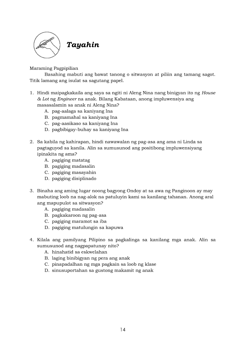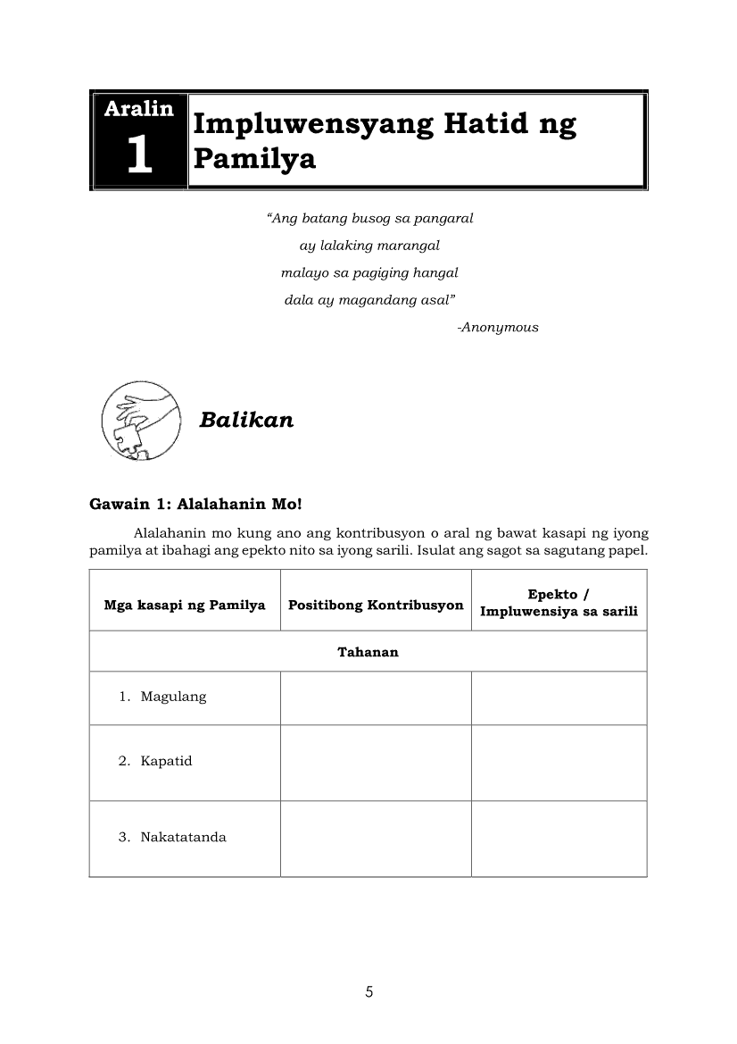 Edukasyon sa Pagpapakatao 8 Modyul 1: Impluwensyang Hatid ng PamilyaApr 22, 2021 Grade 8Xiaomi Redmi Watch 5 Active 2inch LCD Display Clear Calling 5ATM Waterproof Smart Watch for only ₱3,999 ₱1,200!. Edukasyon sa Pagpapakatao 8RelatedEdukasyon sa Pagpapakatao Ikaapat na Markahan – Modyul 12.B Katapatan sa Salita at Gawa (Linggo: Ikalawa)Edukasyon sa Pagpapakatao Ikaapat na Markahan – Modyul 12.A Katapatan sa Salita at Gawa (Linggo: Una)Edukasyon sa Pagpapakatao Ikaapat na Markahan – Modyul 14.A Karahasan sa Paaralan (Linggo: Ikalima)Edukasyon sa Pagpapakatao Ikaapat na Markahan – Modyul 14.B Karahasan sa Paaralan ( Linggo: Ika-anim )Edukasyon sa Pagpapakatao Ikaapat na Markahan – Modyul 13.A Ang Seksuwalidad ng Tao (Linggo: Ikatlo)