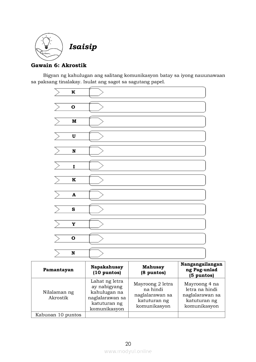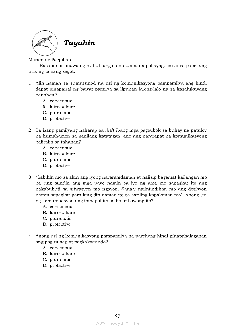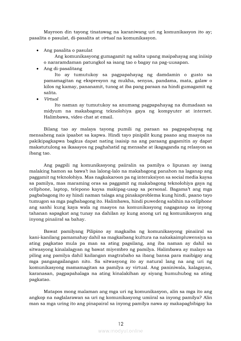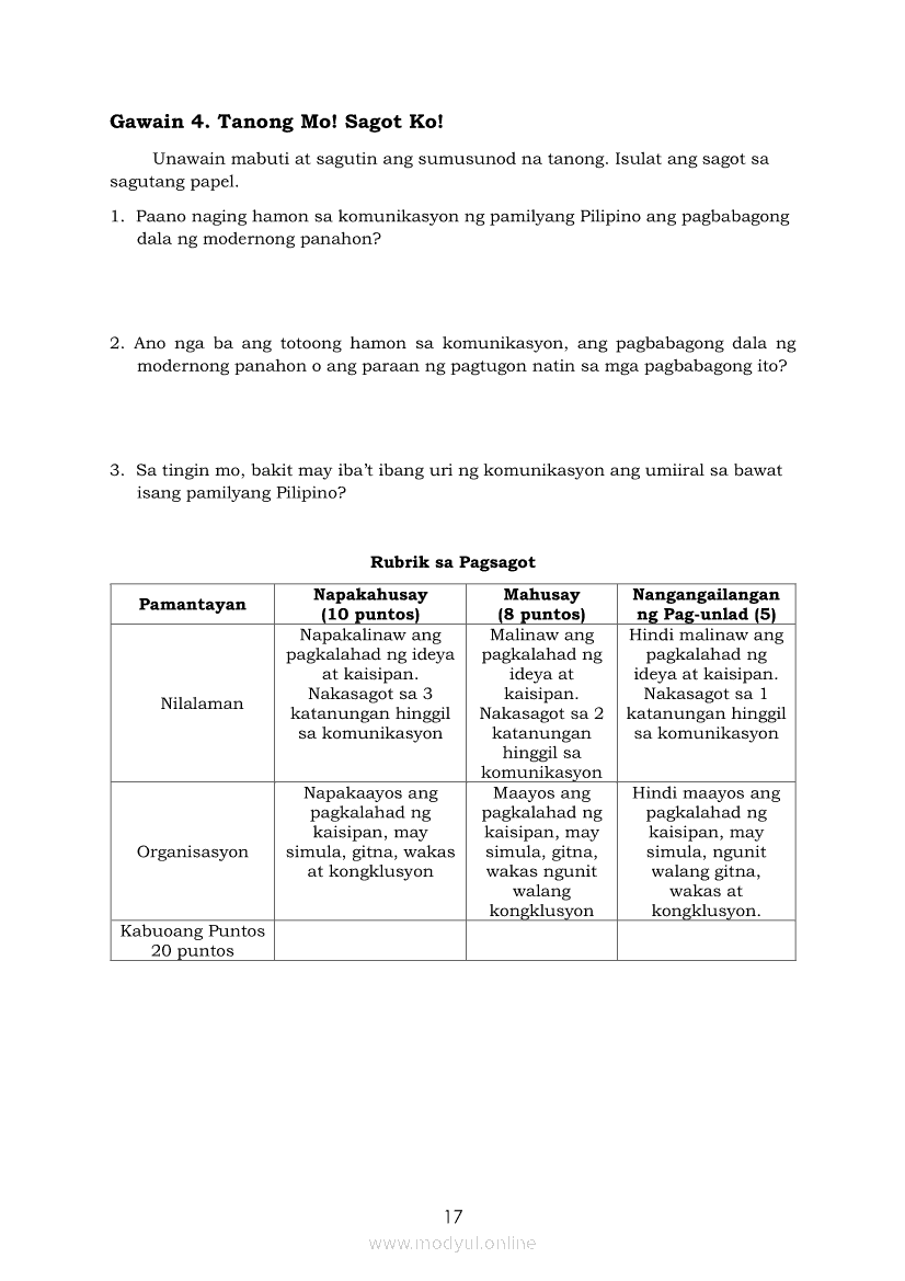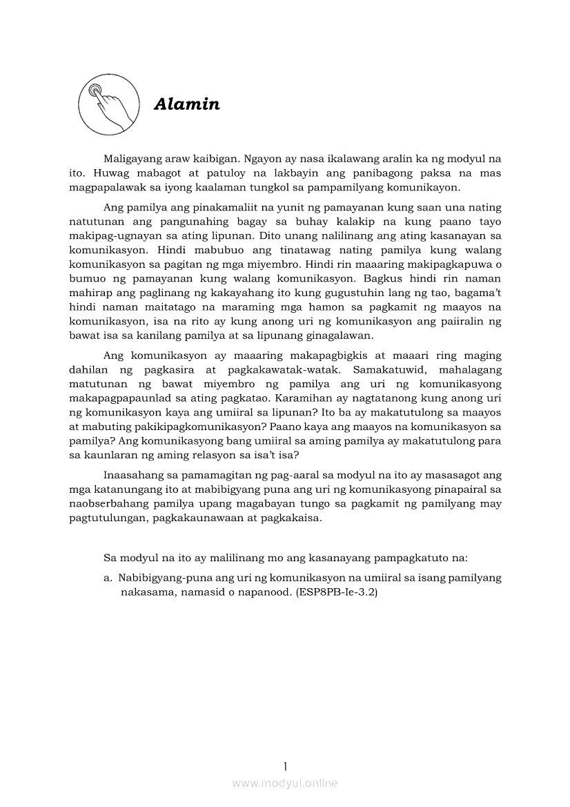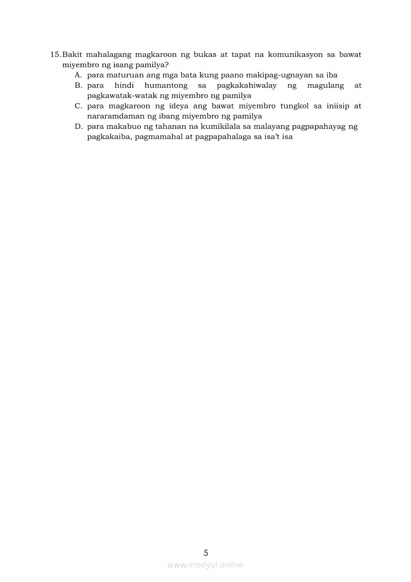 Edukasyon sa Pagpapakatao 8 Modyul 10: Komunikasyon ng PamilyaApr 22, 2021 Grade 8Xiaomi Redmi Watch 5 Active 2inch LCD Display Clear Calling 5ATM Waterproof Smart Watch for only ₱3,999 ₱1,200!. Edukasyon sa Pagpapakatao 8RelatedEdukasyon sa Pagpapakatao Ikaapat na Markahan – Modyul 14.A Karahasan sa Paaralan (Linggo: Ikalima)Edukasyon sa Pagpapakatao Ikaapat na Markahan – Modyul 12.A Katapatan sa Salita at Gawa (Linggo: Una)Edukasyon sa Pagpapakatao Ikaapat na Markahan – Modyul 13.A Ang Seksuwalidad ng Tao (Linggo: Ikatlo)Edukasyon sa Pagpapakatao Ikaapat na Markahan – Modyul 14.B Karahasan sa Paaralan ( Linggo: Ika-anim )Edukasyon sa Pagpapakatao Ikaapat na Markahan – Modyul 12.B Katapatan sa Salita at Gawa (Linggo: Ikalawa)