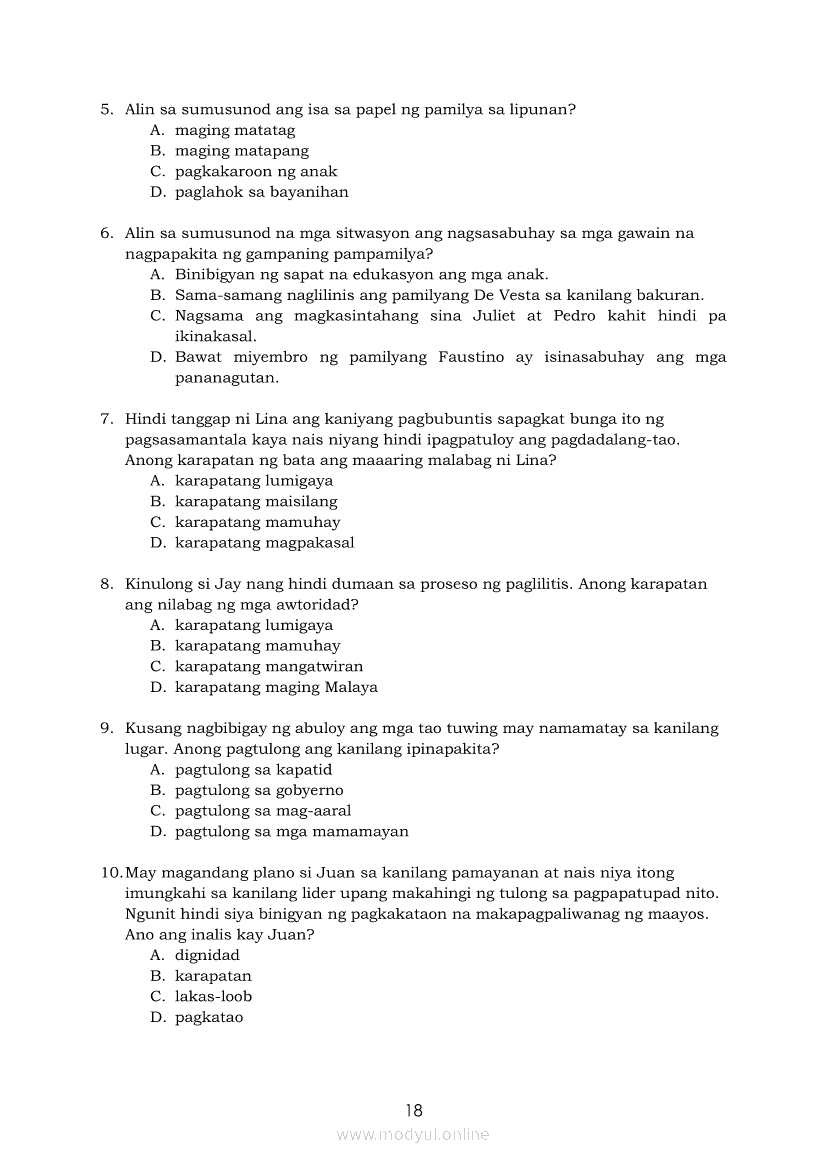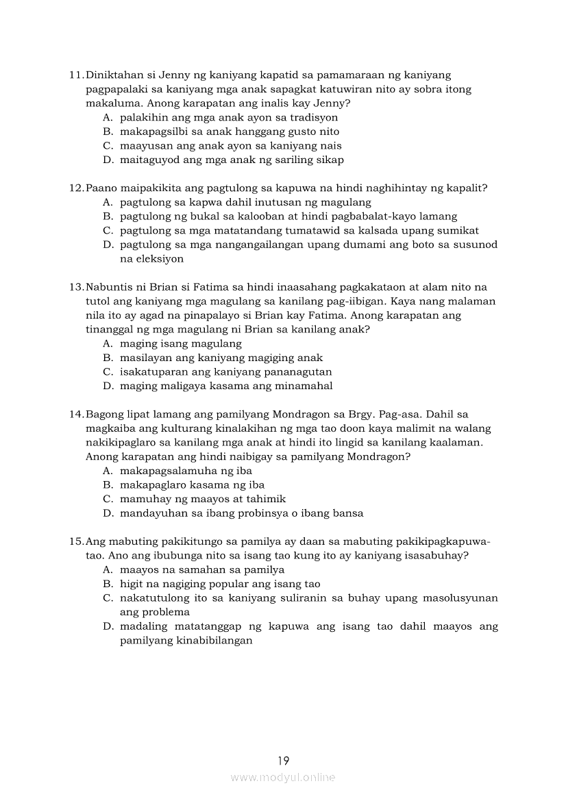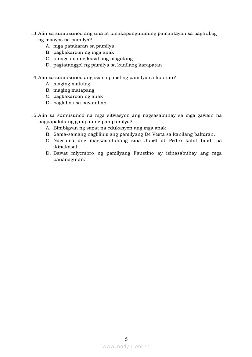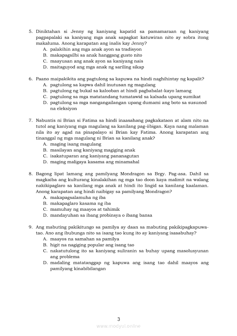 Edukasyon sa Pagpapakatao 8 Modyul 13: Responsibilidad sa Pamilya at LipunanApr 22, 2021 Grade 8Xiaomi Redmi Watch 5 Active 2inch LCD Display Clear Calling 5ATM Waterproof Smart Watch for only ₱3,999 ₱1,200!. Edukasyon sa Pagpapakatao 8RelatedEdukasyon sa Pagpapakatao Ikaapat na Markahan – Modyul 14.B Karahasan sa Paaralan ( Linggo: Ika-anim )Edukasyon sa Pagpapakatao Ikaapat na Markahan – Modyul 12.B Katapatan sa Salita at Gawa (Linggo: Ikalawa)Edukasyon sa Pagpapakatao Ikaapat na Markahan – Modyul 14.A Karahasan sa Paaralan (Linggo: Ikalima)Edukasyon sa Pagpapakatao Ikaapat na Markahan – Modyul 12.A Katapatan sa Salita at Gawa (Linggo: Una)Edukasyon sa Pagpapakatao Ikaapat na Markahan – Modyul 13.A Ang Seksuwalidad ng Tao (Linggo: Ikatlo)