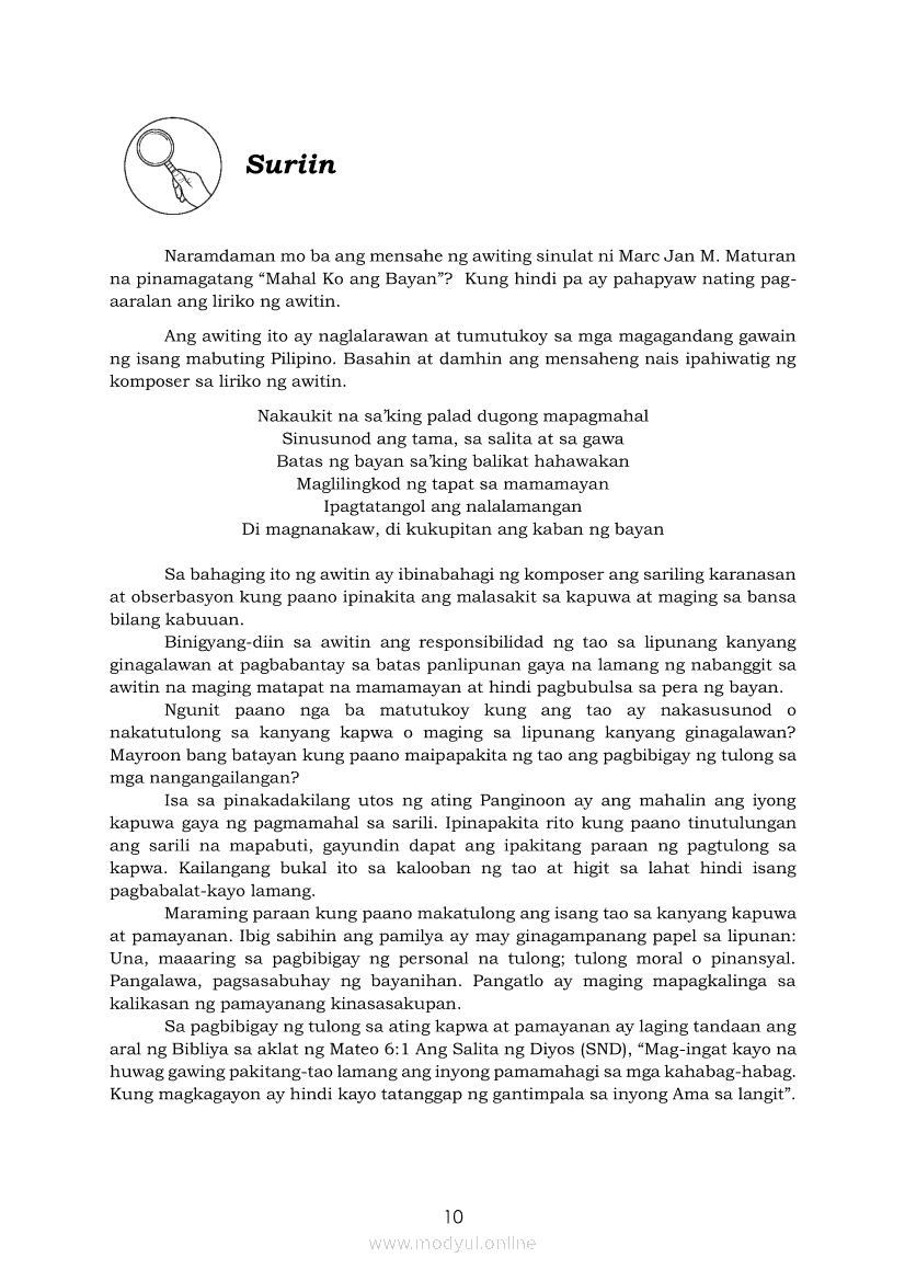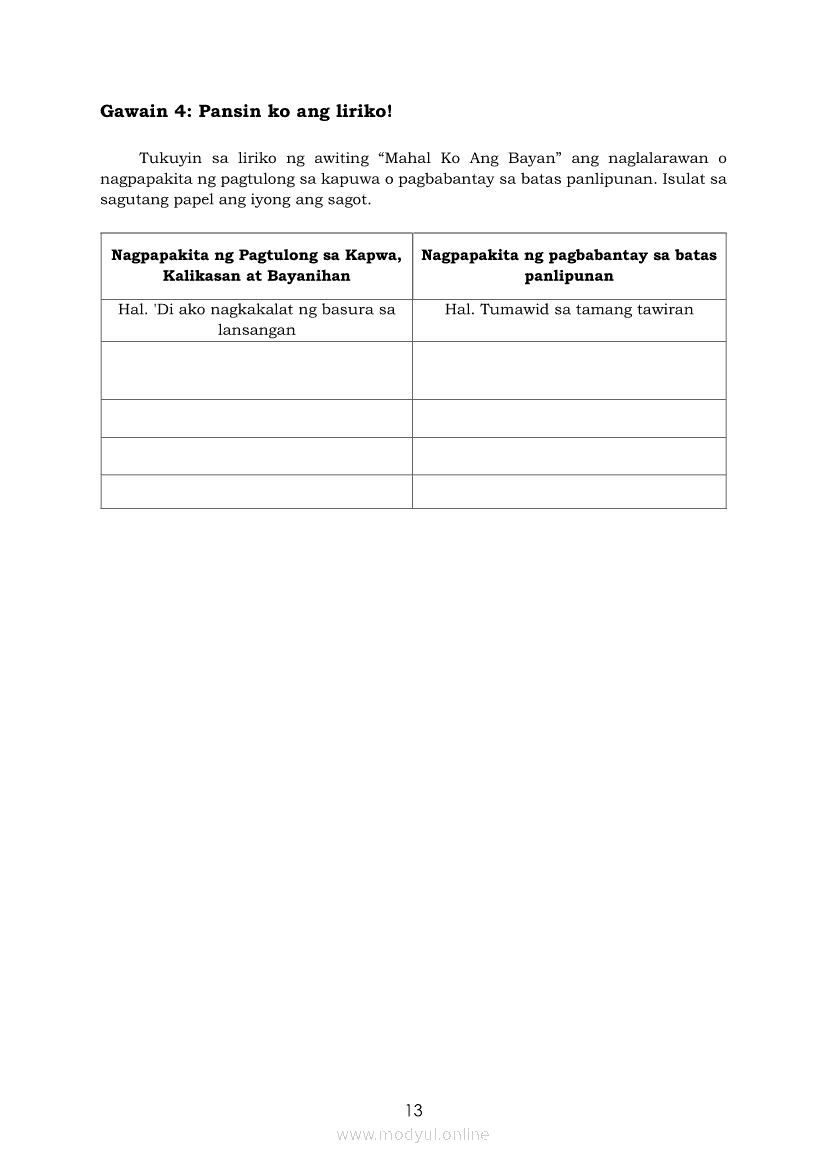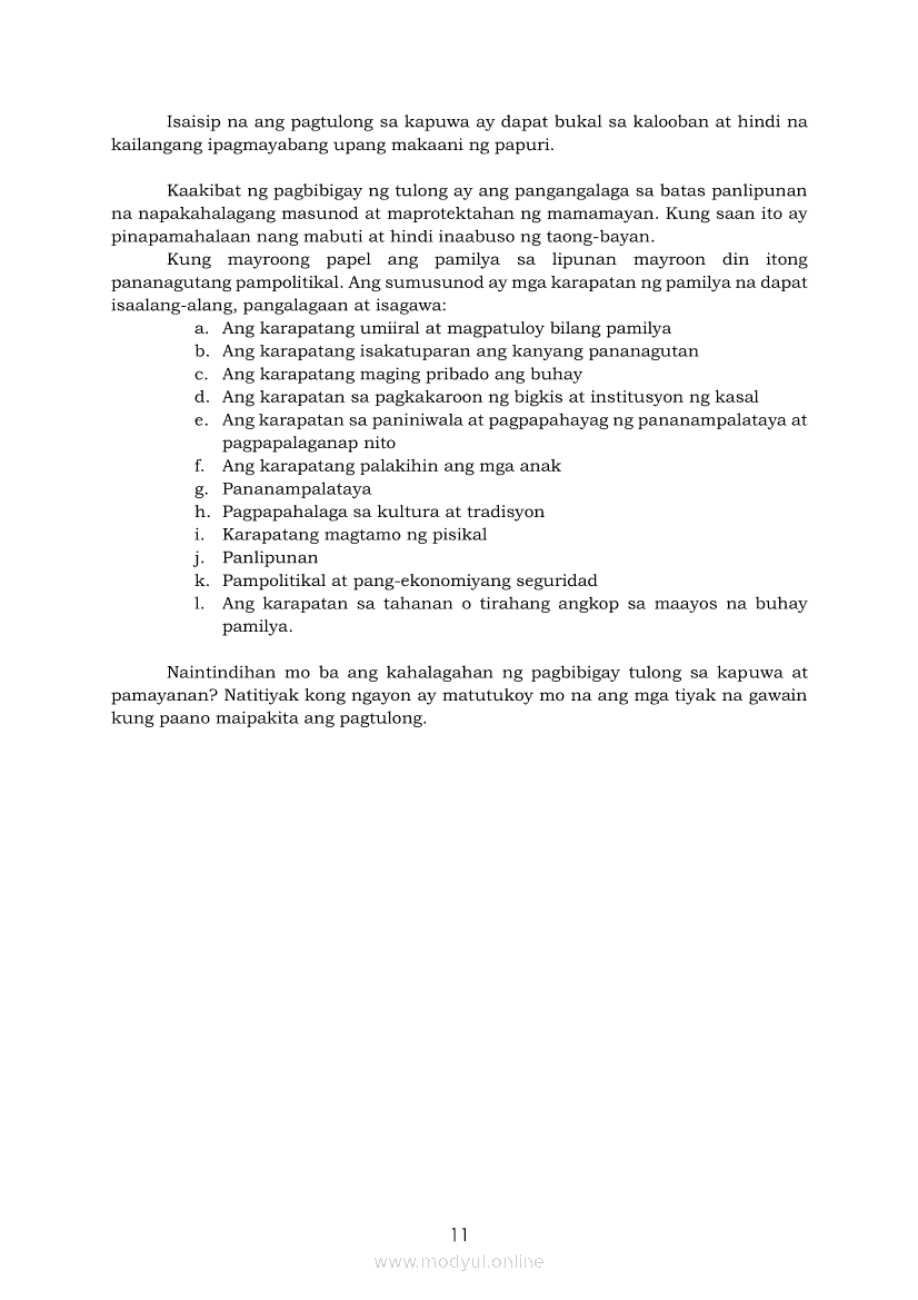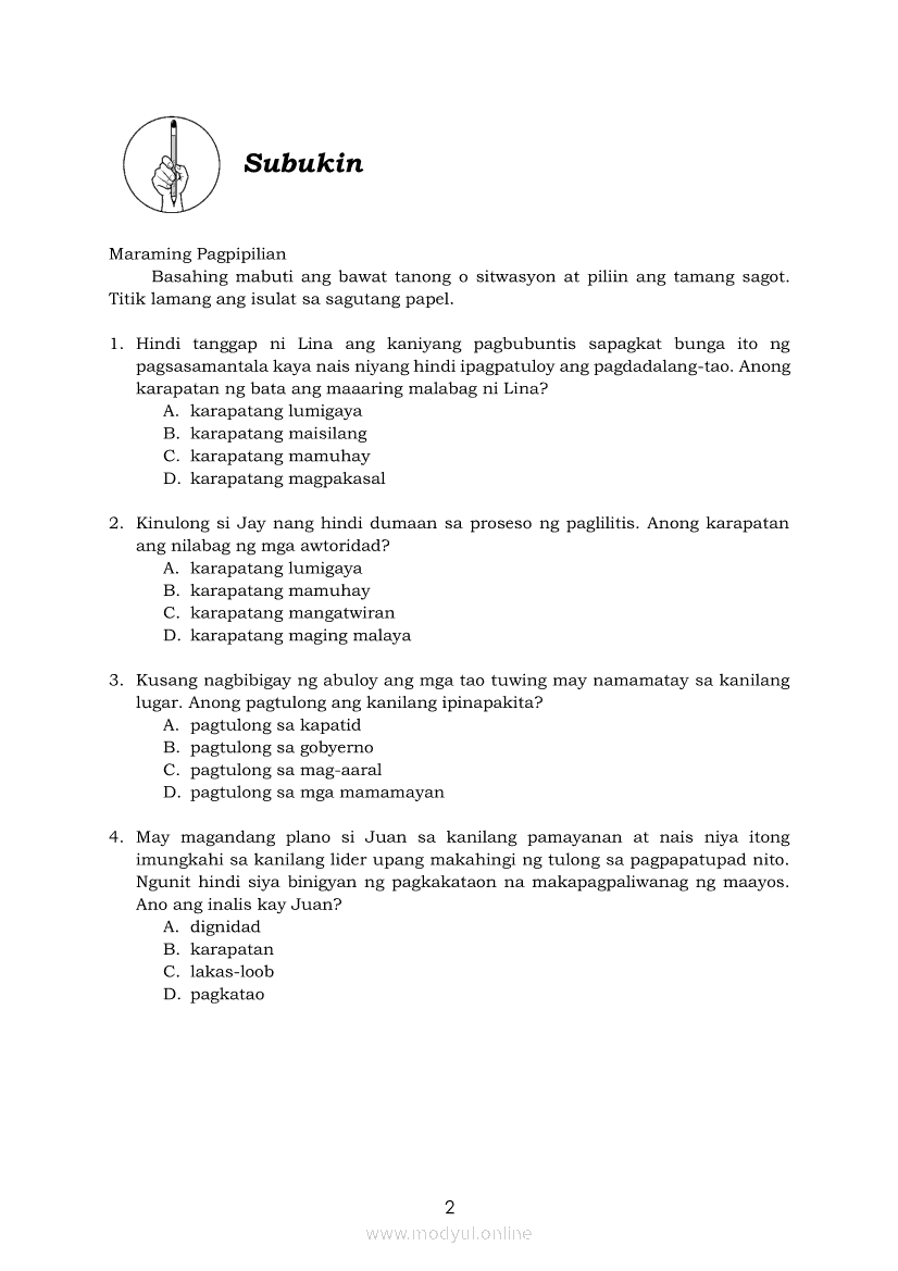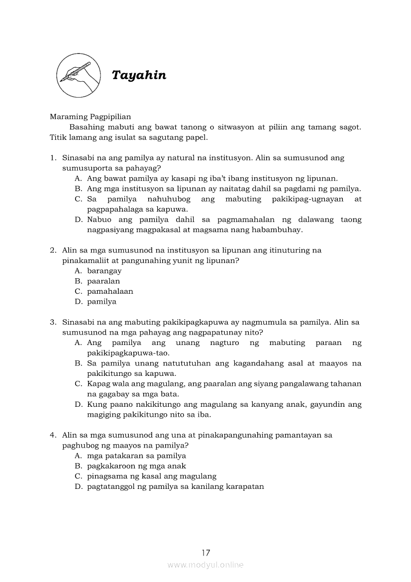 Edukasyon sa Pagpapakatao 8 Modyul 13: Responsibilidad sa Pamilya at LipunanApr 22, 2021 Grade 8Xiaomi Redmi Watch 5 Active 2inch LCD Display Clear Calling 5ATM Waterproof Smart Watch for only ₱3,999 ₱1,200!. Edukasyon sa Pagpapakatao 8RelatedEdukasyon sa Pagpapakatao Ikaapat na Markahan – Modyul 14.B Karahasan sa Paaralan ( Linggo: Ika-anim )Edukasyon sa Pagpapakatao Ikaapat na Markahan – Modyul 12.B Katapatan sa Salita at Gawa (Linggo: Ikalawa)Edukasyon sa Pagpapakatao Ikaapat na Markahan – Modyul 14.A Karahasan sa Paaralan (Linggo: Ikalima)Edukasyon sa Pagpapakatao Ikaapat na Markahan – Modyul 12.A Katapatan sa Salita at Gawa (Linggo: Una)Edukasyon sa Pagpapakatao Ikaapat na Markahan – Modyul 13.A Ang Seksuwalidad ng Tao (Linggo: Ikatlo)