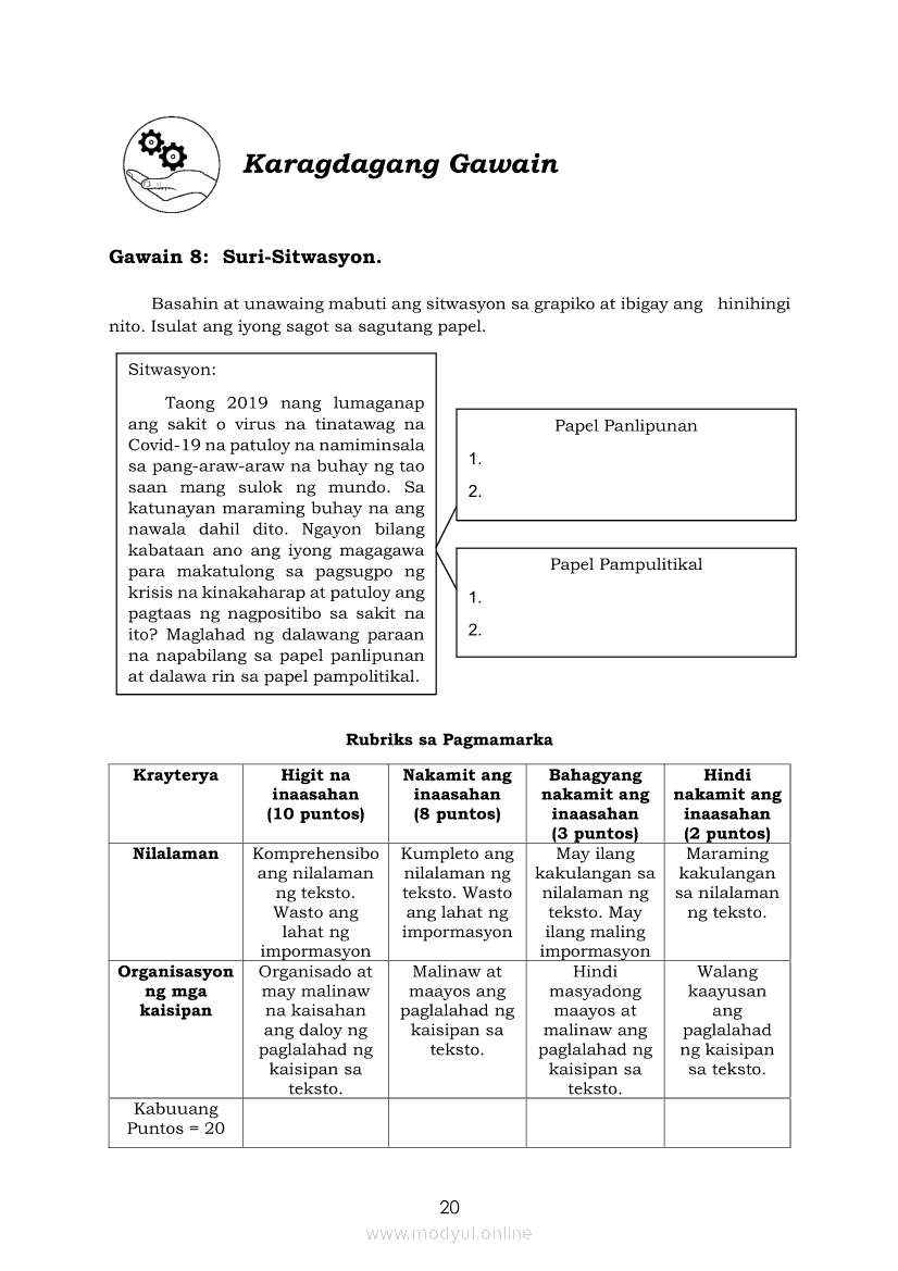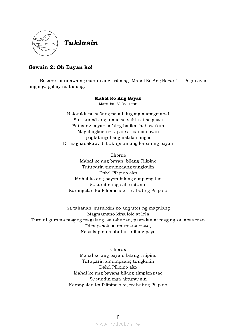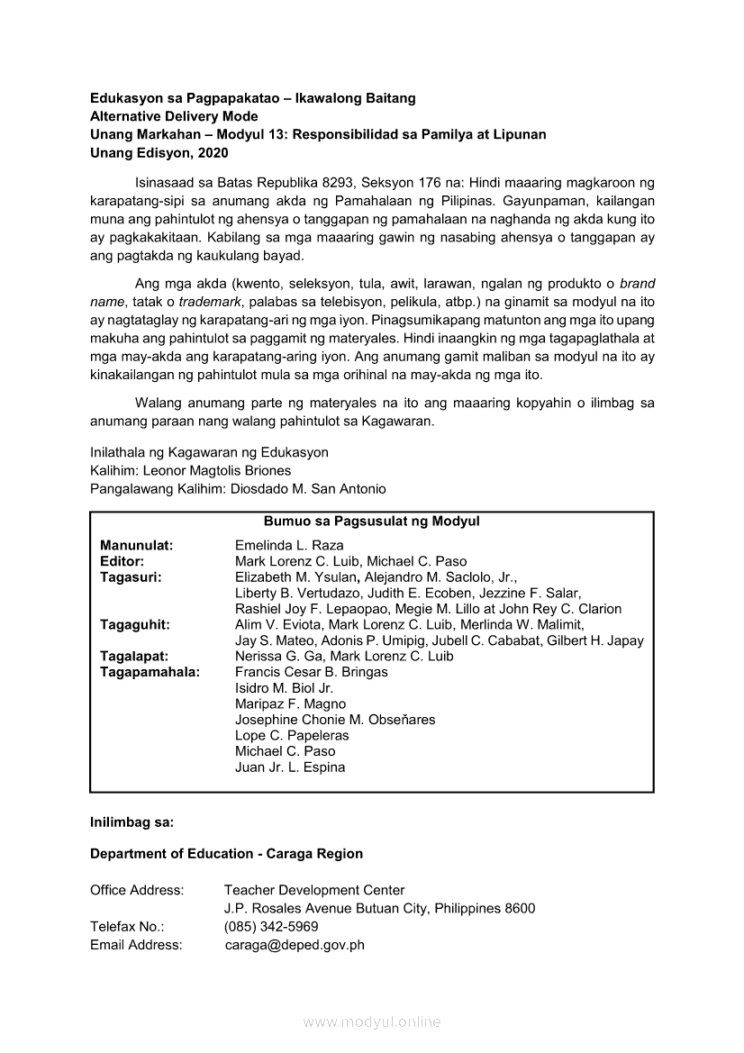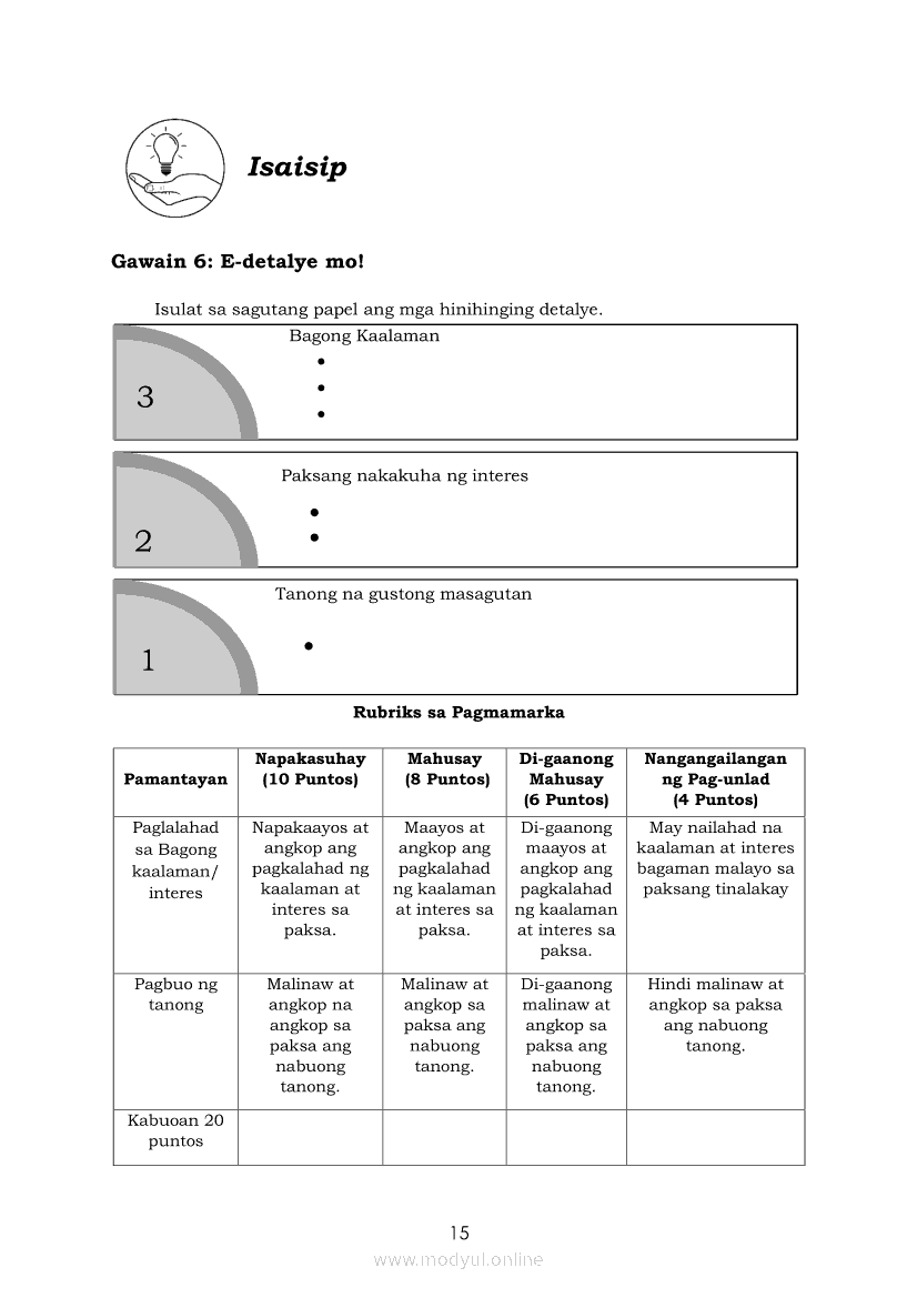 Edukasyon sa Pagpapakatao 8 Modyul 13: Responsibilidad sa Pamilya at LipunanApr 22, 2021 Grade 8Xiaomi Redmi Watch 5 Active 2inch LCD Display Clear Calling 5ATM Waterproof Smart Watch for only ₱3,999 ₱1,200!. Edukasyon sa Pagpapakatao 8RelatedEdukasyon sa Pagpapakatao Ikaapat na Markahan – Modyul 14.B Karahasan sa Paaralan ( Linggo: Ika-anim )Edukasyon sa Pagpapakatao Ikaapat na Markahan – Modyul 12.B Katapatan sa Salita at Gawa (Linggo: Ikalawa)Edukasyon sa Pagpapakatao Ikaapat na Markahan – Modyul 14.A Karahasan sa Paaralan (Linggo: Ikalima)Edukasyon sa Pagpapakatao Ikaapat na Markahan – Modyul 12.A Katapatan sa Salita at Gawa (Linggo: Una)Edukasyon sa Pagpapakatao Ikaapat na Markahan – Modyul 13.A Ang Seksuwalidad ng Tao (Linggo: Ikatlo)