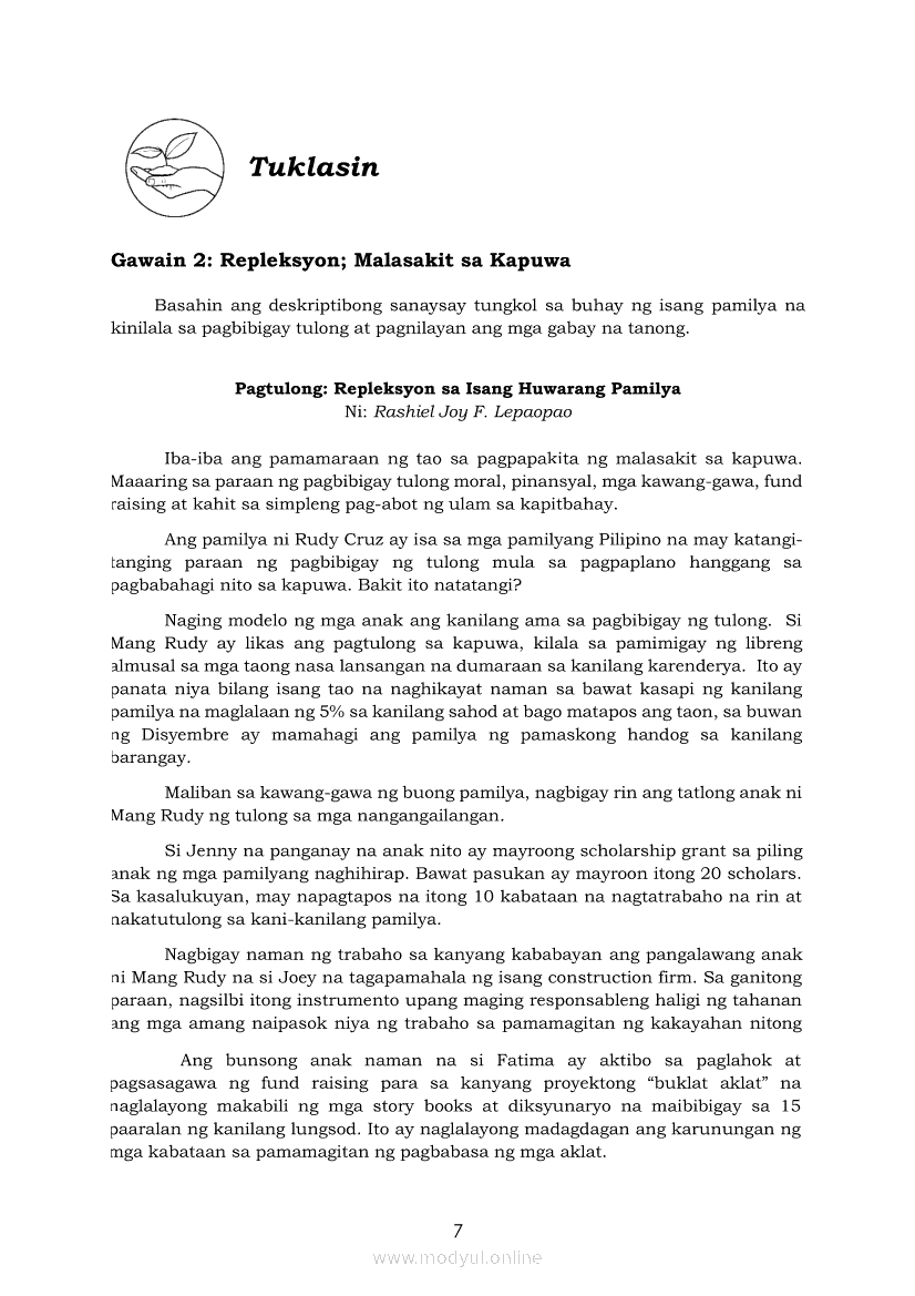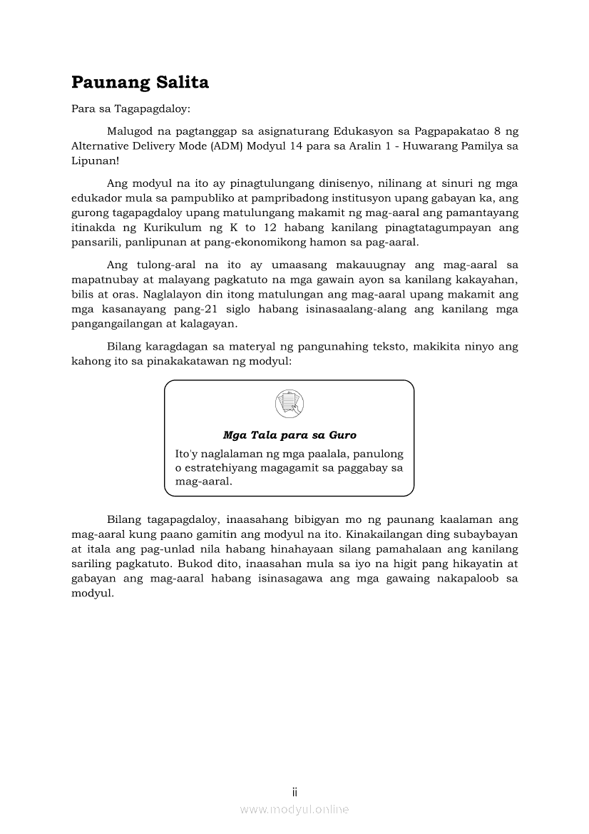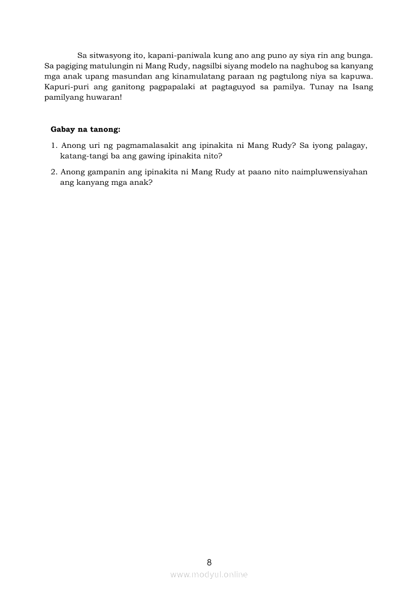 Edukasyon sa Pagpapakatao 8 Modyul 14: Huwarang Pamilya sa LipunanApr 22, 2021 Grade 8Xiaomi Redmi Watch 5 Active 2inch LCD Display Clear Calling 5ATM Waterproof Smart Watch for only ₱3,999 ₱1,200!. Edukasyon sa Pagpapakatao 8RelatedEdukasyon sa Pagpapakatao Ikaapat na Markahan – Modyul 12.A Katapatan sa Salita at Gawa (Linggo: Una)Edukasyon sa Pagpapakatao Ikaapat na Markahan – Modyul 14.B Karahasan sa Paaralan ( Linggo: Ika-anim )Edukasyon sa Pagpapakatao Ikaapat na Markahan – Modyul 14.A Karahasan sa Paaralan (Linggo: Ikalima)Edukasyon sa Pagpapakatao Ikaapat na Markahan – Modyul 12.B Katapatan sa Salita at Gawa (Linggo: Ikalawa)Edukasyon sa Pagpapakatao Ikaapat na Markahan – Modyul 13.B Ang Seksuwalidad ng Tao (Linggo: Ikaapat)