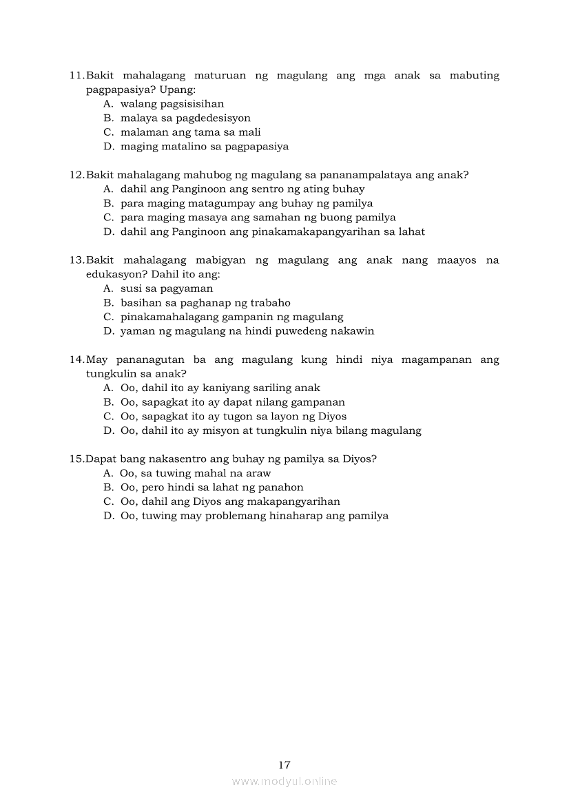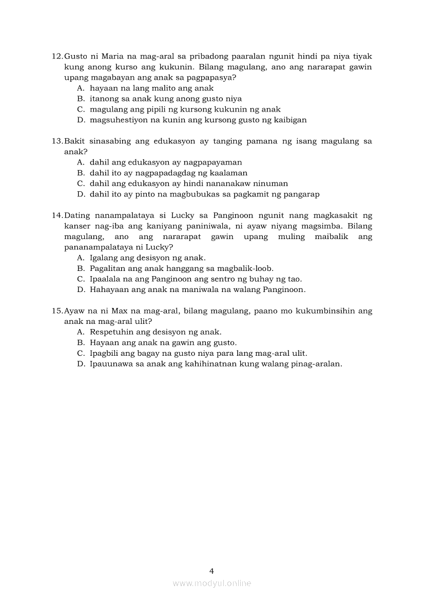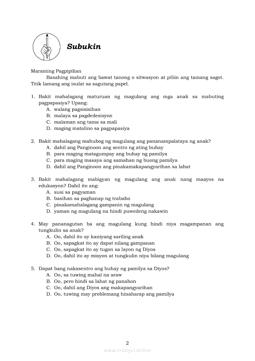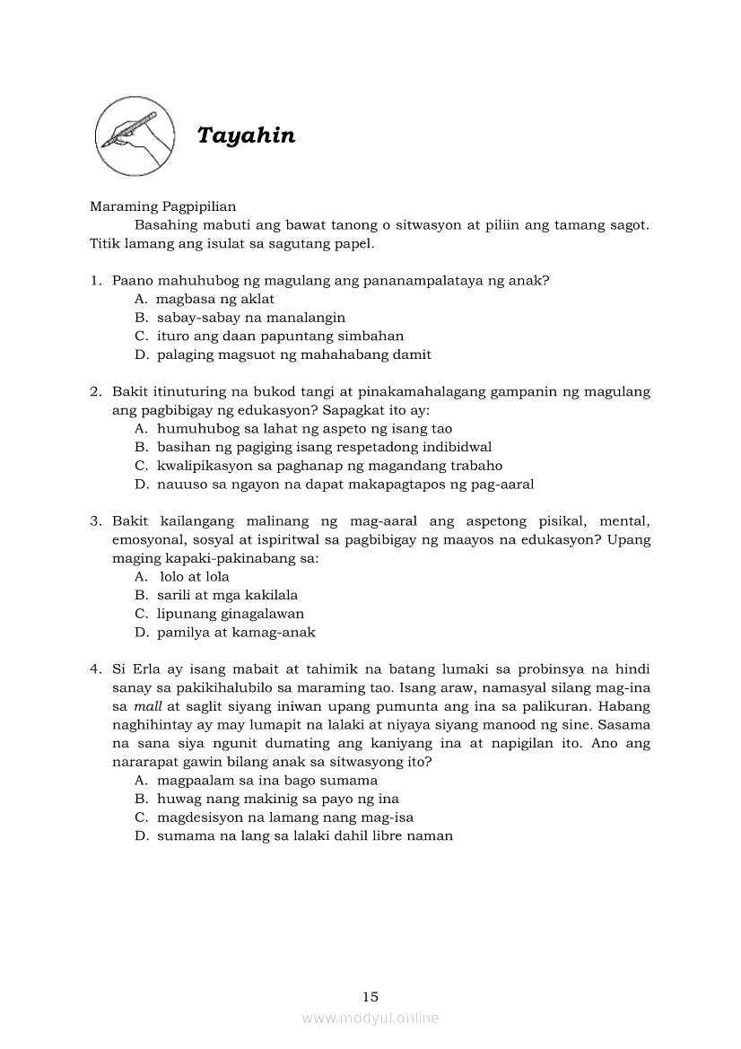 Edukasyon sa Pagpapakatao 8 Modyul 7: Pananagutan ng MagulangApr 22, 2021 Grade 8Xiaomi Redmi Watch 5 Active 2inch LCD Display Clear Calling 5ATM Waterproof Smart Watch for only ₱3,999 ₱1,200!. Edukasyon sa Pagpapakatao 8RelatedEdukasyon sa Pagpapakatao Ikaapat na Markahan – Modyul 13.B Ang Seksuwalidad ng Tao (Linggo: Ikaapat)Edukasyon sa Pagpapakatao Ikaapat na Markahan – Modyul 14.B Karahasan sa Paaralan ( Linggo: Ika-anim )Edukasyon sa Pagpapakatao Ikaapat na Markahan – Modyul 12.B Katapatan sa Salita at Gawa (Linggo: Ikalawa)Edukasyon sa Pagpapakatao Ikaapat na Markahan – Modyul 13.A Ang Seksuwalidad ng Tao (Linggo: Ikatlo)Edukasyon sa Pagpapakatao Ikaapat na Markahan – Modyul 14.A Karahasan sa Paaralan (Linggo: Ikalima)