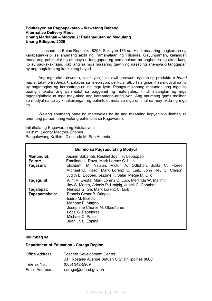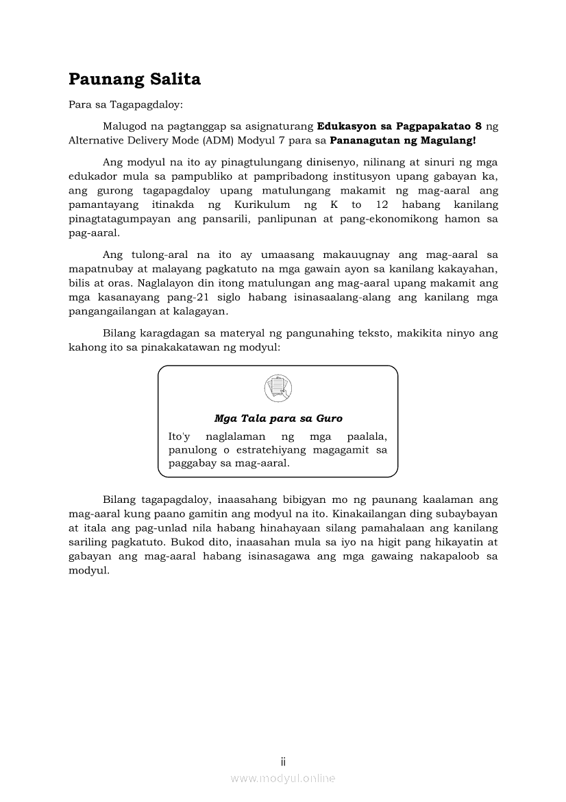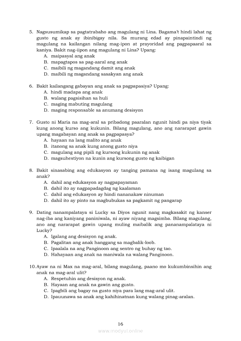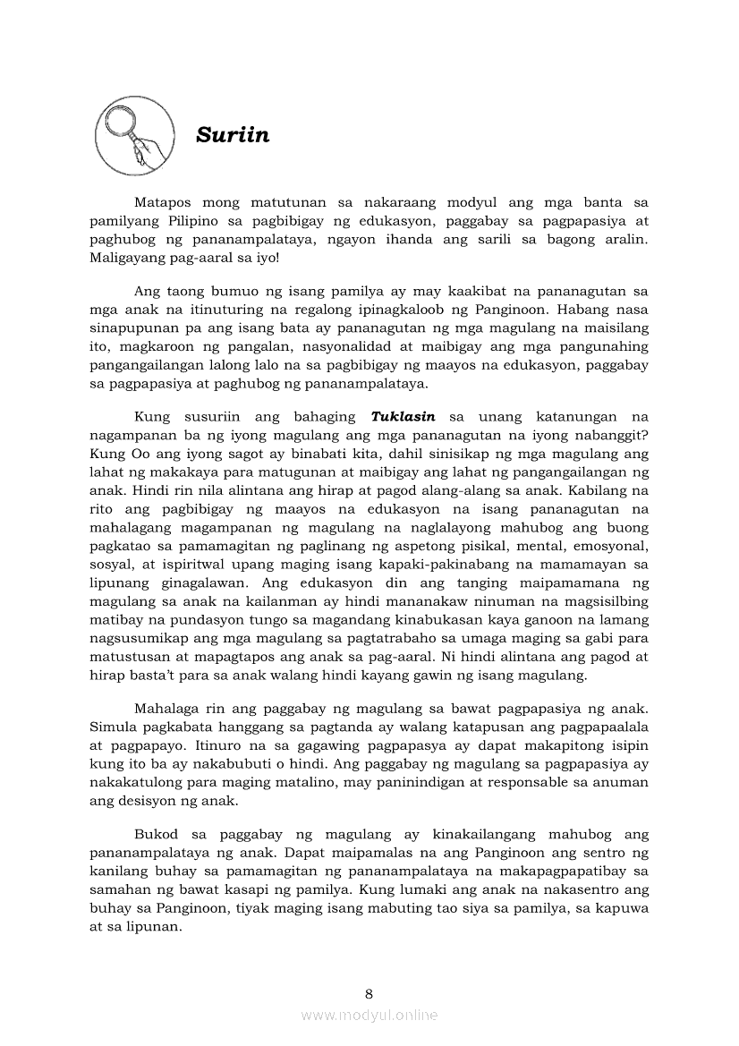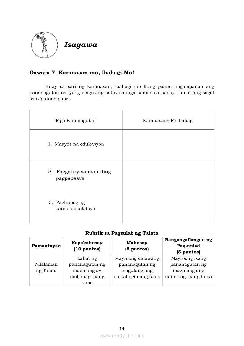 Edukasyon sa Pagpapakatao 8 Modyul 7: Pananagutan ng MagulangApr 22, 2021 Grade 8Xiaomi Redmi Watch 5 Active 2inch LCD Display Clear Calling 5ATM Waterproof Smart Watch for only ₱3,999 ₱1,200!. Edukasyon sa Pagpapakatao 8RelatedEdukasyon sa Pagpapakatao Ikaapat na Markahan – Modyul 13.B Ang Seksuwalidad ng Tao (Linggo: Ikaapat)Edukasyon sa Pagpapakatao Ikaapat na Markahan – Modyul 14.B Karahasan sa Paaralan ( Linggo: Ika-anim )Edukasyon sa Pagpapakatao Ikaapat na Markahan – Modyul 12.B Katapatan sa Salita at Gawa (Linggo: Ikalawa)Edukasyon sa Pagpapakatao Ikaapat na Markahan – Modyul 13.A Ang Seksuwalidad ng Tao (Linggo: Ikatlo)Edukasyon sa Pagpapakatao Ikaapat na Markahan – Modyul 14.A Karahasan sa Paaralan (Linggo: Ikalima)