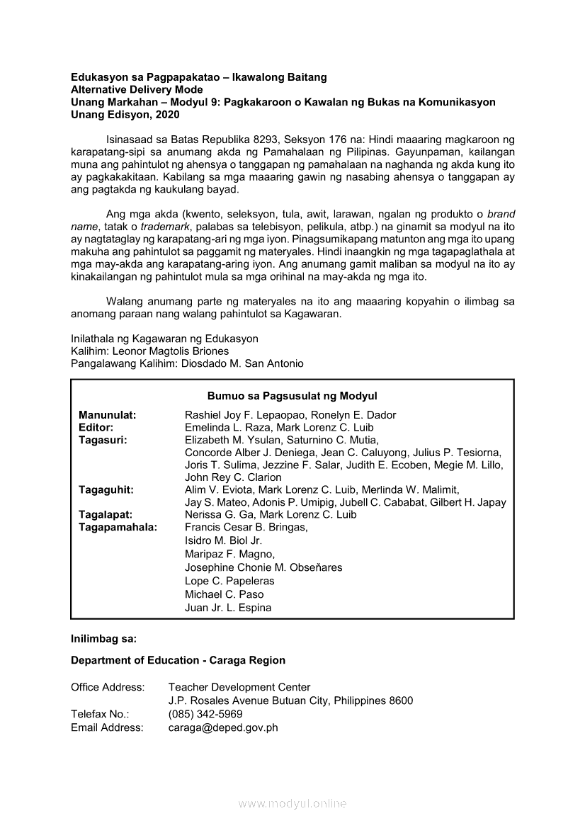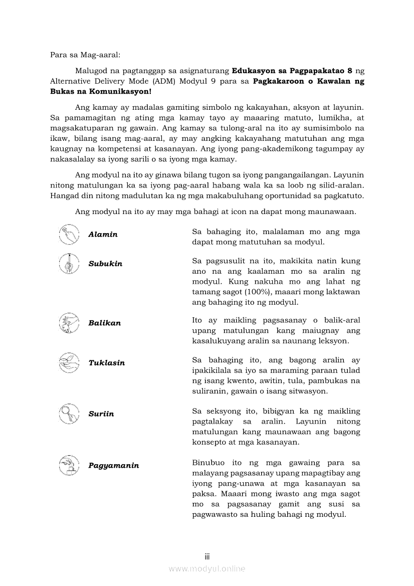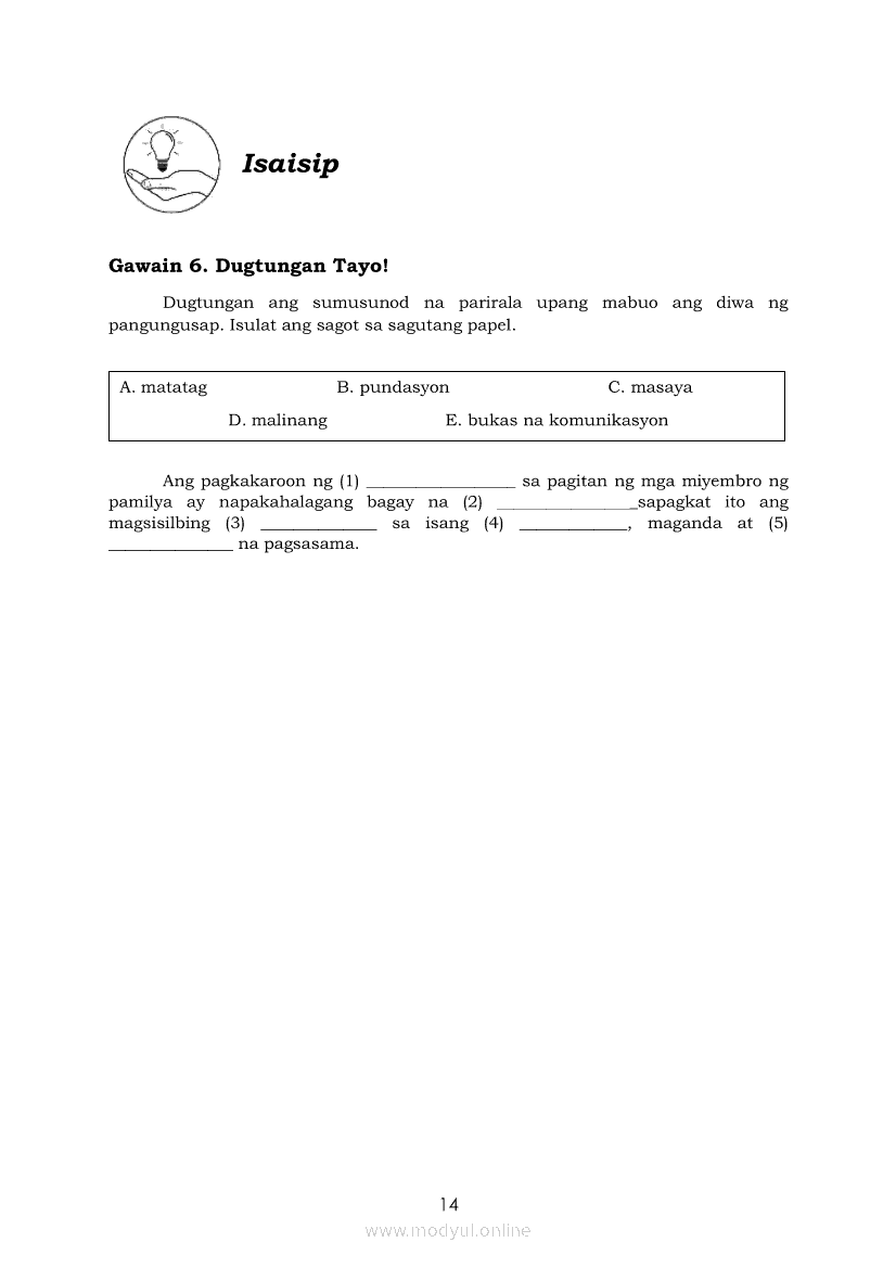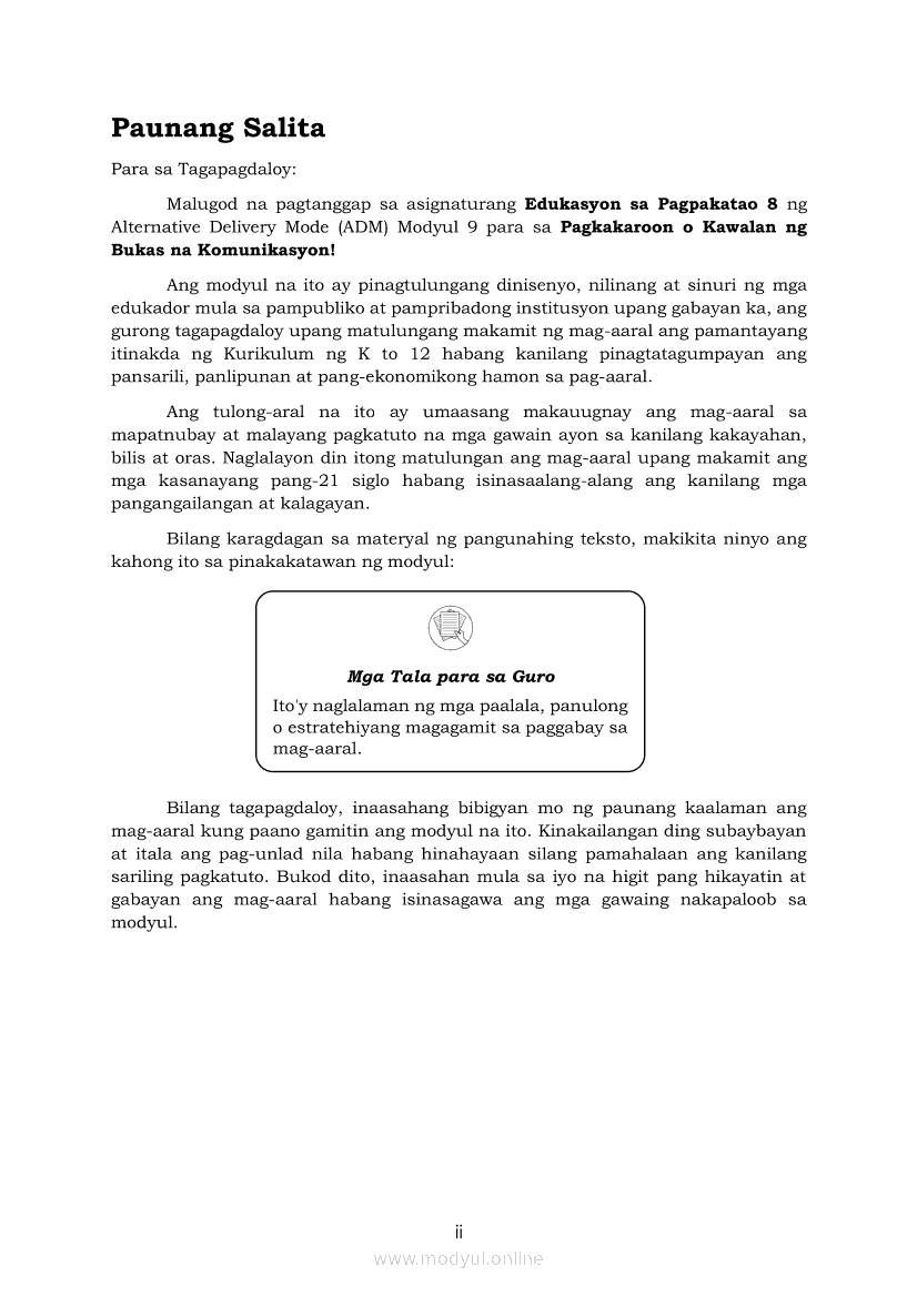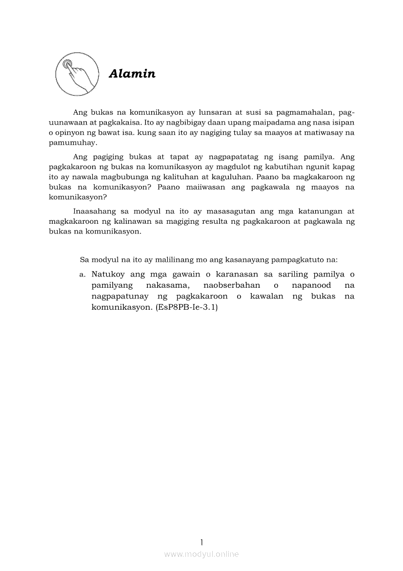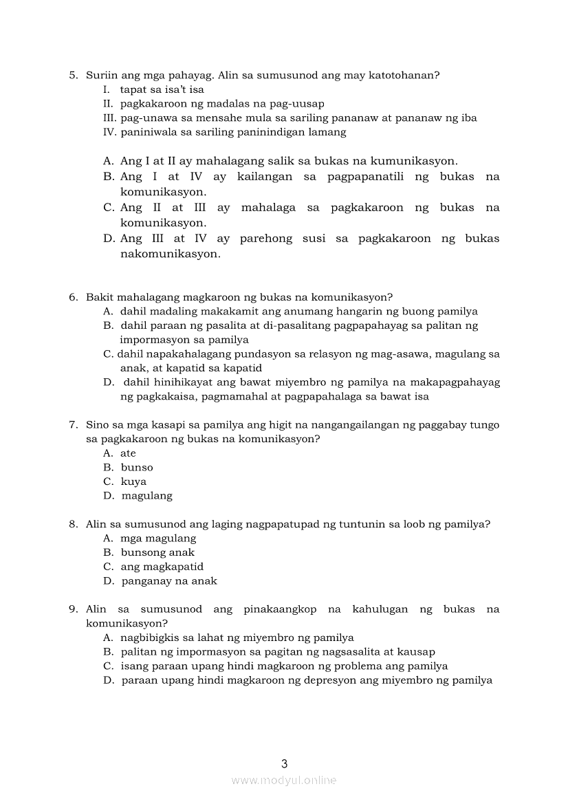 Edukasyon sa Pagpapakatao 8 Modyul 9: Pagkakaroon o Kawalan ng Bukas na KomunikasyonApr 22, 2021 Grade 8Xiaomi Redmi Watch 5 Active 2inch LCD Display Clear Calling 5ATM Waterproof Smart Watch for only ₱3,999 ₱1,200!. Edukasyon sa Pagpapakatao 8RelatedEdukasyon sa Pagpapakatao Ikaapat na Markahan – Modyul 12.A Katapatan sa Salita at Gawa (Linggo: Una)Edukasyon sa Pagpapakatao Ikaapat na Markahan – Modyul 14.B Karahasan sa Paaralan ( Linggo: Ika-anim )Edukasyon sa Pagpapakatao Ikaapat na Markahan – Modyul 12.B Katapatan sa Salita at Gawa (Linggo: Ikalawa)Edukasyon sa Pagpapakatao Ikaapat na Markahan – Modyul 14.A Karahasan sa Paaralan (Linggo: Ikalima)Edukasyon sa Pagpapakatao Ikaapat na Markahan – Modyul 13.B Ang Seksuwalidad ng Tao (Linggo: Ikaapat)