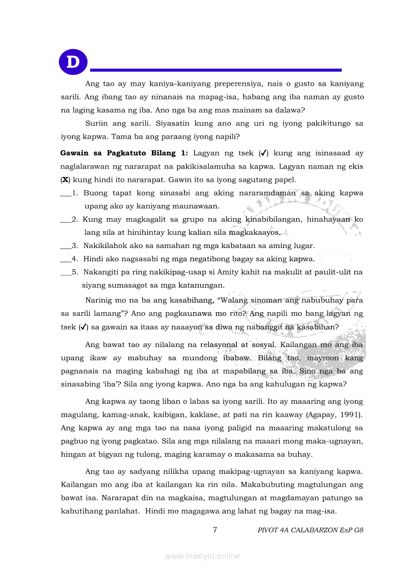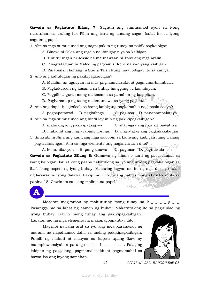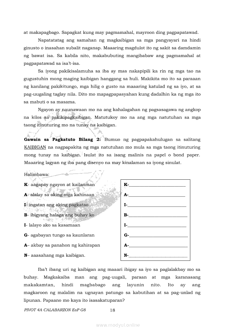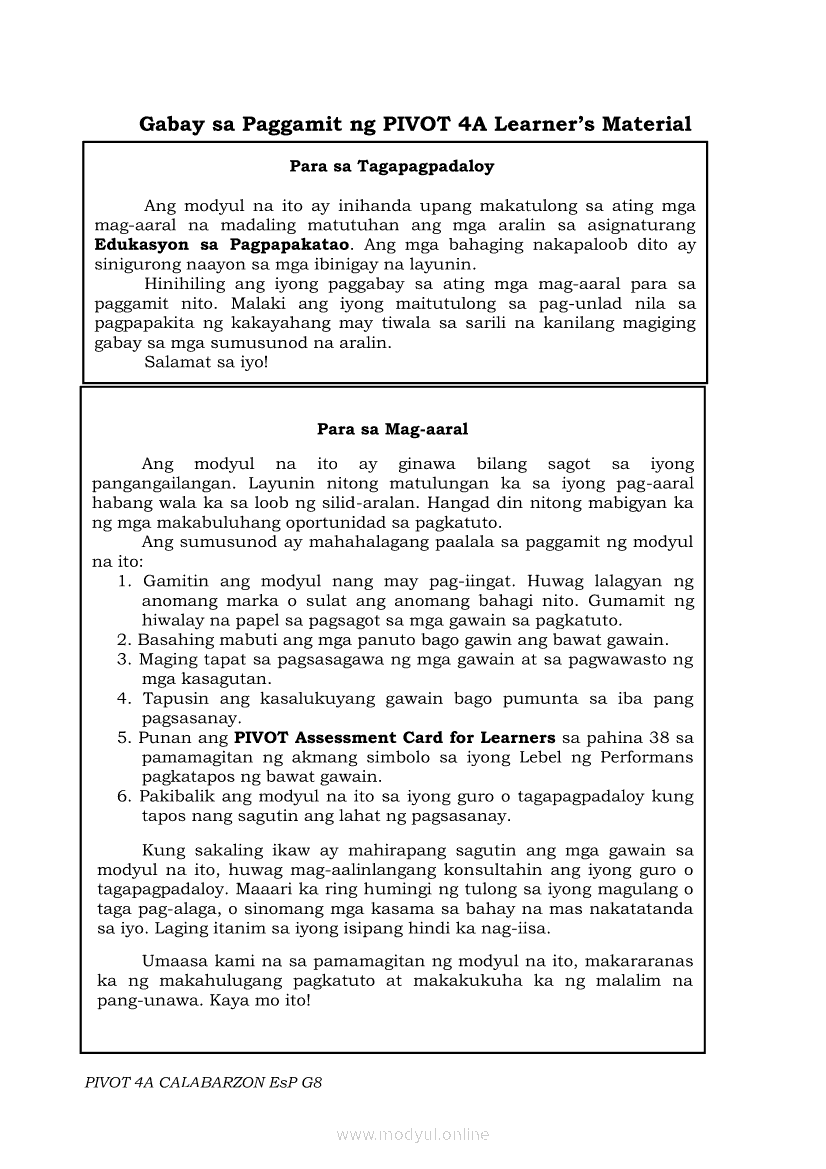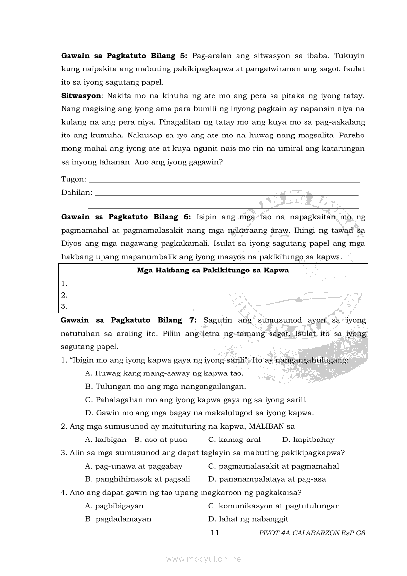 Edukasyon sa Pagpapakatao 8 Modyul para sa Ikalawang Markahan (PIVOT)Apr 22, 2021 Grade 8Xiaomi Redmi Watch 5 Active 2inch LCD Display Clear Calling 5ATM Waterproof Smart Watch for only ₱3,999 ₱1,200!. Edukasyon sa Pagpapakatao 8RelatedEdukasyon sa Pagpapakatao Ikaapat na Markahan – Modyul 12.A Katapatan sa Salita at Gawa (Linggo: Una)Edukasyon sa Pagpapakatao Ikaapat na Markahan – Modyul 12.B Katapatan sa Salita at Gawa (Linggo: Ikalawa)Edukasyon sa Pagpapakatao Ikaapat na Markahan – Modyul 13.A Ang Seksuwalidad ng Tao (Linggo: Ikatlo)Edukasyon sa Pagpapakatao Ikaapat na Markahan – Modyul 13.B Ang Seksuwalidad ng Tao (Linggo: Ikaapat)Edukasyon sa Pagpapakatao Ikaapat na Markahan – Modyul 14.B Karahasan sa Paaralan ( Linggo: Ika-anim )