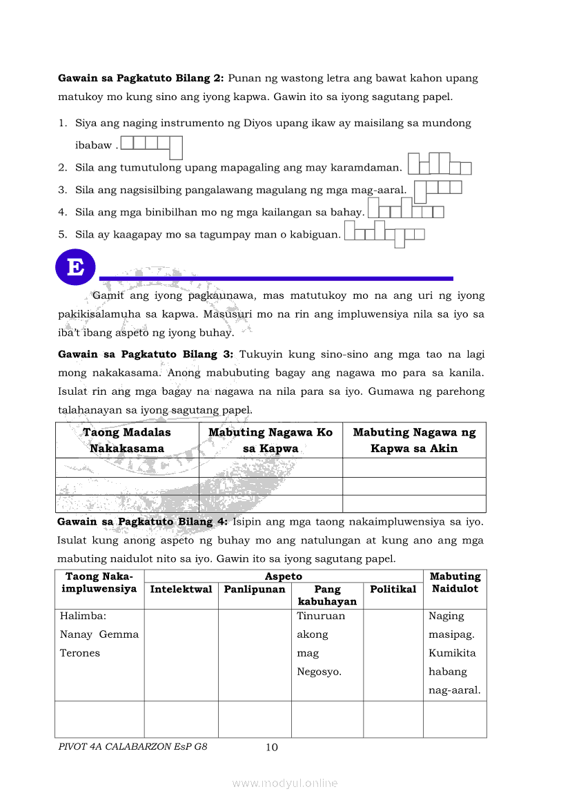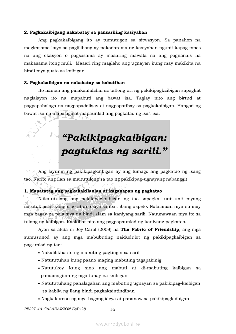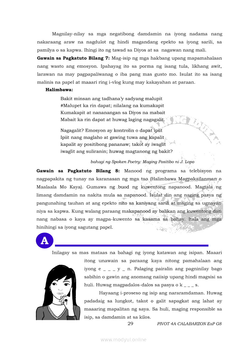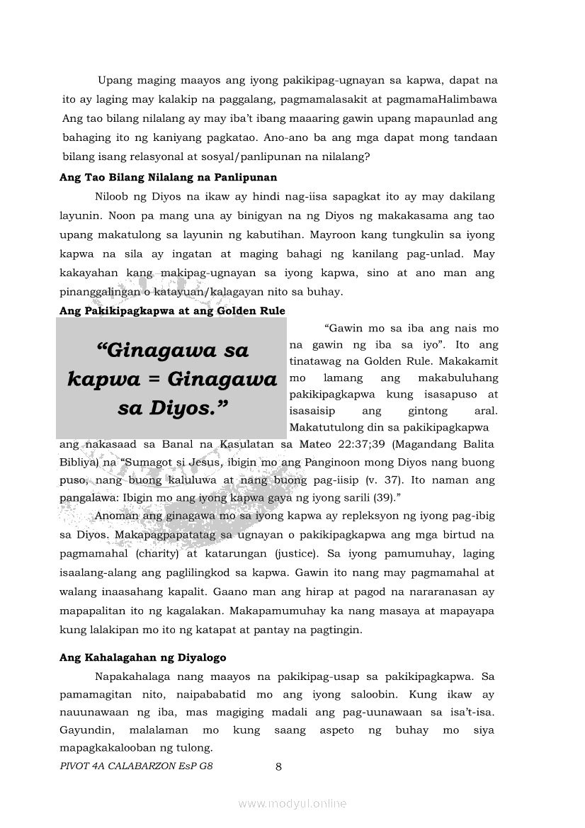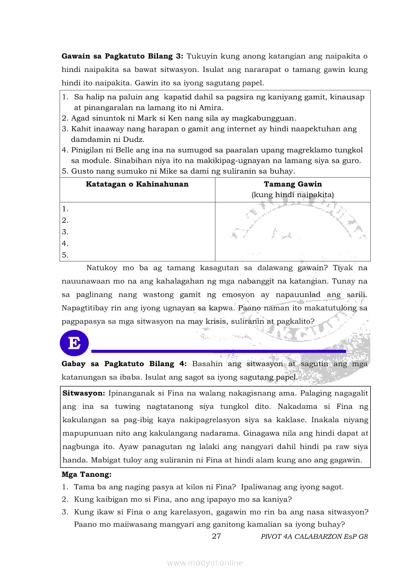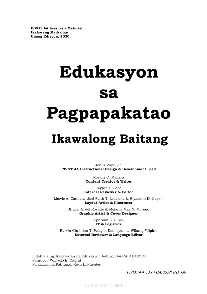 Edukasyon sa Pagpapakatao 8 Modyul para sa Ikalawang Markahan (PIVOT)Apr 22, 2021 Grade 8Xiaomi Redmi Watch 5 Active 2inch LCD Display Clear Calling 5ATM Waterproof Smart Watch for only ₱3,999 ₱1,200!. Edukasyon sa Pagpapakatao 8RelatedEdukasyon sa Pagpapakatao Ikaapat na Markahan – Modyul 12.A Katapatan sa Salita at Gawa (Linggo: Una)Edukasyon sa Pagpapakatao Ikaapat na Markahan – Modyul 12.B Katapatan sa Salita at Gawa (Linggo: Ikalawa)Edukasyon sa Pagpapakatao Ikaapat na Markahan – Modyul 13.A Ang Seksuwalidad ng Tao (Linggo: Ikatlo)Edukasyon sa Pagpapakatao Ikaapat na Markahan – Modyul 13.B Ang Seksuwalidad ng Tao (Linggo: Ikaapat)Edukasyon sa Pagpapakatao Ikaapat na Markahan – Modyul 14.B Karahasan sa Paaralan ( Linggo: Ika-anim )