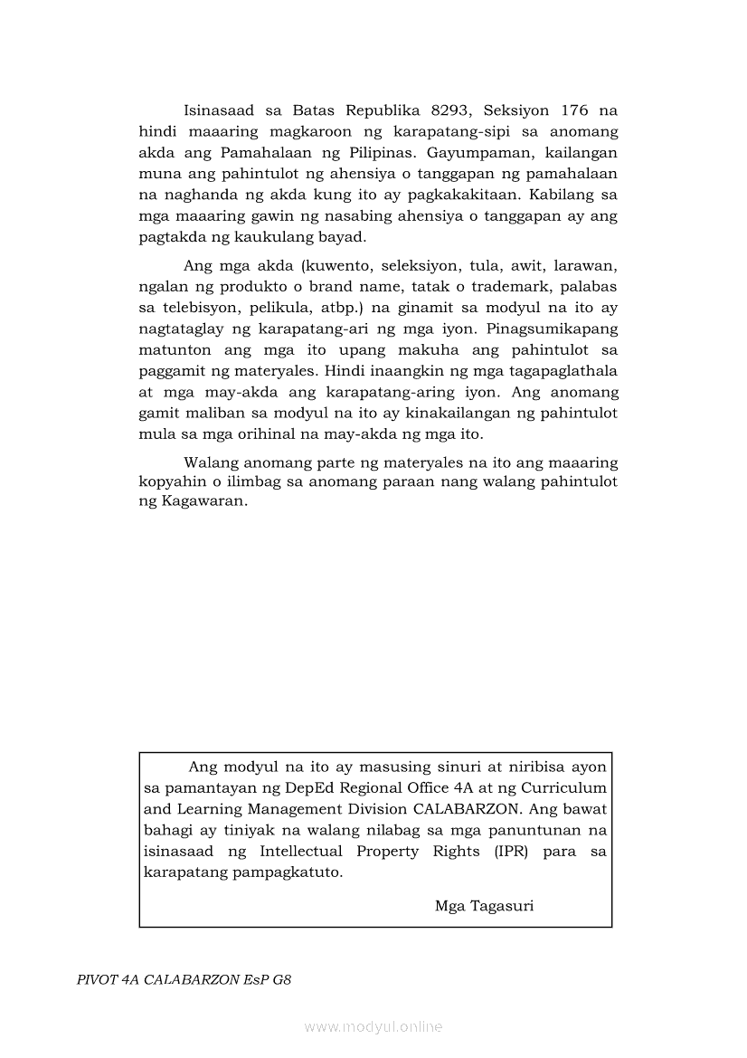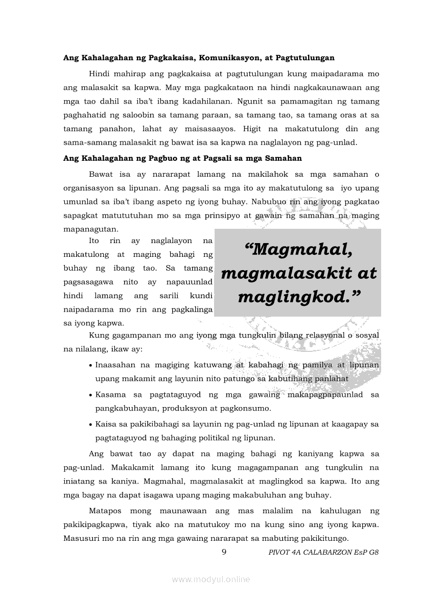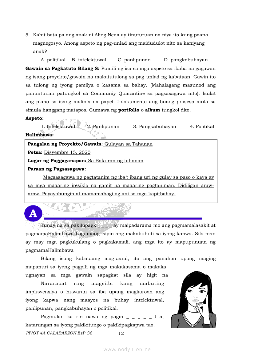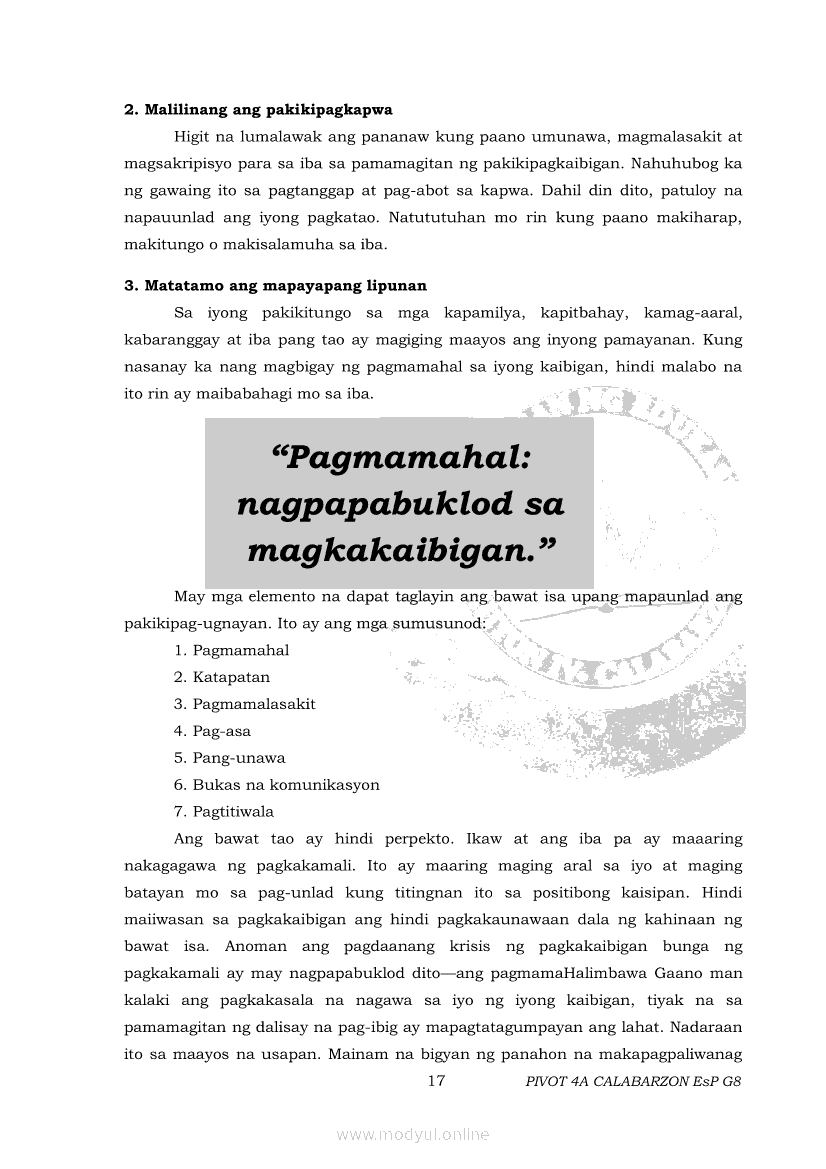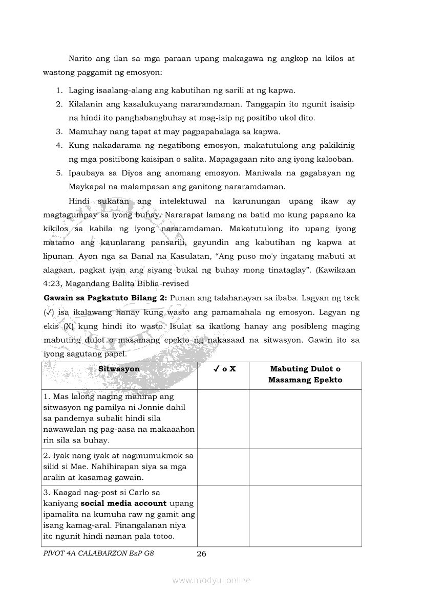 Edukasyon sa Pagpapakatao 8 Modyul para sa Ikalawang Markahan (PIVOT)Apr 22, 2021 Grade 8Xiaomi Redmi Watch 5 Active 2inch LCD Display Clear Calling 5ATM Waterproof Smart Watch for only ₱3,999 ₱1,200!. Edukasyon sa Pagpapakatao 8RelatedEdukasyon sa Pagpapakatao Ikaapat na Markahan – Modyul 12.A Katapatan sa Salita at Gawa (Linggo: Una)Edukasyon sa Pagpapakatao Ikaapat na Markahan – Modyul 12.B Katapatan sa Salita at Gawa (Linggo: Ikalawa)Edukasyon sa Pagpapakatao Ikaapat na Markahan – Modyul 13.A Ang Seksuwalidad ng Tao (Linggo: Ikatlo)Edukasyon sa Pagpapakatao Ikaapat na Markahan – Modyul 13.B Ang Seksuwalidad ng Tao (Linggo: Ikaapat)Edukasyon sa Pagpapakatao Ikaapat na Markahan – Modyul 14.B Karahasan sa Paaralan ( Linggo: Ika-anim )