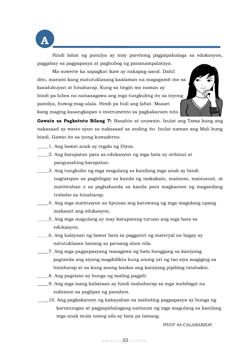 Edukasyon sa Pagpapakatao 8 Modyul sa ESPApr 22, 2021 Grade 8Xiaomi Redmi Watch 5 Active 2inch LCD Display Clear Calling 5ATM Waterproof Smart Watch for only ₱3,999 ₱1,200!. Edukasyon sa Pagpapakatao 8RelatedEdukasyon sa Pagpapakatao Ikaapat na Markahan – Modyul 13.B Ang Seksuwalidad ng Tao (Linggo: Ikaapat)Edukasyon sa Pagpapakatao Ikaapat na Markahan – Modyul 14.A Karahasan sa Paaralan (Linggo: Ikalima)Edukasyon sa Pagpapakatao Ikaapat na Markahan – Modyul 13.A Ang Seksuwalidad ng Tao (Linggo: Ikatlo)Edukasyon sa Pagpapakatao Ikaapat na Markahan – Modyul 12.B Katapatan sa Salita at Gawa (Linggo: Ikalawa)Edukasyon sa Pagpapakatao Ikaapat na Markahan – Modyul 12.A Katapatan sa Salita at Gawa (Linggo: Una)