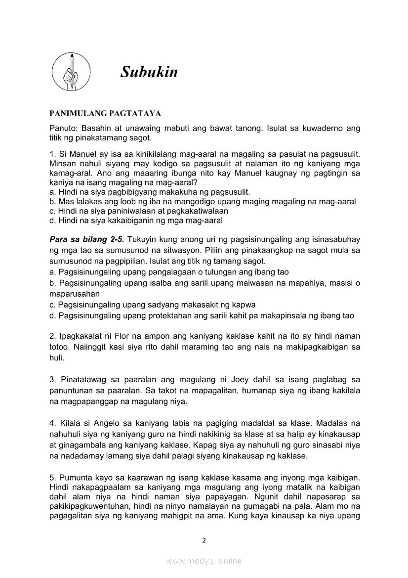Edukasyon sa Pagpapakatao Ikaapat na Markahan – Modyul 12.A Katapatan sa Salita at Gawa (Linggo: Una)May 27, 2021 Grade 8Xiaomi Redmi Watch 5 Active 2inch LCD Display Clear Calling 5ATM Waterproof Smart Watch for only ₱3,999 ₱1,200!. Edukasyon sa Pagpapakatao 8 4th QuarterRelatedEdukasyon sa Pagpapakatao Ikaapat na Markahan – Modyul 13.B Ang Seksuwalidad ng Tao (Linggo: Ikaapat)Edukasyon sa Pagpapakatao Ikaapat na Markahan – Modyul 14.A Karahasan sa Paaralan (Linggo: Ikalima)Edukasyon sa Pagpapakatao Ikaapat na Markahan – Modyul 13.A Ang Seksuwalidad ng Tao (Linggo: Ikatlo)Edukasyon sa Pagpapakatao Ikaapat na Markahan – Modyul 14.B Karahasan sa Paaralan ( Linggo: Ika-anim )Edukasyon sa Pagpapakatao Ikaapat na Markahan – Modyul 12.B Katapatan sa Salita at Gawa (Linggo: Ikalawa)