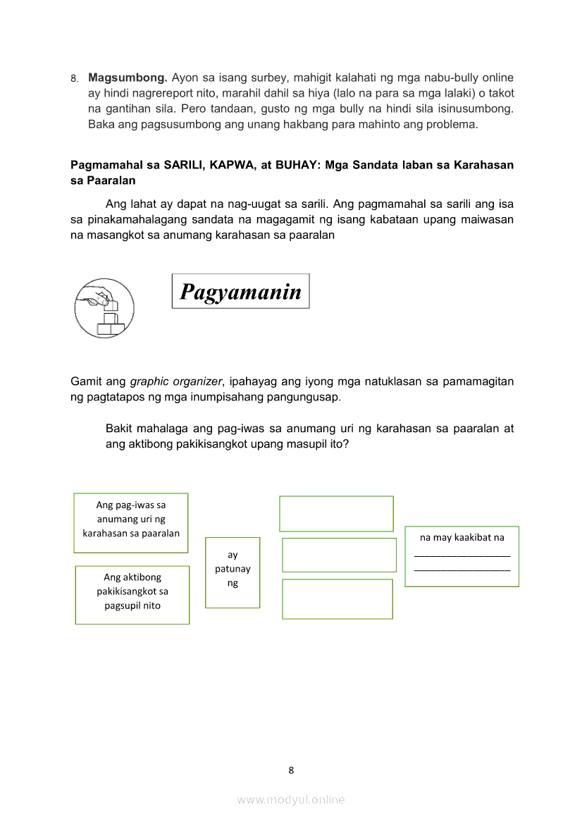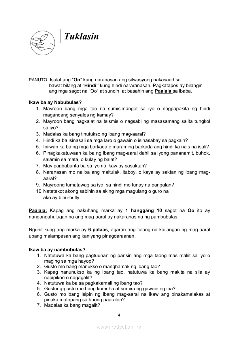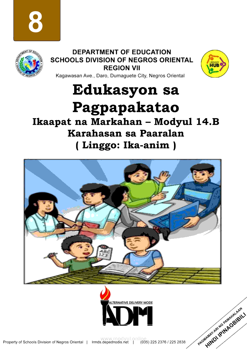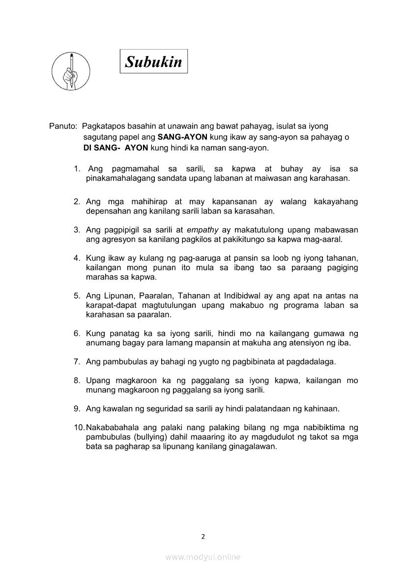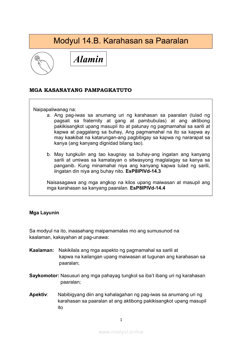 Edukasyon sa Pagpapakatao Ikaapat na Markahan – Modyul 14.B Karahasan sa Paaralan ( Linggo: Ika-anim )May 27, 2021 Grade 8Xiaomi Redmi Watch 5 Active 2inch LCD Display Clear Calling 5ATM Waterproof Smart Watch for only ₱3,999 ₱1,200!. Edukasyon sa Pagpapakatao 8 4th QuarterRelatedEdukasyon sa Pagpapakatao Ikaapat na Markahan – Modyul 12.A Katapatan sa Salita at Gawa (Linggo: Una)Edukasyon sa Pagpapakatao Ikaapat na Markahan – Modyul 12.B Katapatan sa Salita at Gawa (Linggo: Ikalawa)Edukasyon sa Pagpapakatao Ikaapat na Markahan – Modyul 13.B Ang Seksuwalidad ng Tao (Linggo: Ikaapat)Edukasyon sa Pagpapakatao Ikaapat na Markahan – Modyul 13.A Ang Seksuwalidad ng Tao (Linggo: Ikatlo)Edukasyon sa Pagpapakatao Ikaapat na Markahan – Modyul 14.A Karahasan sa Paaralan (Linggo: Ikalima)