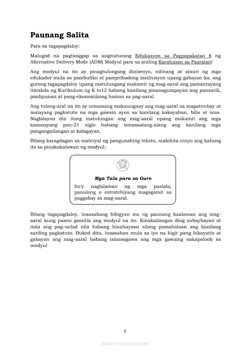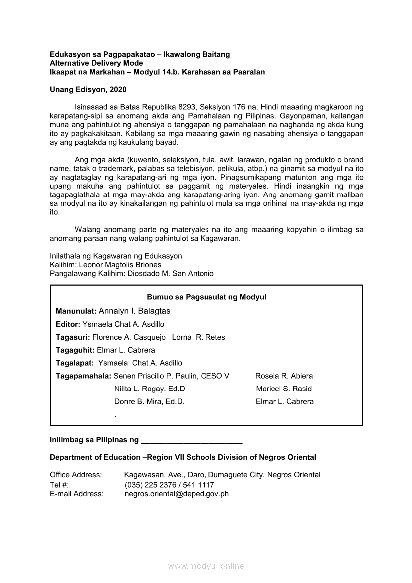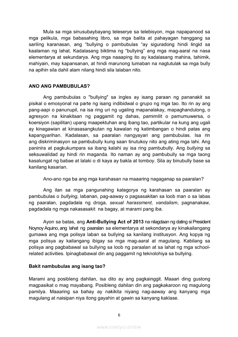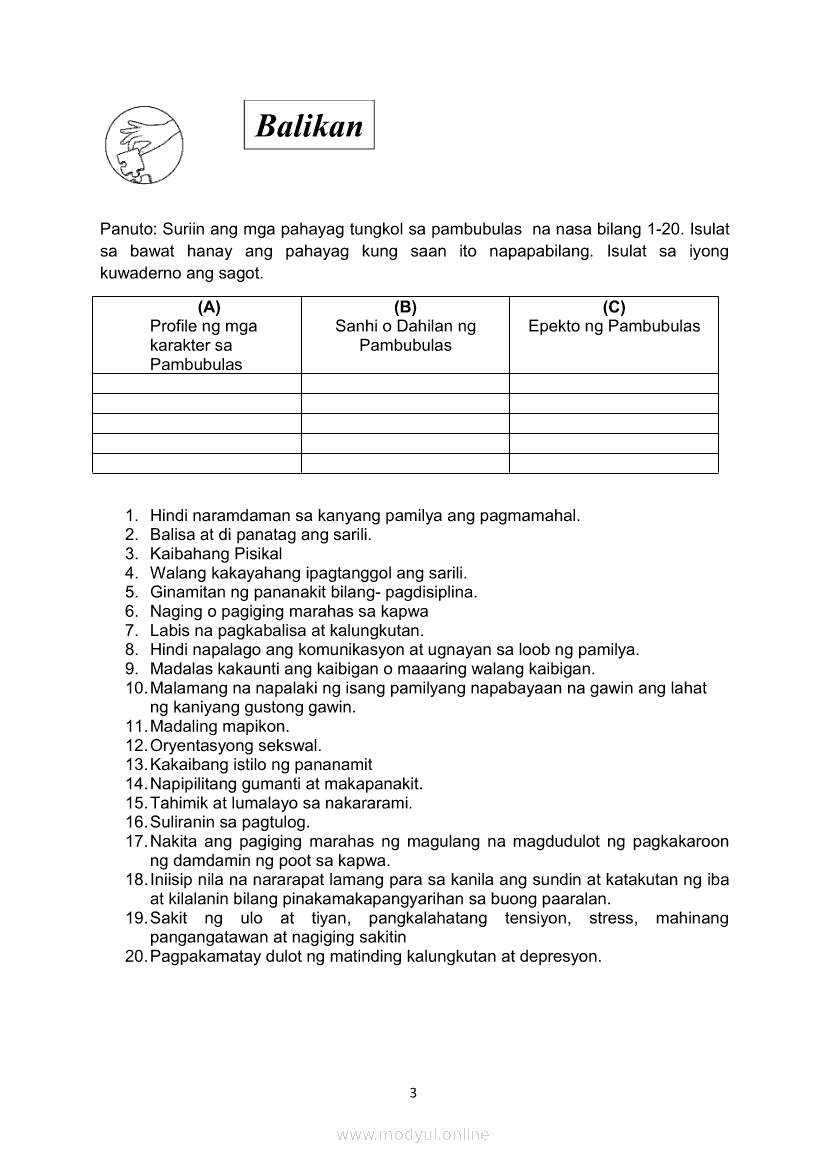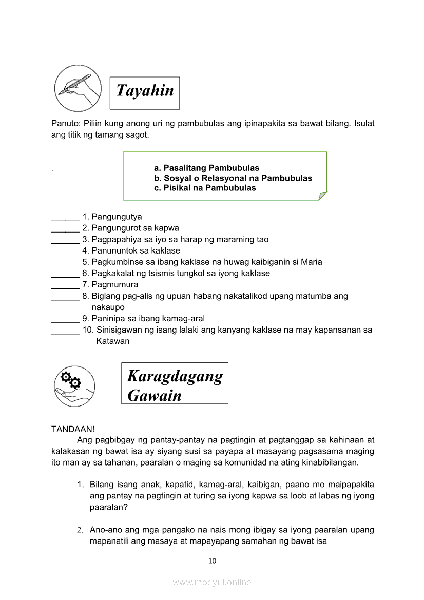 Edukasyon sa Pagpapakatao Ikaapat na Markahan – Modyul 14.B Karahasan sa Paaralan ( Linggo: Ika-anim )May 27, 2021 Grade 8Xiaomi Redmi Watch 5 Active 2inch LCD Display Clear Calling 5ATM Waterproof Smart Watch for only ₱3,999 ₱1,200!. Edukasyon sa Pagpapakatao 8 4th QuarterRelatedEdukasyon sa Pagpapakatao Ikaapat na Markahan – Modyul 12.A Katapatan sa Salita at Gawa (Linggo: Una)Edukasyon sa Pagpapakatao Ikaapat na Markahan – Modyul 12.B Katapatan sa Salita at Gawa (Linggo: Ikalawa)Edukasyon sa Pagpapakatao Ikaapat na Markahan – Modyul 13.B Ang Seksuwalidad ng Tao (Linggo: Ikaapat)Edukasyon sa Pagpapakatao Ikaapat na Markahan – Modyul 13.A Ang Seksuwalidad ng Tao (Linggo: Ikatlo)Edukasyon sa Pagpapakatao Ikaapat na Markahan – Modyul 14.A Karahasan sa Paaralan (Linggo: Ikalima)