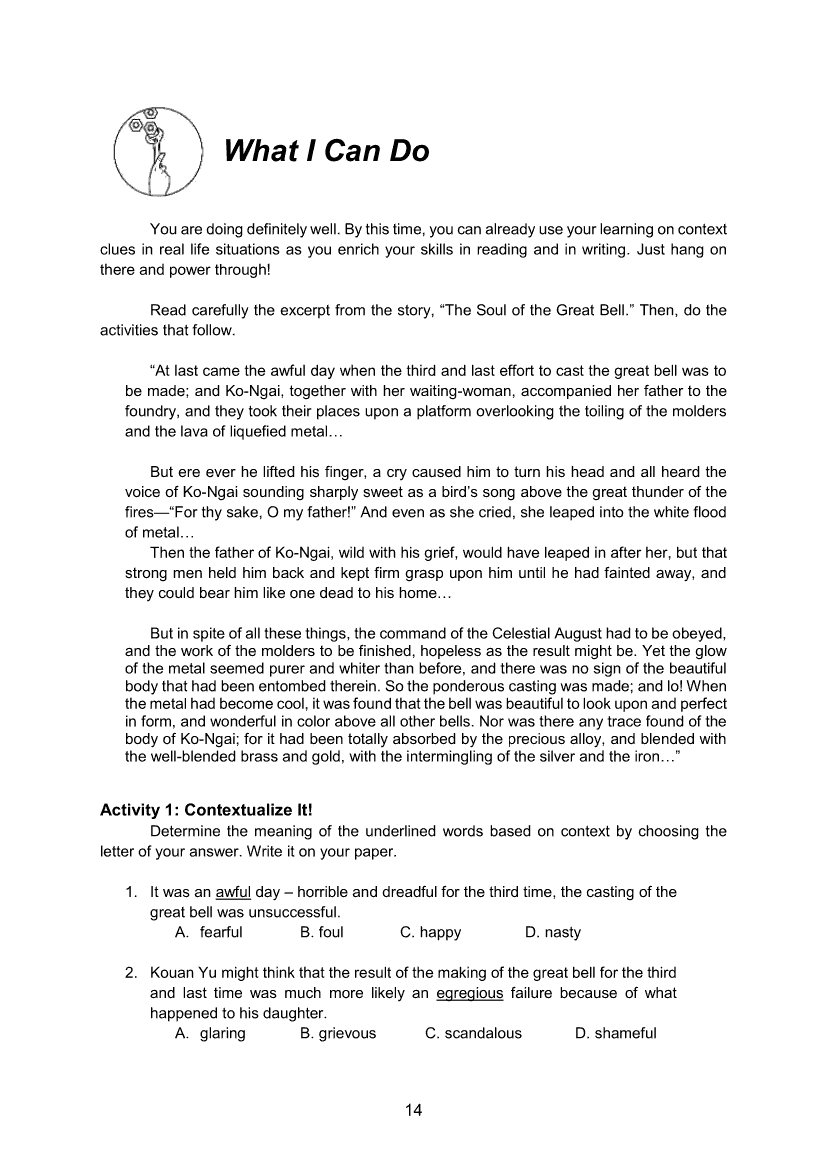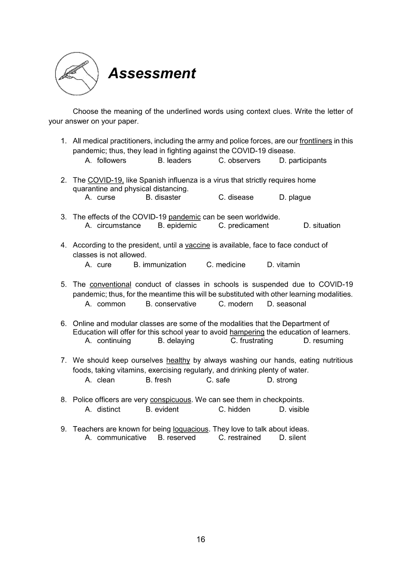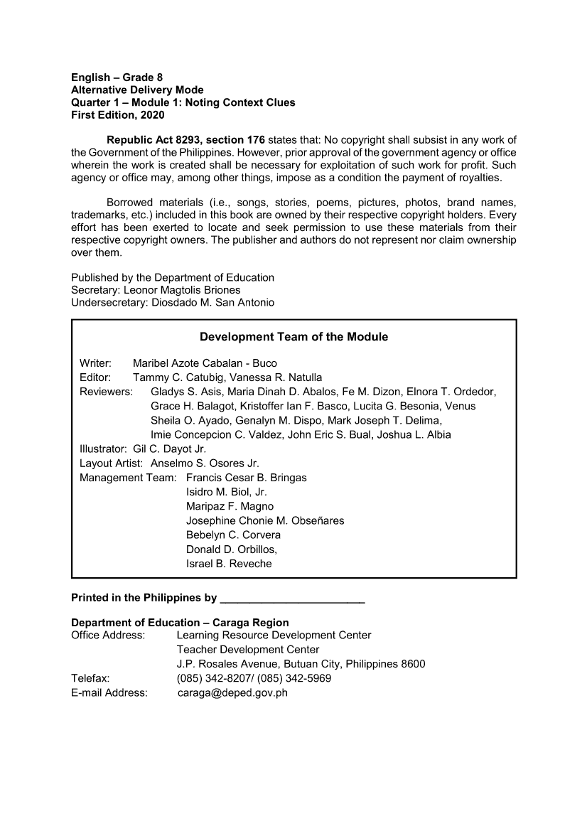English 8 Module 1: Noting Context CluesApr 22, 2021 Grade 8Xiaomi Redmi Watch 5 Active 2inch LCD Display Clear Calling 5ATM Waterproof Smart Watch for only ₱3,999 ₱1,200!. English 8RelatedEnglish Quarter 4 – Module 1b: Using Appropriate Grammatical Signals or Expressions Suitable to Each Pattern of Idea Development: Problem-Solution and Cause-EffectEnglish Quarter 4 – Module 1a: Using Appropriate Grammatical Signals Suitable to Each Pattern of Idea Development: General to Particular and Claim and CounterclaimEnglish 8 Module 2: Writing BibliographyEnglish 8 Module 4: Using Transition SignalsEnglish 8 Quarter 2 - Module 1: Explaining Visual-Verbal Relationships