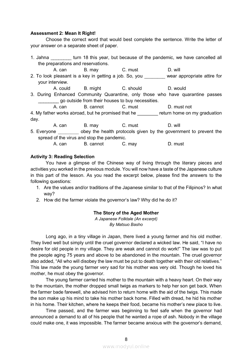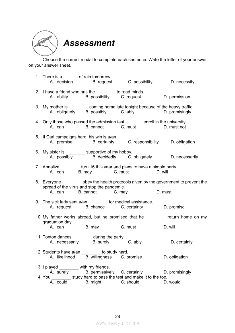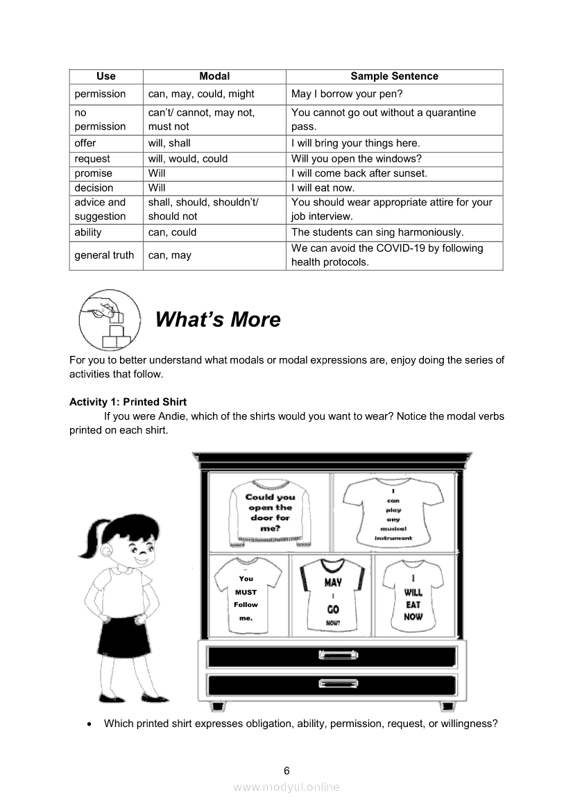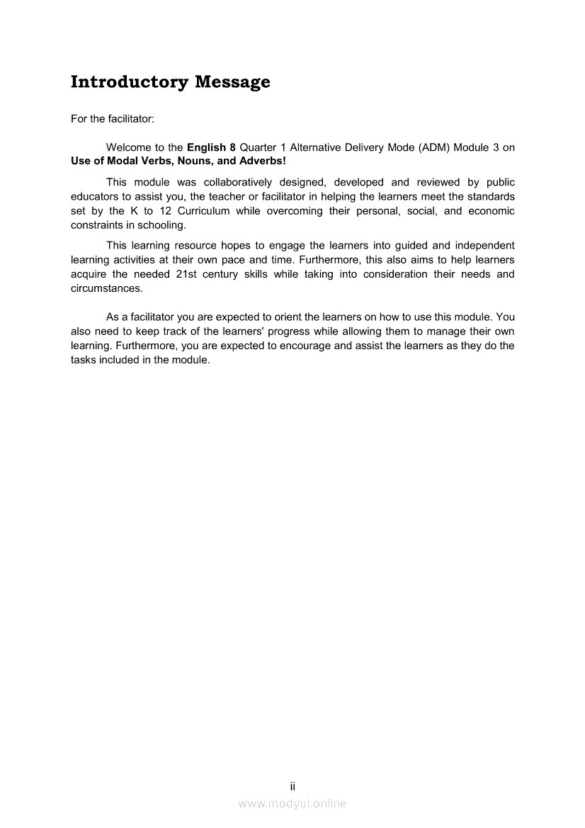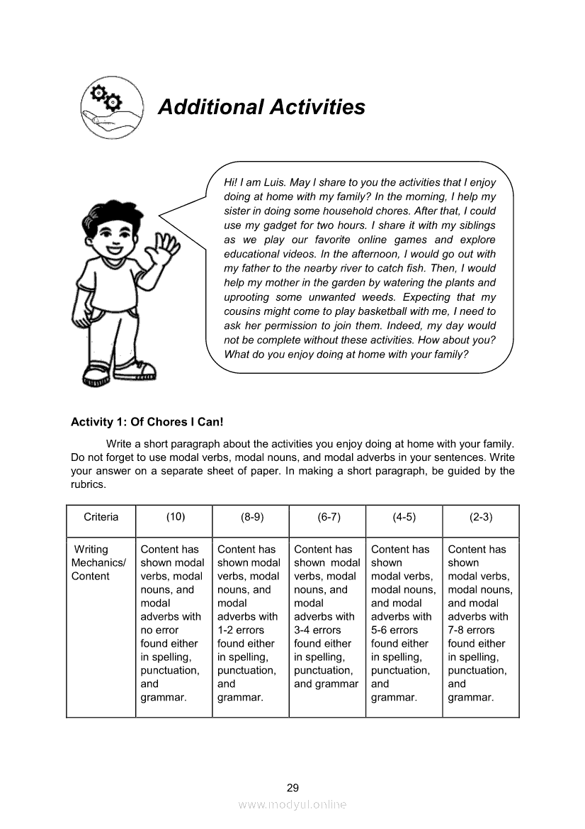 English 8 Module 3: Use of Modal Verbs, Nouns, and AdverbsApr 22, 2021 Grade 8Xiaomi Redmi Watch 5 Active 2inch LCD Display Clear Calling 5ATM Waterproof Smart Watch for only ₱3,999 ₱1,200!. English 8RelatedEnglish Quarter 4 – Module 1b: Using Appropriate Grammatical Signals or Expressions Suitable to Each Pattern of Idea Development: Problem-Solution and Cause-EffectEnglish Quarter 4 – Module 1a: Using Appropriate Grammatical Signals Suitable to Each Pattern of Idea Development: General to Particular and Claim and CounterclaimEnglish 8 Module 5: Expressing Emotional Responses Using a Range of Verbs, Adjectives, and AdverbsEnglish 8 Module 1: Noting Context CluesEnglish 8 Quarter 2 - Module 1: Explaining Visual-Verbal Relationships