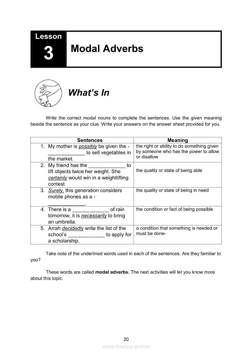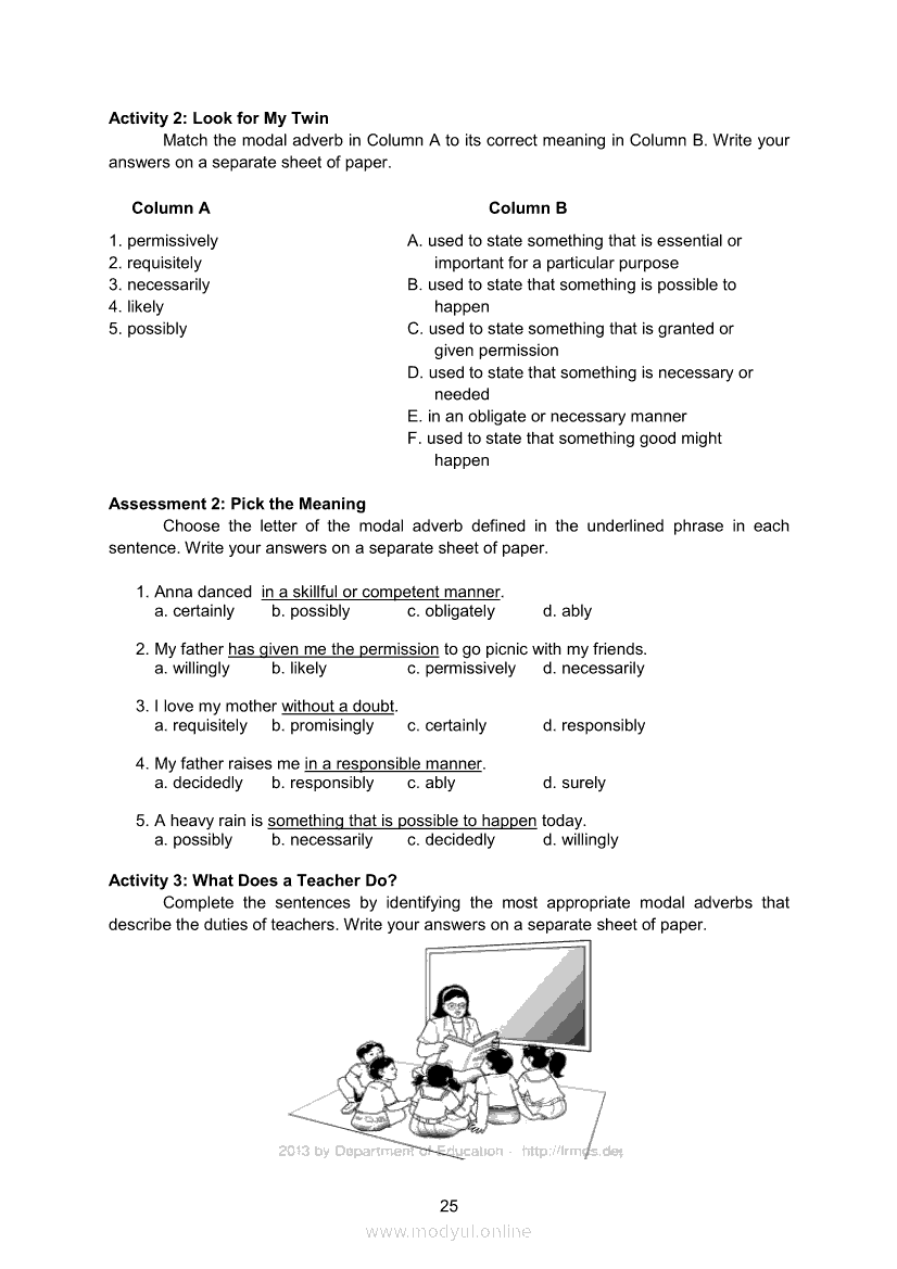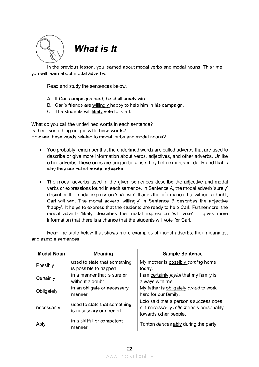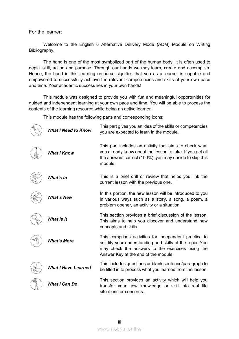 English 8 Module 3: Use of Modal Verbs, Nouns, and AdverbsApr 22, 2021 Grade 8Xiaomi Redmi Watch 5 Active 2inch LCD Display Clear Calling 5ATM Waterproof Smart Watch for only ₱3,999 ₱1,200!. English 8RelatedEnglish Quarter 4 – Module 1b: Using Appropriate Grammatical Signals or Expressions Suitable to Each Pattern of Idea Development: Problem-Solution and Cause-EffectEnglish Quarter 4 – Module 1a: Using Appropriate Grammatical Signals Suitable to Each Pattern of Idea Development: General to Particular and Claim and CounterclaimEnglish 8 Module 5: Expressing Emotional Responses Using a Range of Verbs, Adjectives, and AdverbsEnglish 8 Module 1: Noting Context CluesEnglish 8 Quarter 2 - Module 1: Explaining Visual-Verbal Relationships