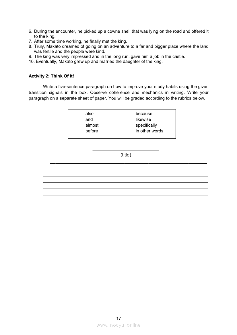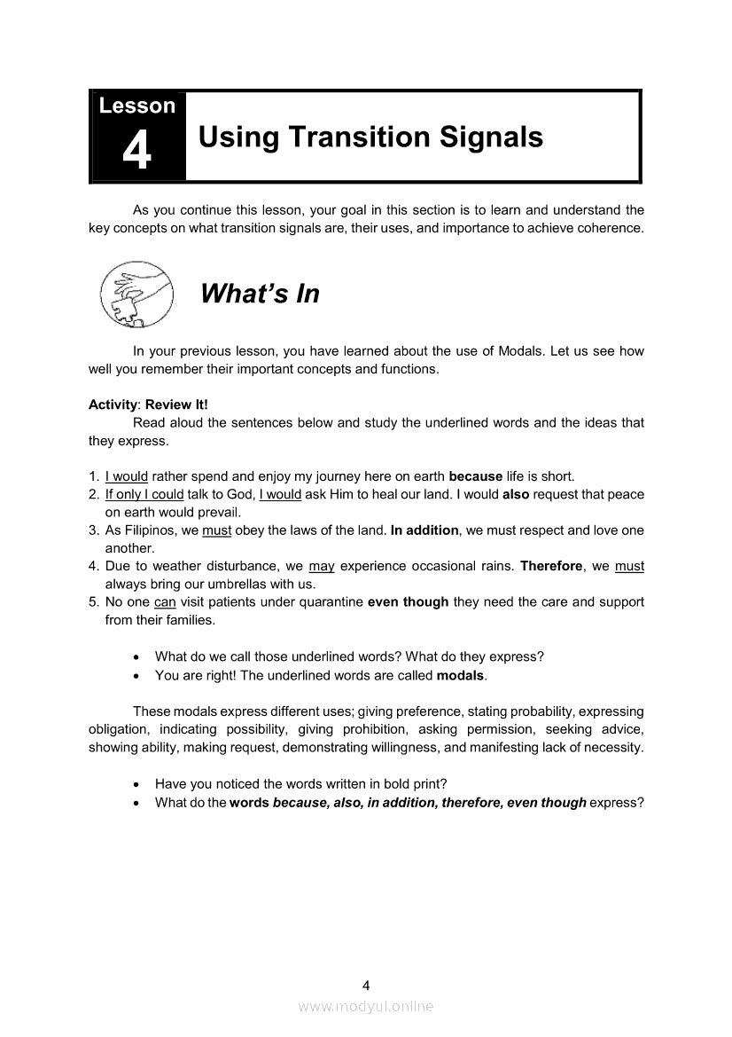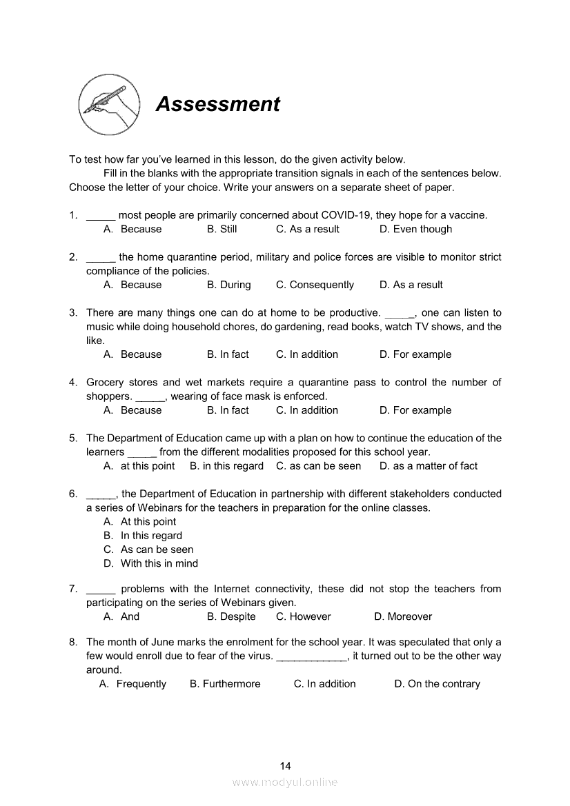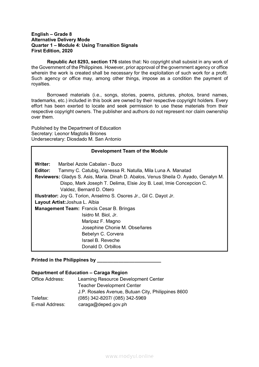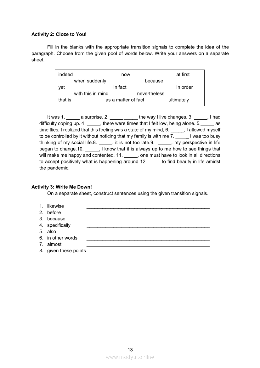 English 8 Module 4: Using Transition SignalsApr 22, 2021 Grade 8Xiaomi Redmi Watch 5 Active 2inch LCD Display Clear Calling 5ATM Waterproof Smart Watch for only ₱3,999 ₱1,200!. English 8RelatedEnglish Quarter 4 – Module 1b: Using Appropriate Grammatical Signals or Expressions Suitable to Each Pattern of Idea Development: Problem-Solution and Cause-EffectEnglish Quarter 4 – Module 1a: Using Appropriate Grammatical Signals Suitable to Each Pattern of Idea Development: General to Particular and Claim and CounterclaimEnglish 8 Module 1: Noting Context CluesEnglish 8 Module 2: Writing BibliographyEnglish 8 Quarter 2 - Module 1: Explaining Visual-Verbal Relationships