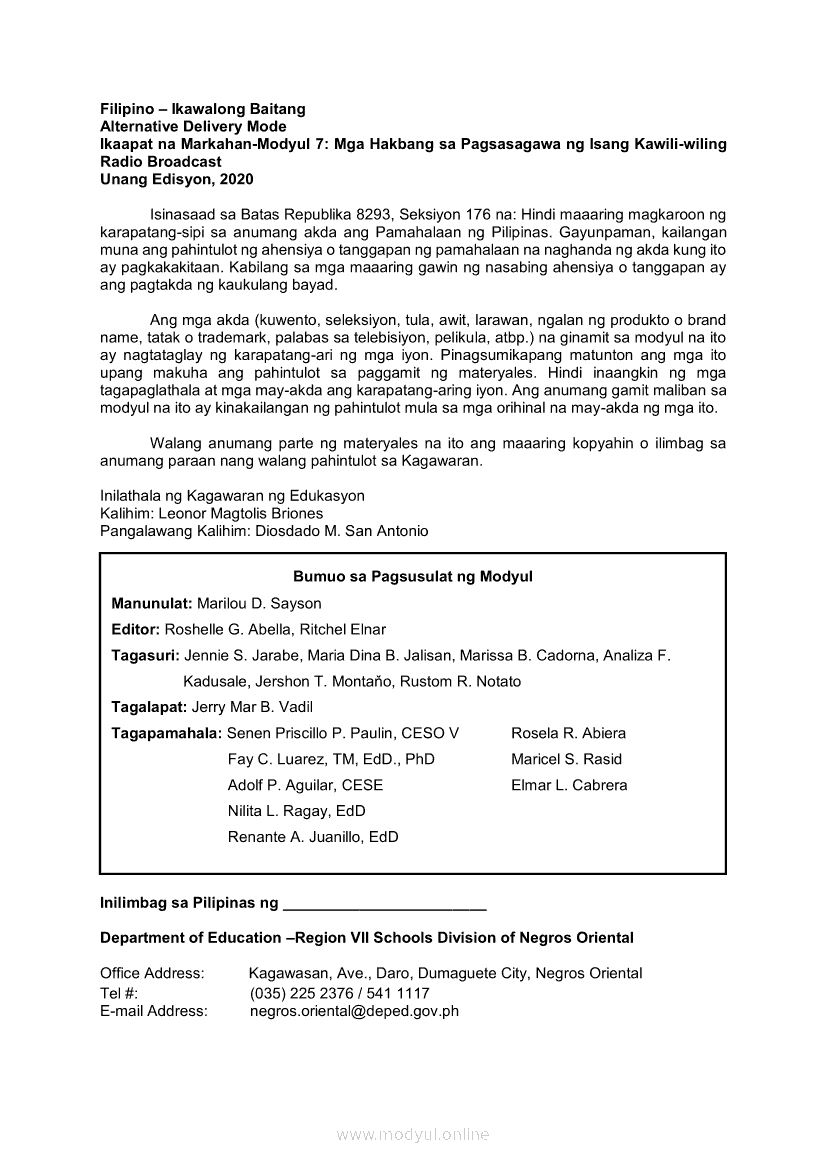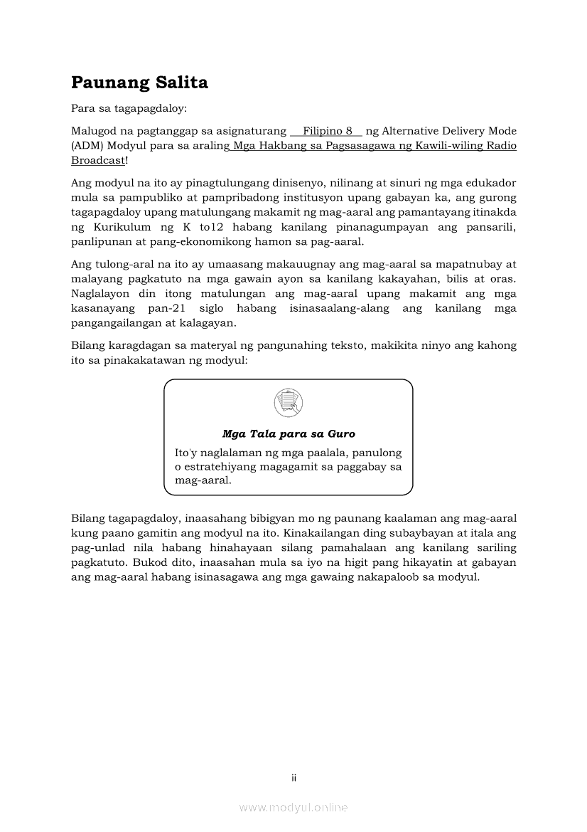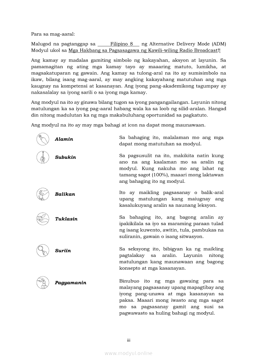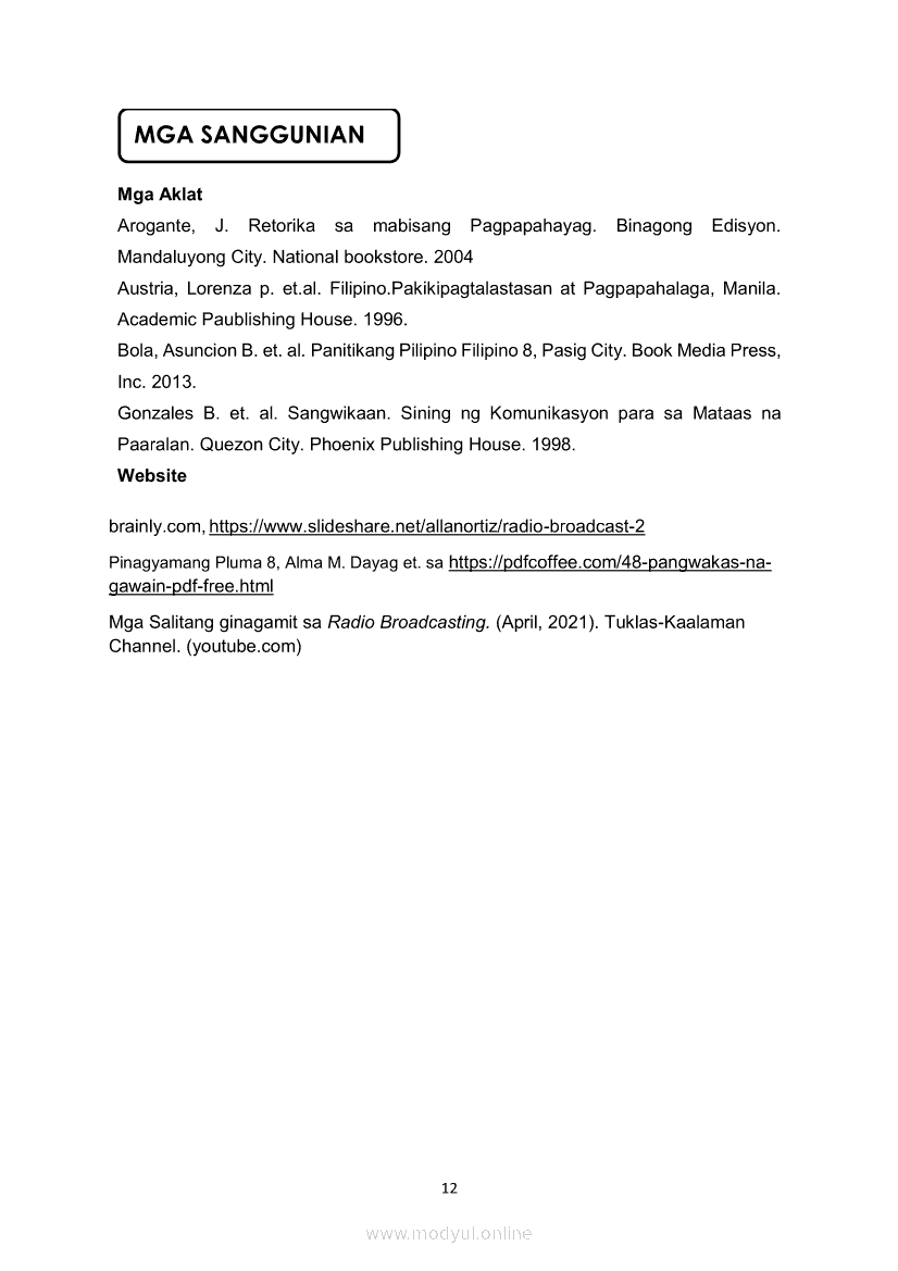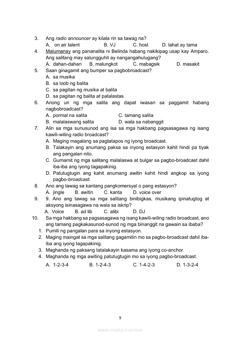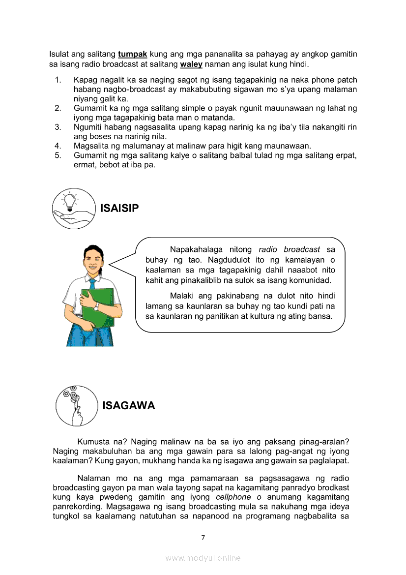 Filipino 8 Ika-apat na Markahan–Modyul 7 Mga Hakbang Sa Pagsasagawa Ng Isang Kawili-wiling Radio BroadcastMay 27, 2021 Grade 8Xiaomi Redmi Watch 5 Active 2inch LCD Display Clear Calling 5ATM Waterproof Smart Watch for only ₱3,999 ₱1,200!. Filipino 8 4th QuarterRelatedFilipino 8 Ikaapat na Markahan –Modyul 2 FLORANTE AT LAURA Paglalahad ng Damdamin, Saloobin Pangyayari at Pagsusuri ng KaisipanFilipino 8 Ikaapat na Markahan –Modyul 1 FLORANTE AT LAURA Talambuhay ni Balagtas at Kaligirang Kasaysayan ng AkdaMATHEMATICS Quarter 4 – Module 7 Probabilities of Simple EventsEdukasyon sa Pagpapakatao Ikaapat na Markahan – Modyul 13.A Ang Seksuwalidad ng Tao (Linggo: Ikatlo)MUSIC Quarter 4 – Module 4b Traditional Asian Theater Music