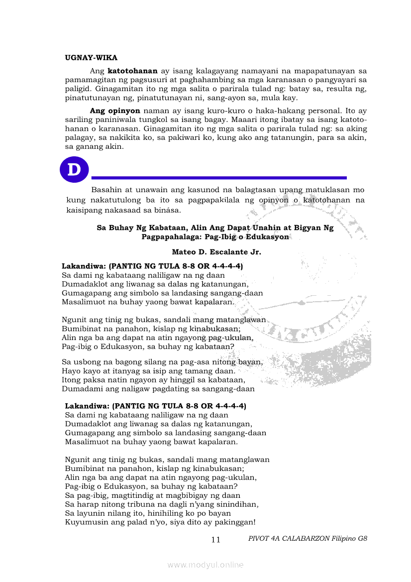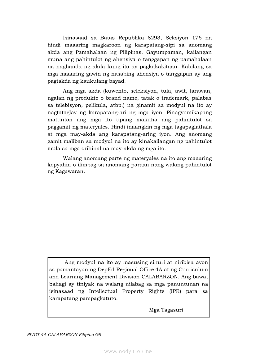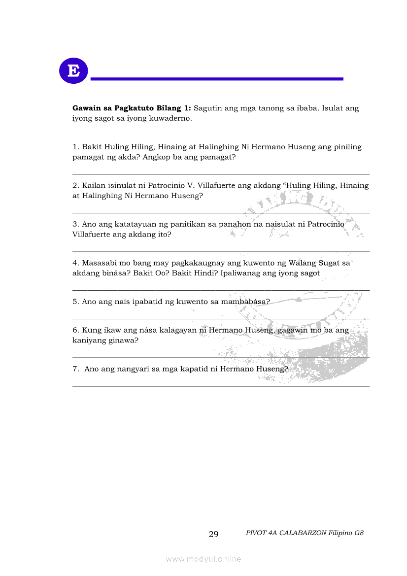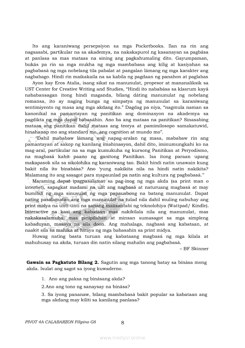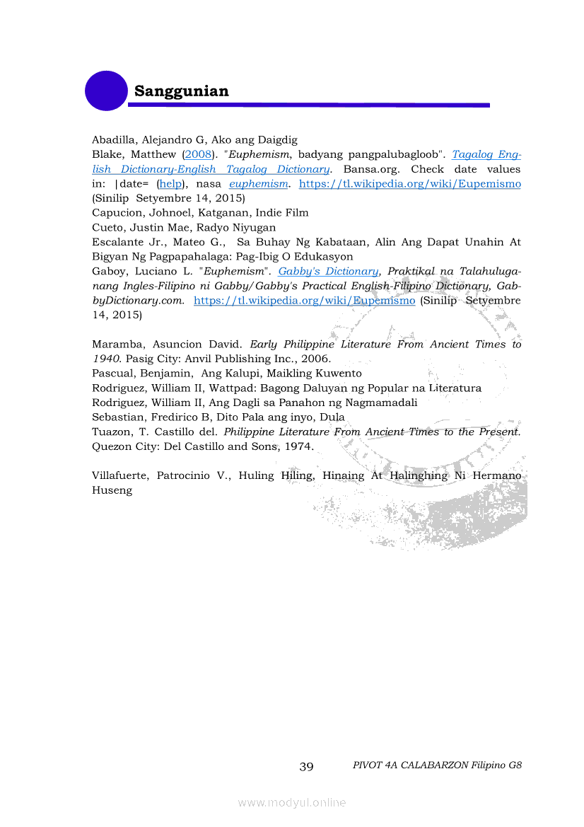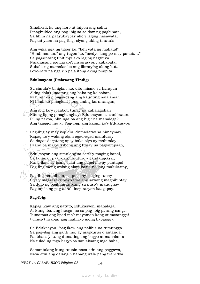 Filipino 8 Modyul para sa Ikalawang Markahan (PIVOT)Apr 22, 2021 Grade 8Xiaomi Redmi Watch 5 Active 2inch LCD Display Clear Calling 5ATM Waterproof Smart Watch for only ₱3,999 ₱1,200!. Filipino 8RelatedFilipino 8 Ika-apat na Markahan–Modyul 7 Mga Hakbang Sa Pagsasagawa Ng Isang Kawili-wiling Radio BroadcastFilipino 8 Ikaapat na Markahan –Modyul 1 FLORANTE AT LAURA Talambuhay ni Balagtas at Kaligirang Kasaysayan ng AkdaFilipino 8 Ikaapat na Markahan –Modyul 2 FLORANTE AT LAURA Paglalahad ng Damdamin, Saloobin Pangyayari at Pagsusuri ng KaisipanFilipino 8 Modyul 2: Matatalinghagang Pahayag at Eupemistiko o Masining na PahayagFilipino 8 Modyul 1: Karunungang Bayan