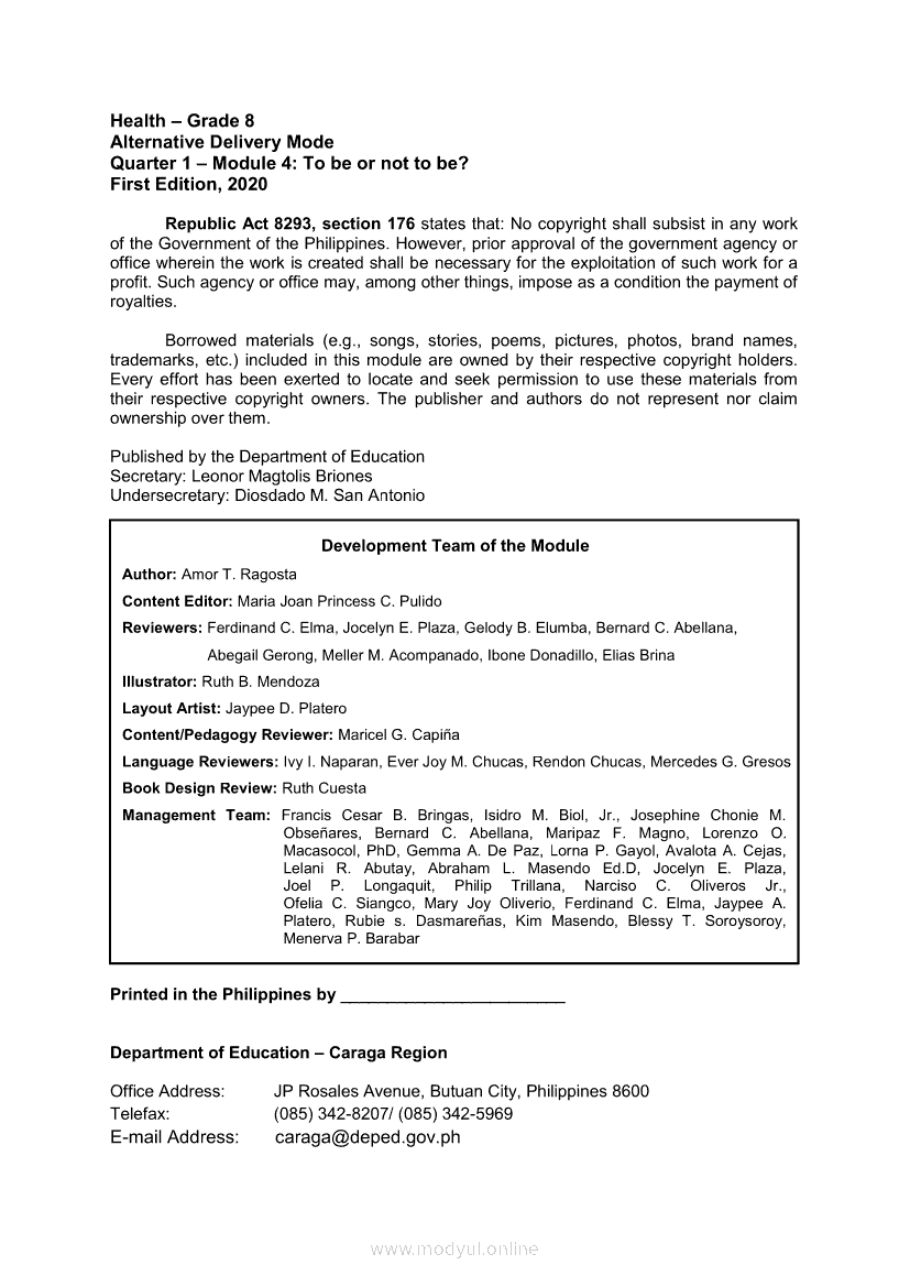 Health 8 Module 4: To be or not to be?Apr 22, 2021 Grade 8Xiaomi Redmi Watch 5 Active 2inch LCD Display Clear Calling 5ATM Waterproof Smart Watch for only ₱3,999 ₱1,200!. Health 8RelatedHEALTH Quarter 4 – Module 4b Prevention and Control of Cigarette Smoking and Drinking Alcoholic BeveragesHEALTH Quarter 4 – Module 4A Prevention of Substance Use and AbuseHealth 8 Quarter 2- Module 5 : Mother Knows BestHealth 8 Module in HealthHealth 8 Quarter 2 - Module 7: Mother’s Care