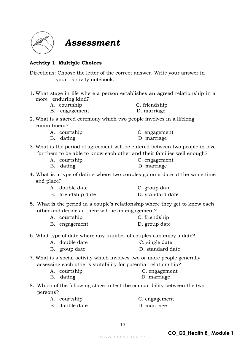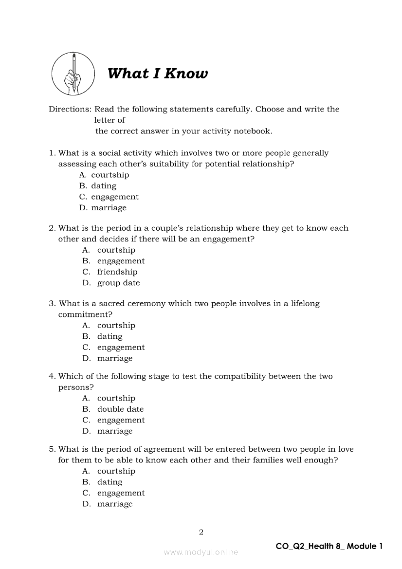 Health 8 Quarter 2- Module 1: Love Matters MostApr 22, 2021 Grade 8Xiaomi Redmi Watch 5 Active 2inch LCD Display Clear Calling 5ATM Waterproof Smart Watch for only ₱3,999 ₱1,200!. Health 8RelatedHEALTH Quarter 4 – Module 4b Prevention and Control of Cigarette Smoking and Drinking Alcoholic BeveragesHEALTH Quarter 4 – Module 4A Prevention of Substance Use and AbuseHealth 8 Quarter 2- Module 12 Grapple with GrowthHealth 8 Quarter 2- Module 6: Tender Love and CareHealth 8 Module 3: Discover Yourself