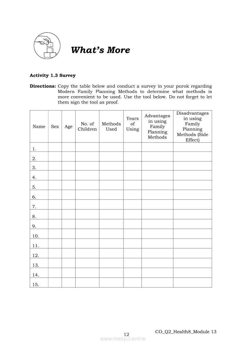 Health 8 Quarter 2 – Module 13 : Let’s PlanApr 22, 2021 Grade 8Xiaomi Redmi Watch 5 Active 2inch LCD Display Clear Calling 5ATM Waterproof Smart Watch for only ₱3,999 ₱1,200!. Health 8RelatedHEALTH Quarter 4 – Module 4b Prevention and Control of Cigarette Smoking and Drinking Alcoholic BeveragesHEALTH Quarter 4 – Module 4A Prevention of Substance Use and AbuseHealth 8 Quarter 2- Module 5 : Mother Knows BestHealth 8 Quarter 2- Module 4 : Motherhood JourneyHealth 8 Quarter 2 – Module 11 : Parenting