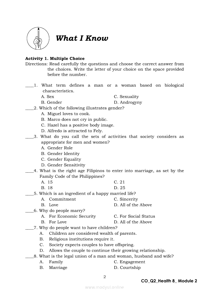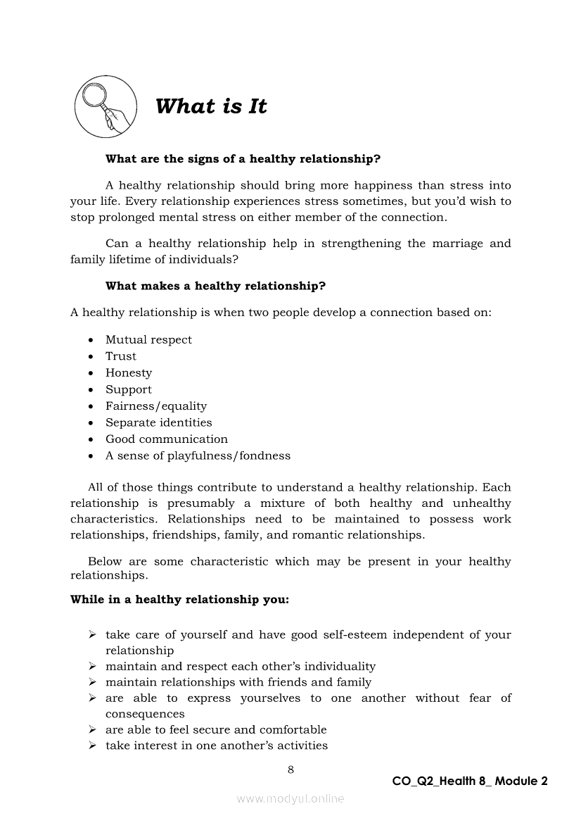 Health 8 Quarter 2 – Module 2 : A Sturdy ConnectionApr 22, 2021 Grade 8Xiaomi Redmi Watch 5 Active 2inch LCD Display Clear Calling 5ATM Waterproof Smart Watch for only ₱3,999 ₱1,200!. Health 8RelatedHEALTH Quarter 4 – Module 4b Prevention and Control of Cigarette Smoking and Drinking Alcoholic BeveragesHEALTH Quarter 4 – Module 4A Prevention of Substance Use and AbuseHealth 8 Quarter 2 - Module 8: Unang Yakap: Essential Newborn ProtocolHealth 8 Quarter 2- Module 6: Tender Love and CareHealth 8 Module 2: Who Am I?