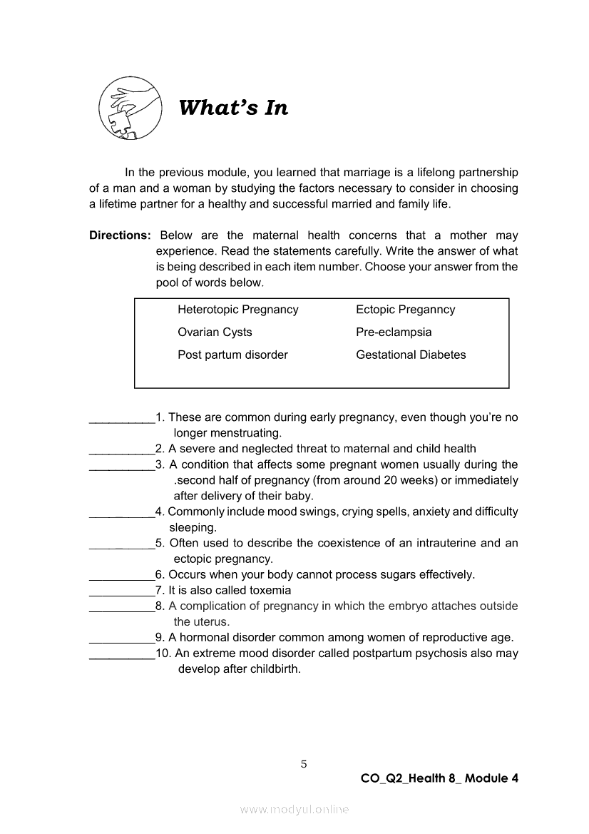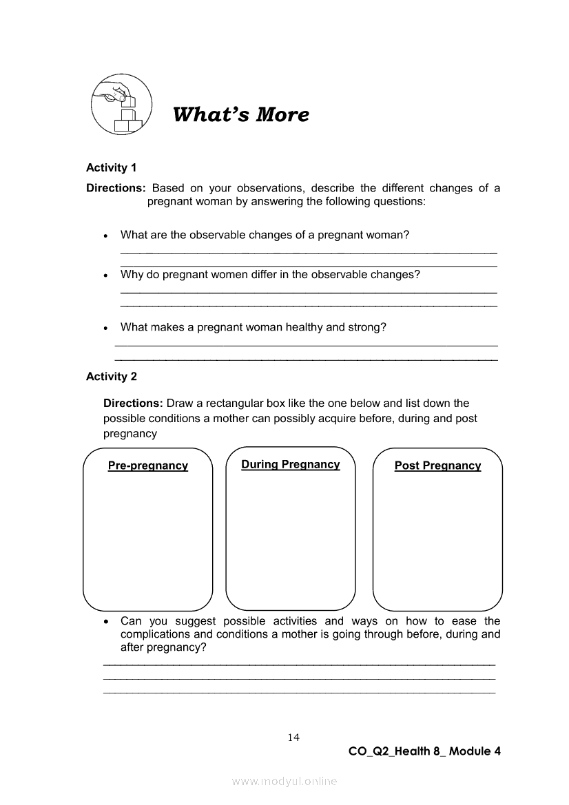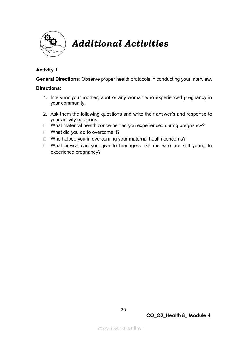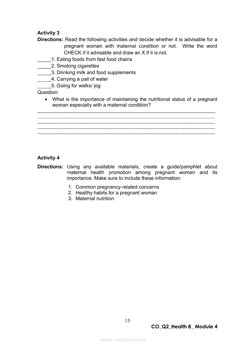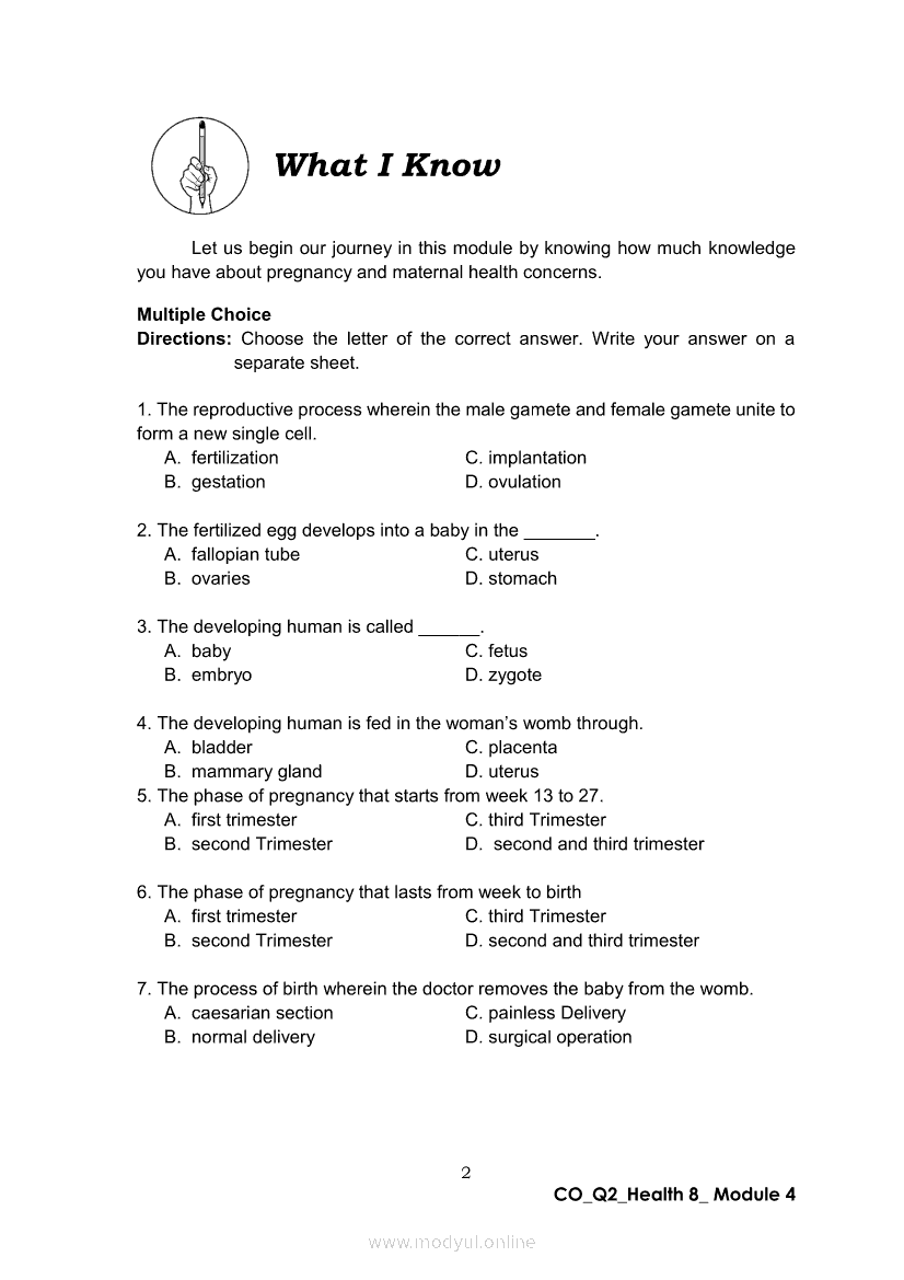 Health 8 Quarter 2- Module 4 : Motherhood JourneyApr 22, 2021 Grade 8Xiaomi Redmi Watch 5 Active 2inch LCD Display Clear Calling 5ATM Waterproof Smart Watch for only ₱3,999 ₱1,200!. Health 8RelatedHEALTH Quarter 4 – Module 4A Prevention of Substance Use and AbuseHEALTH Quarter 4 – Module 4b Prevention and Control of Cigarette Smoking and Drinking Alcoholic BeveragesHealth 8 Quarter 2- Module 6: Tender Love and CareHealth 8 Quarter 2 - Module 8: Unang Yakap: Essential Newborn ProtocolHealth 8 Quarter 2- Module 3 : Spice Up Your Married Life (Responsible Parenthood)