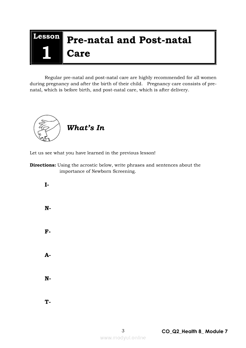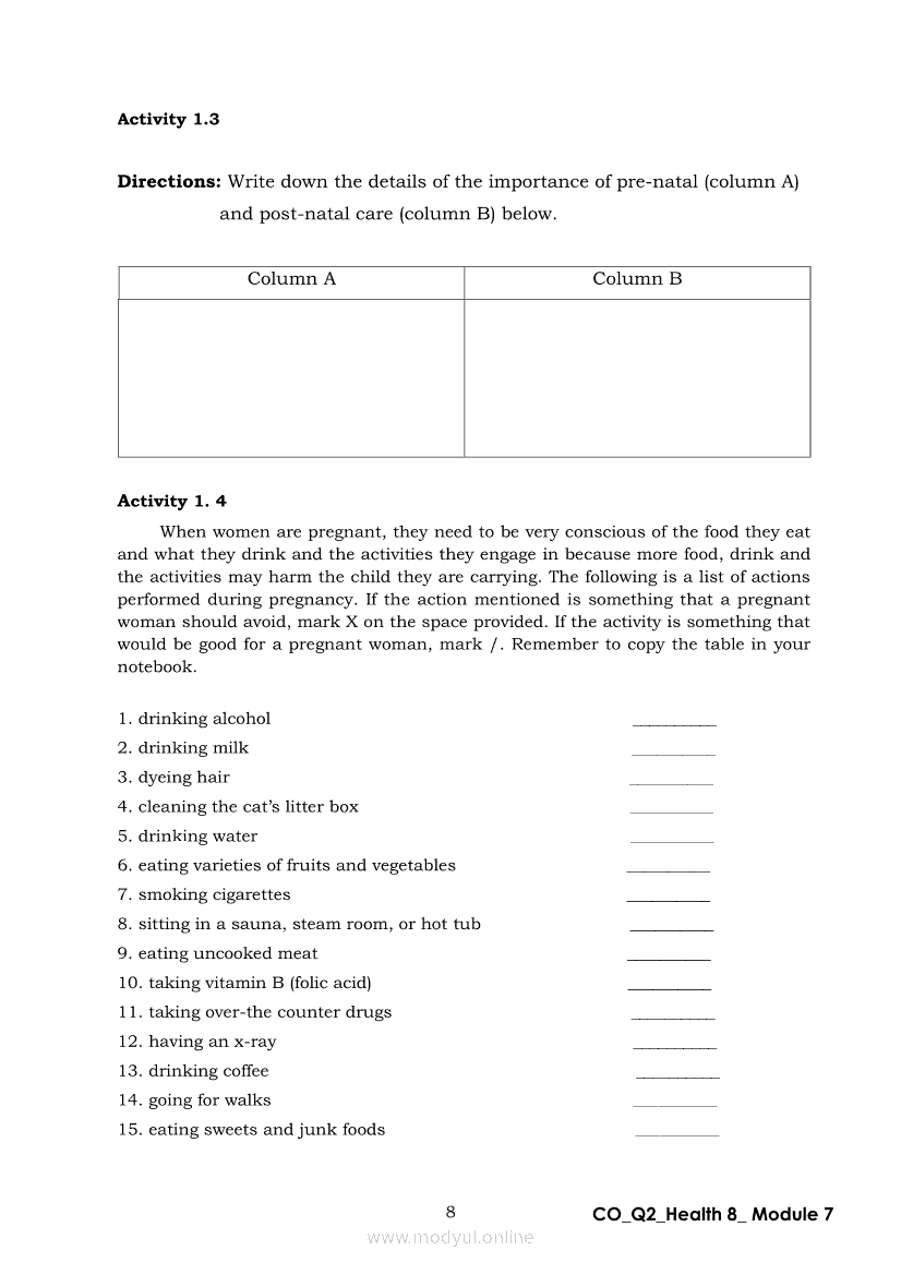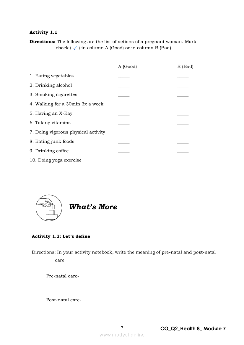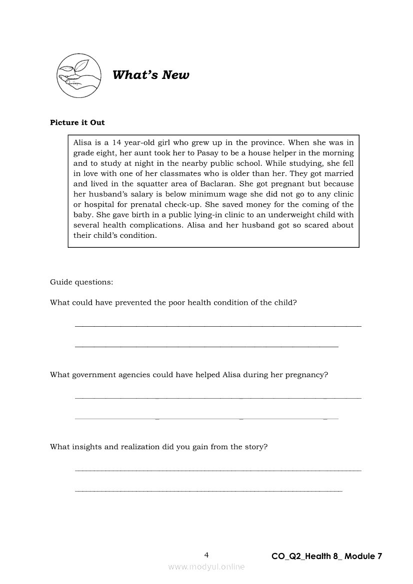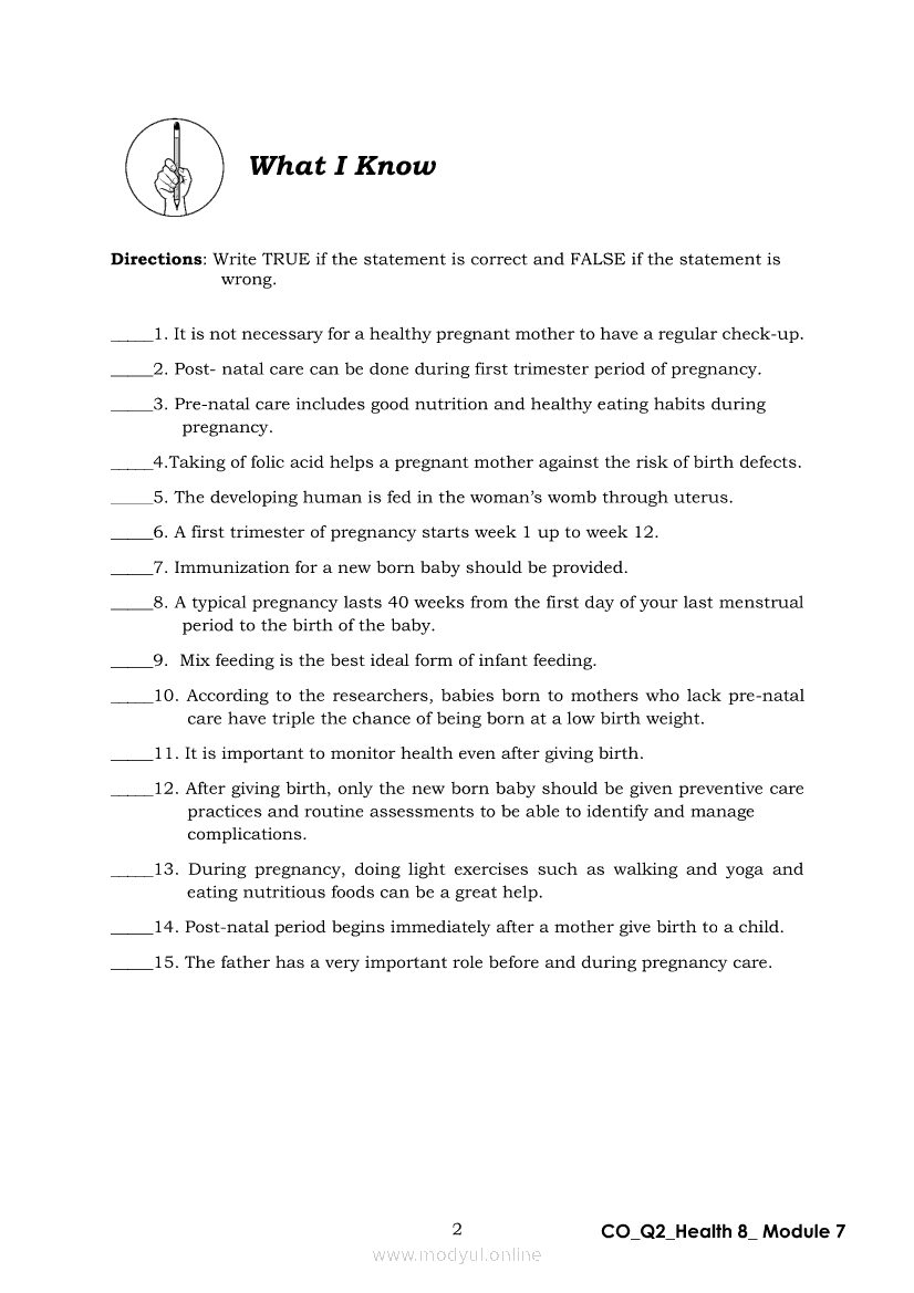 Health 8 Quarter 2 - Module 7: Mother’s CareApr 22, 2021 Grade 8Xiaomi Redmi Watch 5 Active 2inch LCD Display Clear Calling 5ATM Waterproof Smart Watch for only ₱3,999 ₱1,200!. Health 8RelatedHEALTH Quarter 4 – Module 4A Prevention of Substance Use and AbuseHEALTH Quarter 4 – Module 4b Prevention and Control of Cigarette Smoking and Drinking Alcoholic BeveragesHealth 8 Quarter 2 – Module 2 : A Sturdy ConnectionHealth 8 Module 5: Family Health Comes FirstHealth 8 Quarter 2 - Module 8: Unang Yakap: Essential Newborn Protocol