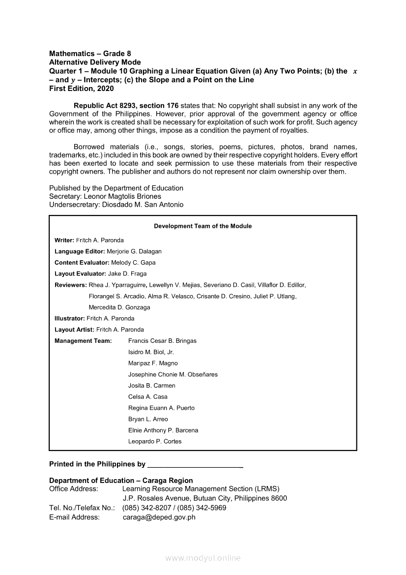 Math 8 Module 10: Graphing Linear EquationsApr 22, 2021 Grade 8Xiaomi Redmi Watch 5 Active 2inch LCD Display Clear Calling 5ATM Waterproof Smart Watch for only ₱3,999 ₱1,200!. Math 8RelatedMATHEMATICS Quarter 4 – Module 2 Theorems on Triangle InequalitiesMATHEMATICS Quarter 4 – Module 4 Properties of Parallel Lines Cut by a TransversalMATHEMATICS Quarter 4 – Module 8 Probability of an Event Experimental and TheoreticalMATHEMATICS Quarter 4 – Module 6 Basic Concepts of ProbabilityMATHEMATICS Quarter 4 - Module 3 Proving Inequalities in a Triangle