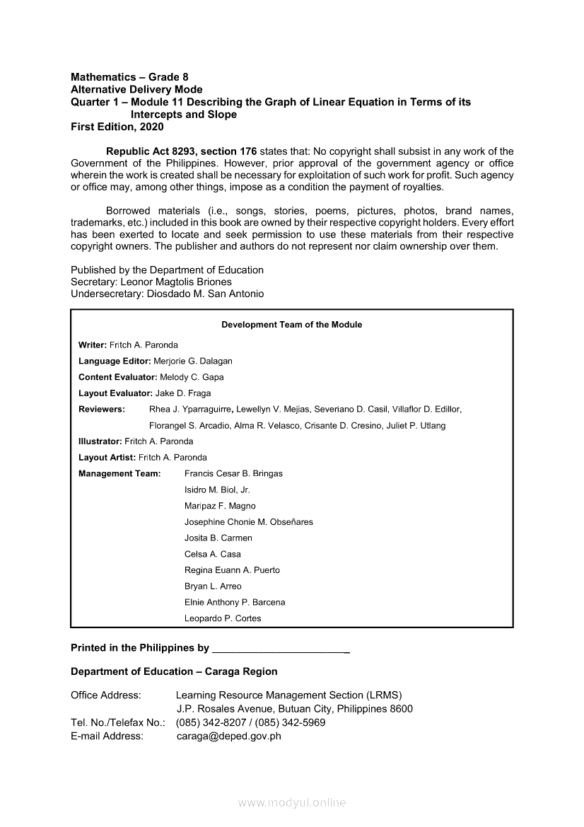 Math 8 Module 11: Describing the Graph of a Linear EquationApr 22, 2021 Grade 8Xiaomi Redmi Watch 5 Active 2inch LCD Display Clear Calling 5ATM Waterproof Smart Watch for only ₱3,999 ₱1,200!. Math 8RelatedMATHEMATICS Quarter 4 – Module 2 Theorems on Triangle InequalitiesMATHEMATICS Quarter 4 – Module 4 Properties of Parallel Lines Cut by a TransversalMATHEMATICS Quarter 4 – Module 8 Probability of an Event Experimental and TheoreticalMATHEMATICS Quarter 4 – Module 6 Basic Concepts of ProbabilityMATHEMATICS Quarter 4 - Module 3 Proving Inequalities in a Triangle