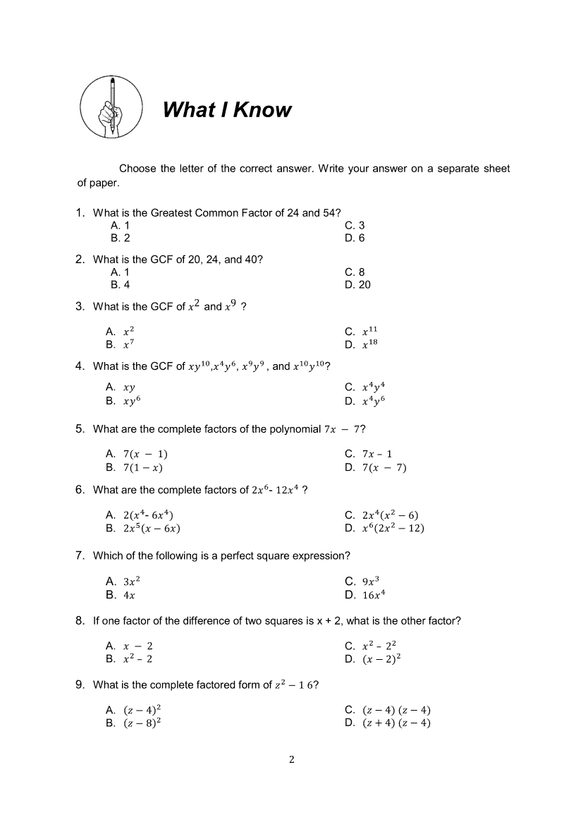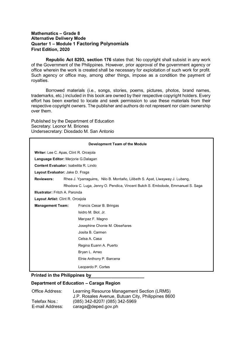 Math 8 Module 1A: Factoring PolynomialsApr 22, 2021 Grade 8Xiaomi Redmi Watch 5 Active 2inch LCD Display Clear Calling 5ATM Waterproof Smart Watch for only ₱3,999 ₱1,200!. Math 8RelatedMATHEMATICS Quarter 4 - Module 5 Parallel Lines and Perpendicular LinesMATHEMATICS Quarter 4 - Module 3 Proving Inequalities in a TriangleMATHEMATICS Quarter 4 – Module 2 Theorems on Triangle InequalitiesMATHEMATICS Quarter 4 – Module 7 Probabilities of Simple EventsMATHEMATICS Quarter 4 – Module 4 Properties of Parallel Lines Cut by a Transversal