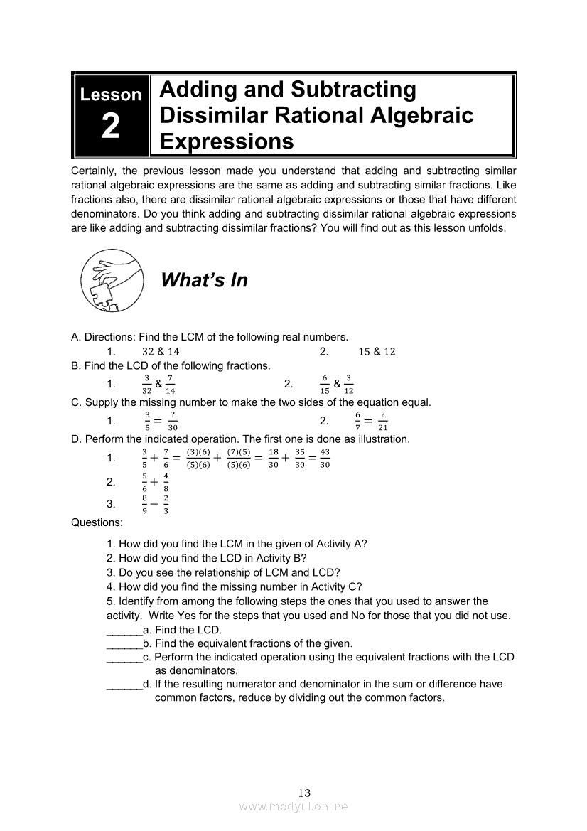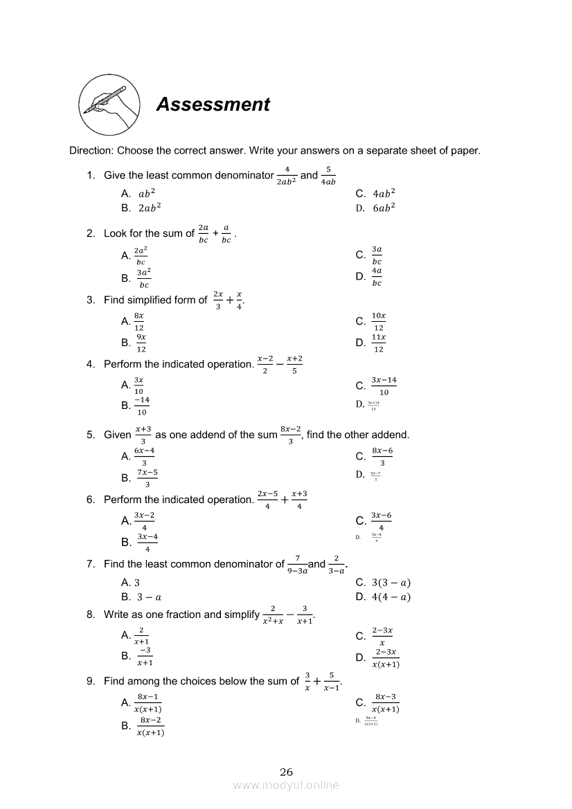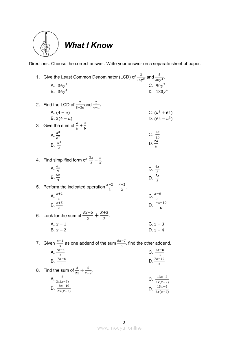 Math 8 Module 5B: Adding and Subtracting Similar and Dissimilar Rational Algebraic ExpressionsApr 22, 2021 Grade 8Xiaomi Redmi Watch 5 Active 2inch LCD Display Clear Calling 5ATM Waterproof Smart Watch for only ₱3,999 ₱1,200!. Math 8RelatedMATHEMATICS Quarter 4 – Module 7 Probabilities of Simple EventsMATHEMATICS Quarter 4 – Module 4 Properties of Parallel Lines Cut by a TransversalMATHEMATICS Quarter 4 - Module 5 Parallel Lines and Perpendicular LinesMATHEMATICS Quarter 4 – Module 8 Probability of an Event Experimental and TheoreticalMATHEMATICS Quarter 4 – Module 1 Inequalities in Triangles