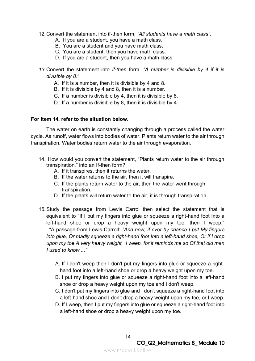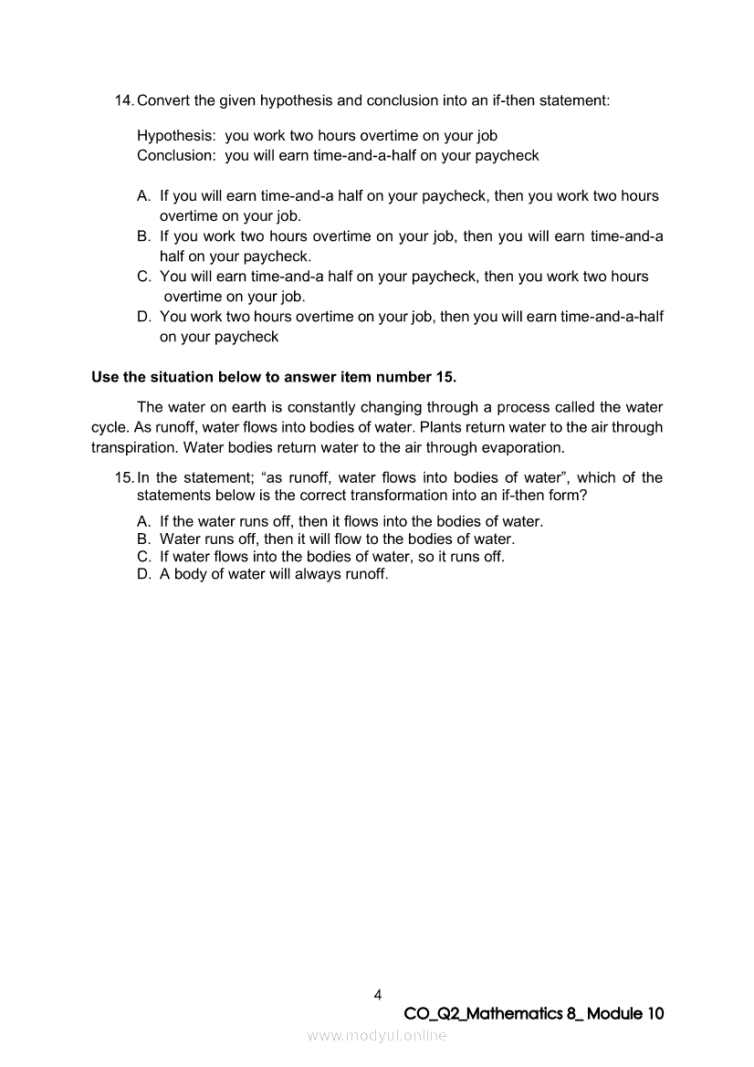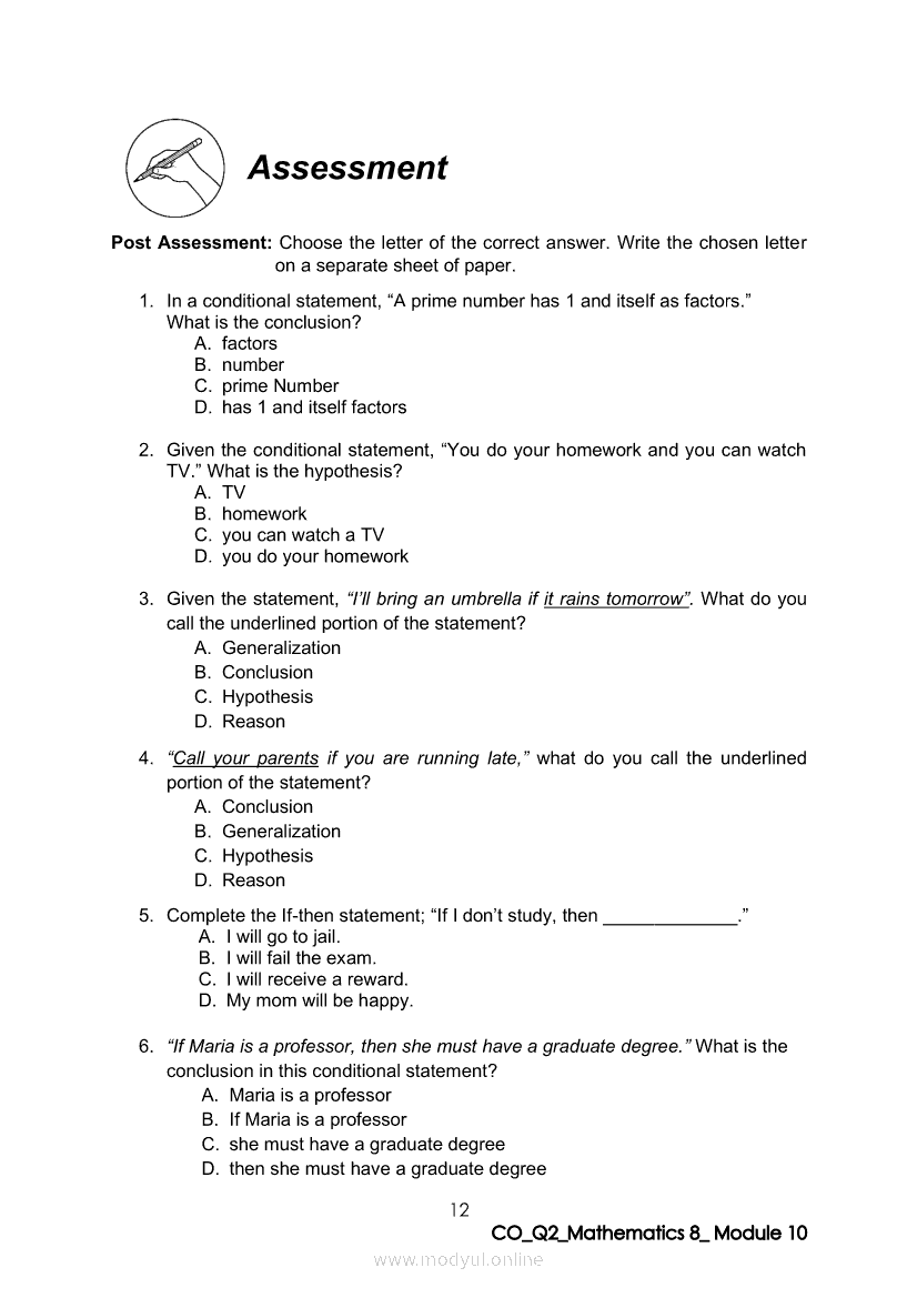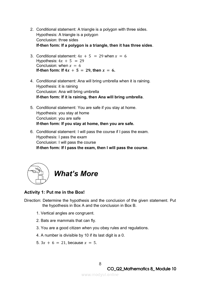 Math 8 Quarter 2 – Module 10: Transforming a Statement into an Equivalent If-then StatementApr 22, 2021 Grade 8Xiaomi Redmi Watch 5 Active 2inch LCD Display Clear Calling 5ATM Waterproof Smart Watch for only ₱3,999 ₱1,200!. Math 8RelatedMATHEMATICS Quarter 4 – Module 1 Inequalities in TrianglesMATHEMATICS Quarter 4 - Module 3 Proving Inequalities in a TriangleMATHEMATICS Quarter 4 – Module 8 Probability of an Event Experimental and TheoreticalMATHEMATICS Quarter 4 – Module 2 Theorems on Triangle InequalitiesMATHEMATICS Quarter 4 – Module 7 Probabilities of Simple Events