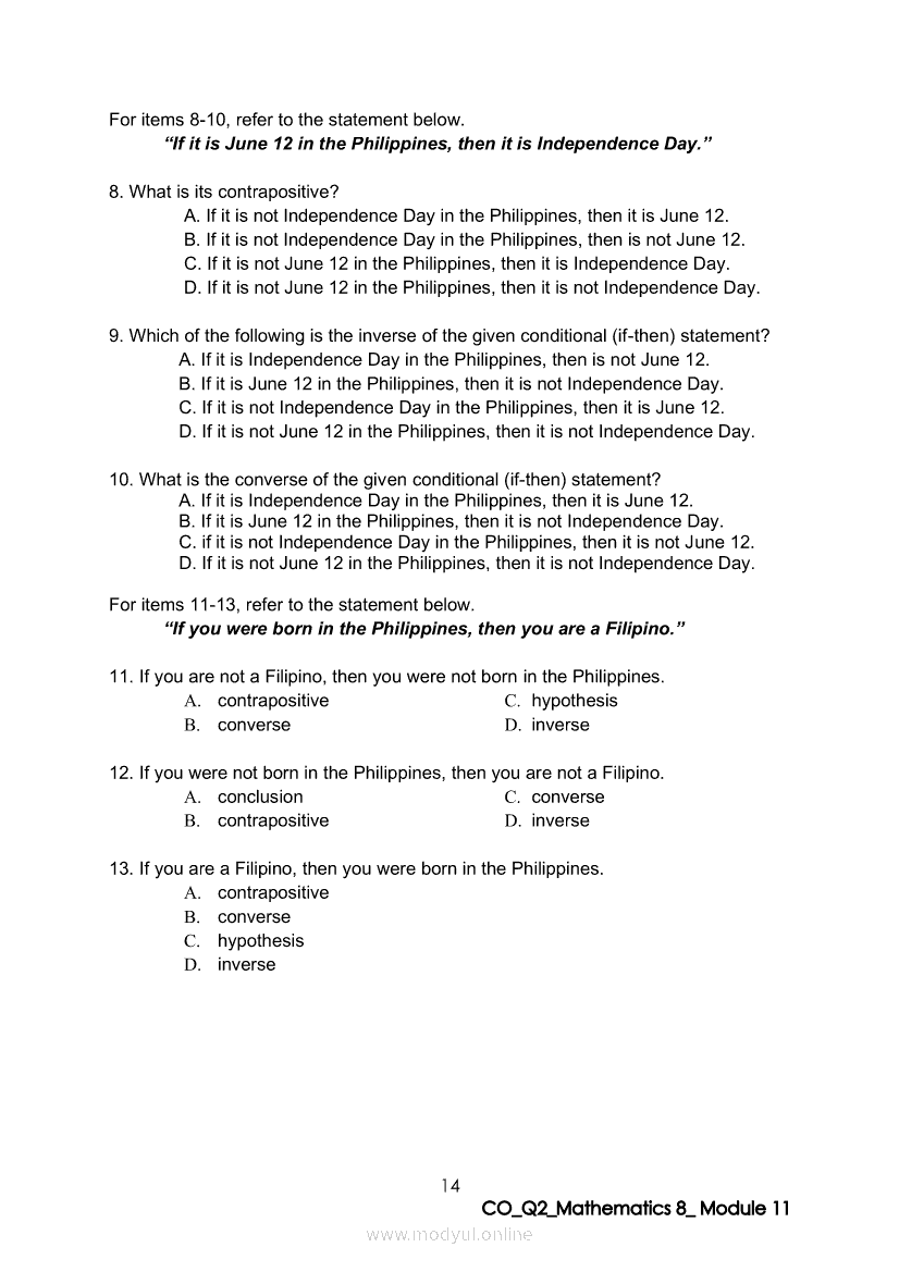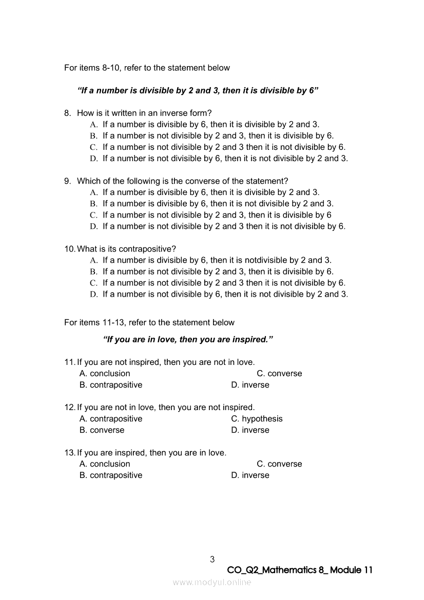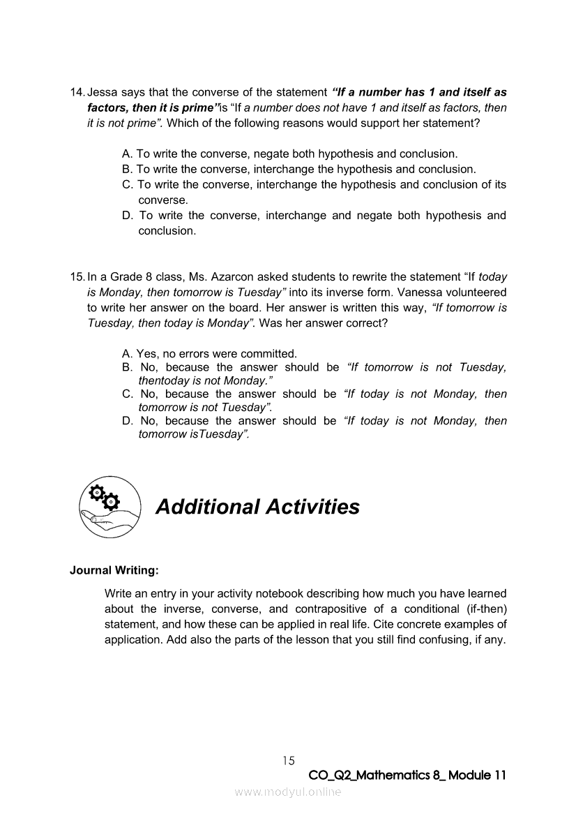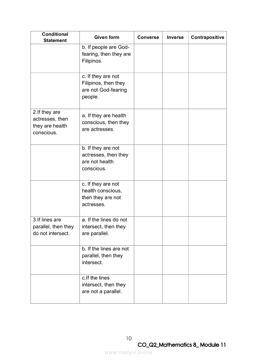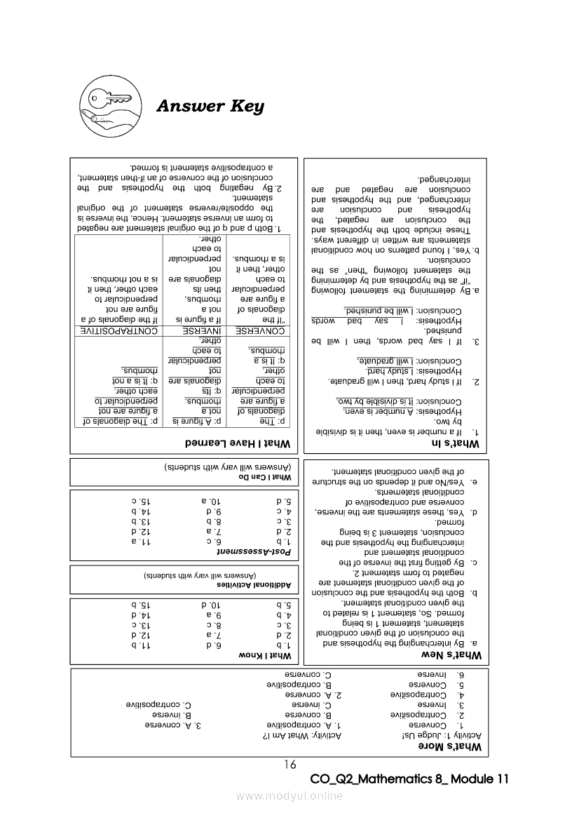 Math 8 Quarter 2 – Module 11: Determining the Inverse, Converse and Contrapositive of an If-then StatementApr 22, 2021 Grade 8Xiaomi Redmi Watch 5 Active 2inch LCD Display Clear Calling 5ATM Waterproof Smart Watch for only ₱3,999 ₱1,200!. Math 8RelatedMATHEMATICS Quarter 4 – Module 4 Properties of Parallel Lines Cut by a TransversalMATHEMATICS Quarter 4 – Module 2 Theorems on Triangle InequalitiesMATHEMATICS Quarter 4 - Module 5 Parallel Lines and Perpendicular LinesMATHEMATICS Quarter 4 - Module 3 Proving Inequalities in a TriangleMATHEMATICS Quarter 4 – Module 1 Inequalities in Triangles