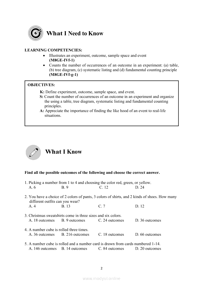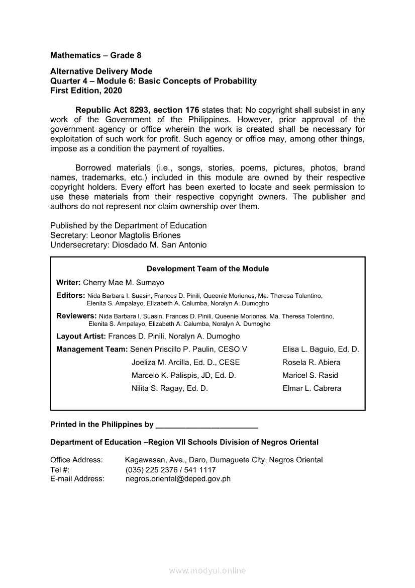 MATHEMATICS Quarter 4 – Module 6 Basic Concepts of ProbabilityMay 27, 2021 Grade 8Xiaomi Redmi Watch 5 Active 2inch LCD Display Clear Calling 5ATM Waterproof Smart Watch for only ₱3,999 ₱1,200!. Math 8 4th QuarterRelatedMATHEMATICS Quarter 4 – Module 1 Inequalities in TrianglesMATHEMATICS Quarter 4 - Module 5 Parallel Lines and Perpendicular LinesMATHEMATICS Quarter 4 – Module 7 Probabilities of Simple EventsMATHEMATICS Quarter 4 – Module 4 Properties of Parallel Lines Cut by a TransversalMATHEMATICS Quarter 4 – Module 8 Probability of an Event Experimental and Theoretical
