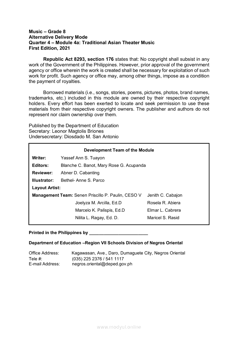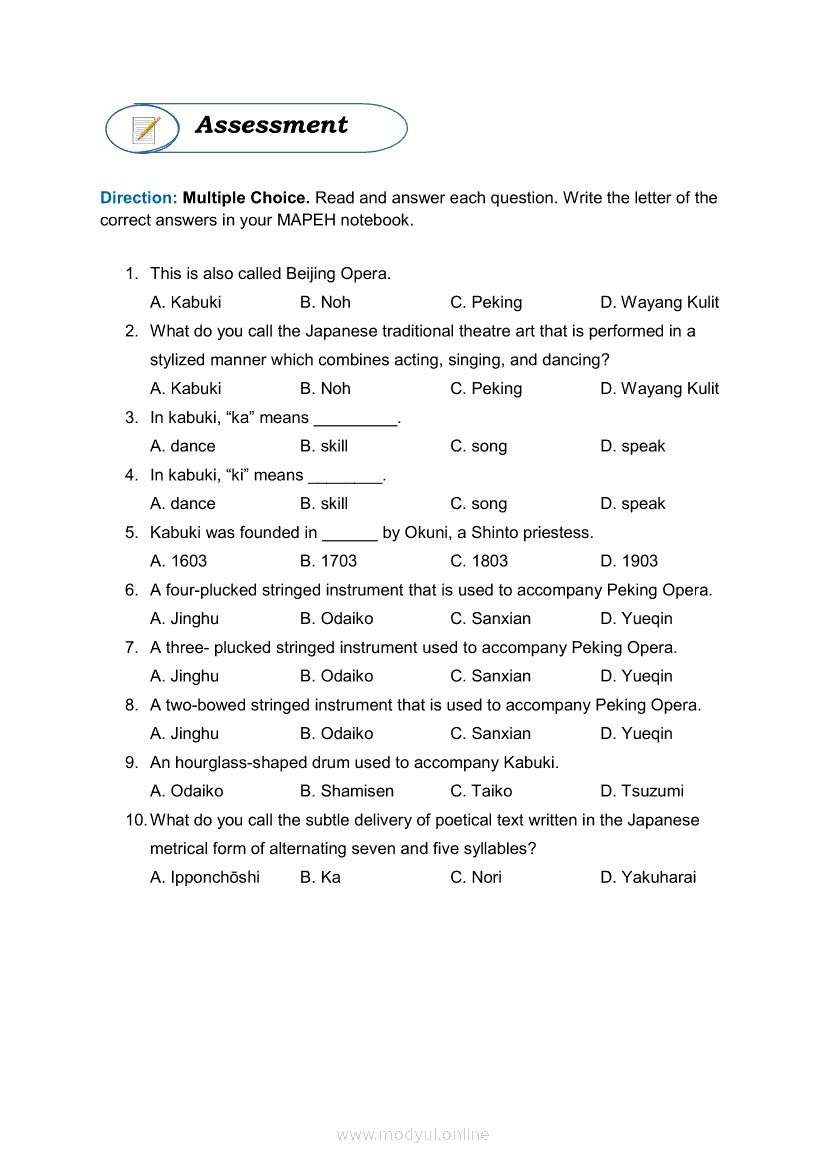 MUSIC Quarter 4 – Module 4a Traditional Asian Theater MusicMay 27, 2021 Grade 8Xiaomi Redmi Watch 5 Active 2inch LCD Display Clear Calling 5ATM Waterproof Smart Watch for only ₱3,999 ₱1,200!. Music 8 4th QuarterRelatedMUSIC Quarter 4 – Module 4b Traditional Asian Theater MusicAraling Panlipunan Ikaapat na Markahan – Modyul 2: Ang Unang Digmaang Pandaigdig (Mga Naging Bunga)Edukasyon sa Pagpapakatao Ikaapat na Markahan – Modyul 14.B Karahasan sa Paaralan ( Linggo: Ika-anim )BIODIVERSITY AND TRANSFER OF ENERGY IN AN ECOSYSTEM for Science Grade 8 Quarter 4 / Week 5Physical Education Quarter 4 – Module 4a: Folk Dances
