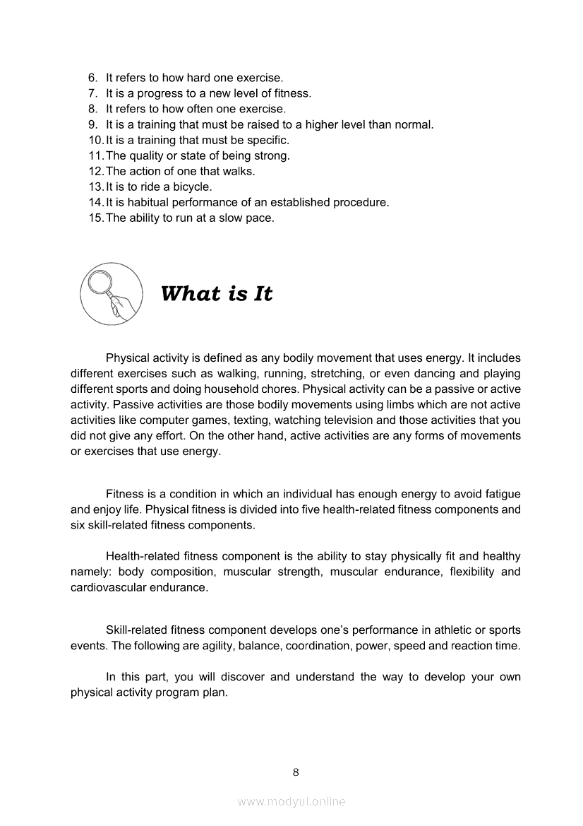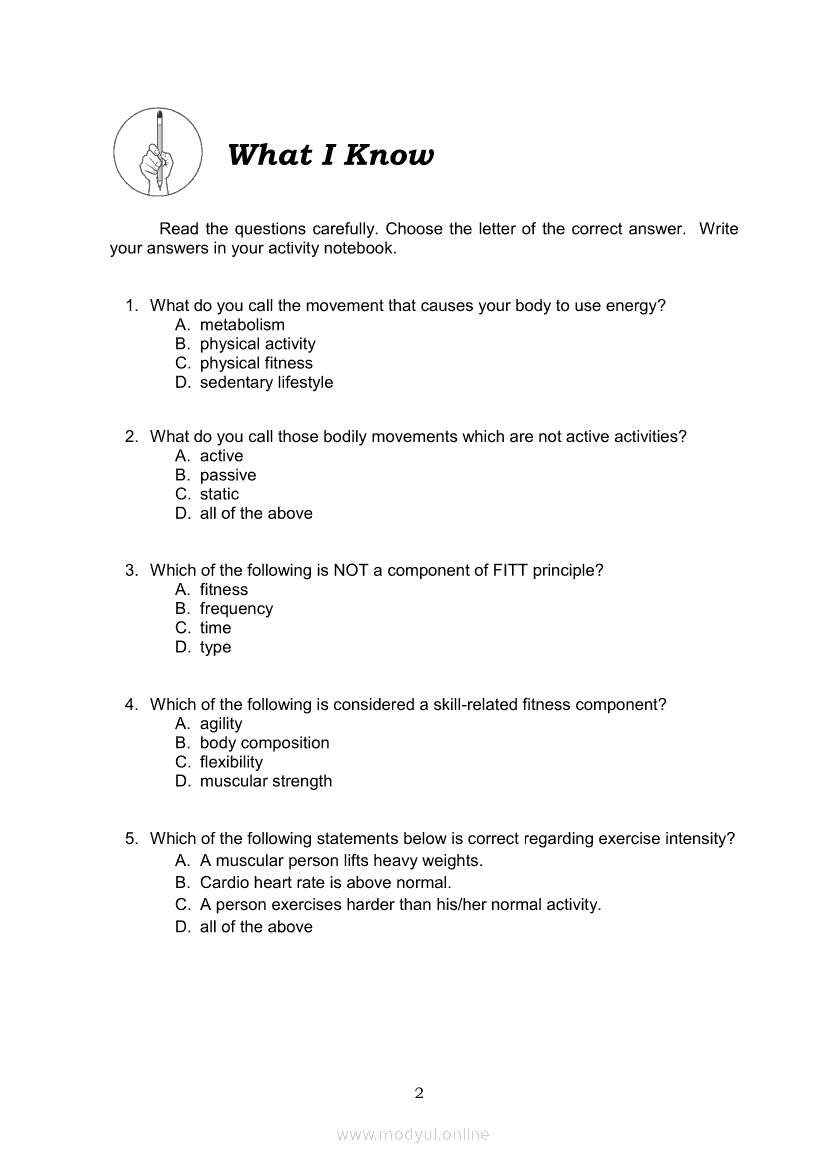 PE 8 Module 3: Plan, Prepare and Act it OutApr 22, 2021 Grade 8Xiaomi Redmi Watch 5 Active 2inch LCD Display Clear Calling 5ATM Waterproof Smart Watch for only ₱3,999 ₱1,200!. PE 8RelatedPHYSICAL EDUCATION Quarter 4 – Module 4b: Regional and National Dances with Asian InfluencePhysical Education Quarter 4 – Module 4a: Folk DancesPE 8 Second Quarter Module (PIVOT)PE 8 Module 2: Gear Up for FitnessPE 8 Module 1: Go for Fitness Goal