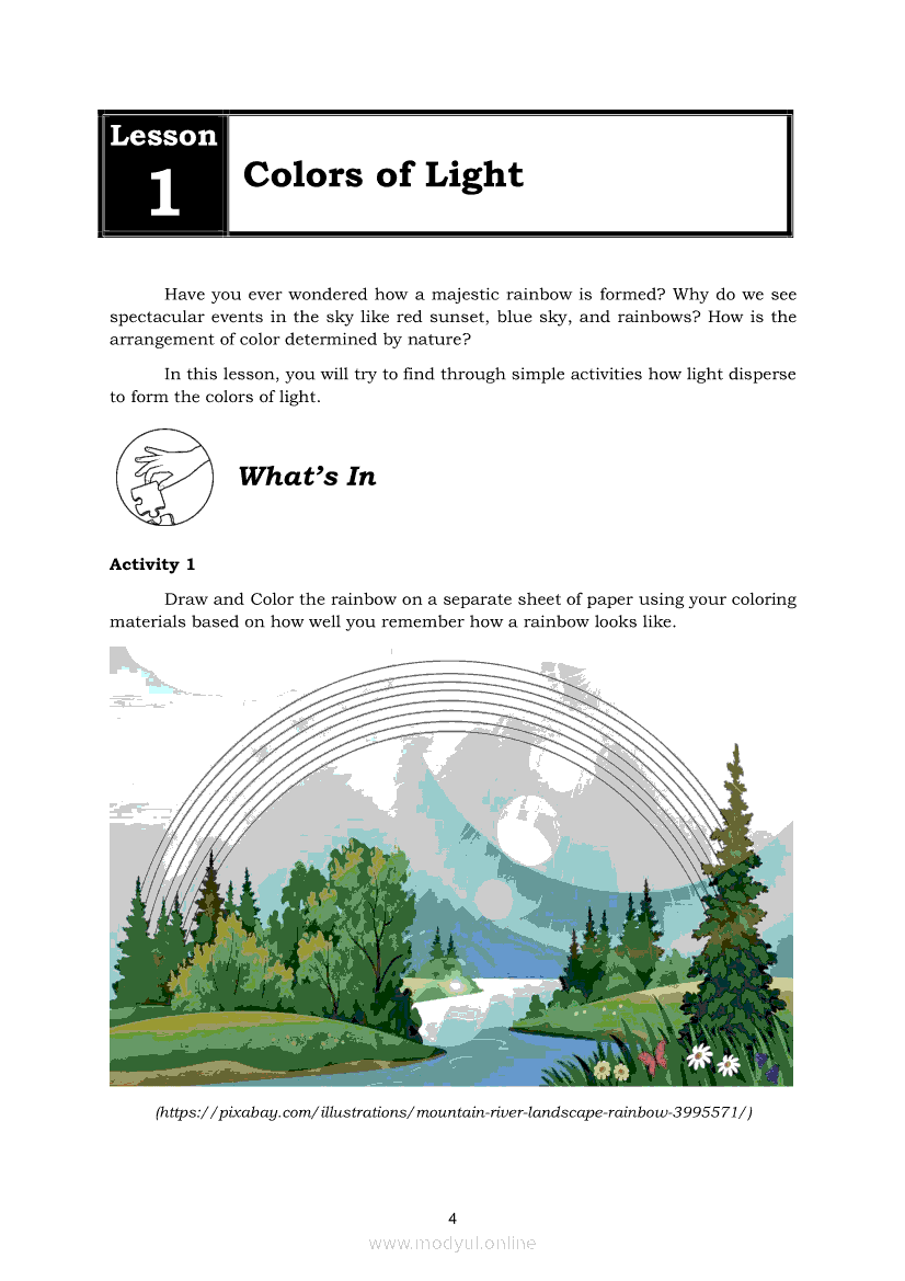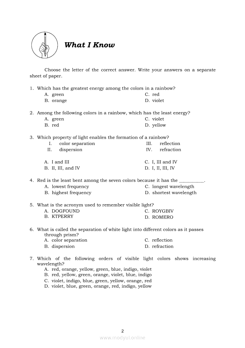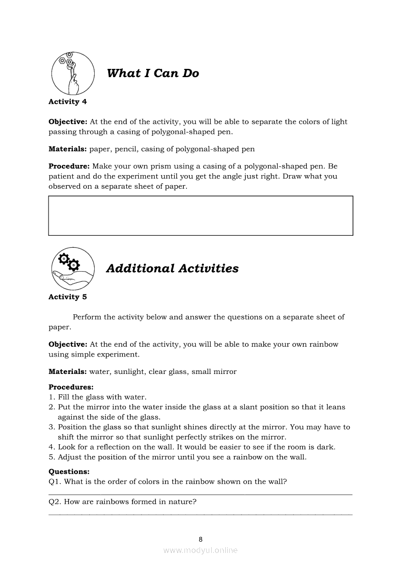 Science 8 Module 5 Colors of LightApr 22, 2021 Grade 8Xiaomi Redmi Watch 5 Active 2inch LCD Display Clear Calling 5ATM Waterproof Smart Watch for only ₱3,999 ₱1,200!. Science 8RelatedINTRODUCTION TO TAXONOMY For SCIENCE Grade 8 Quarter 4 / Week 4CELL DIVISION MITOSIS AND MEIOSIS for Science Grade 8 Quarter 4 / Week 2PREDICT PHENOTYPIC EXPRESSIONS OF TRAITS for Science Grade 8 Quarter 4 / Week 3IMPACT OF HUMAN ACTIVITIES IN AN ECOSYSTEM For SCIENCE Grade 8 Quarter 4 / Week 7BIODIVERSITY AND TRANSFER OF ENERGY IN AN ECOSYSTEM for Science Grade 8 Quarter 4 / Week 5